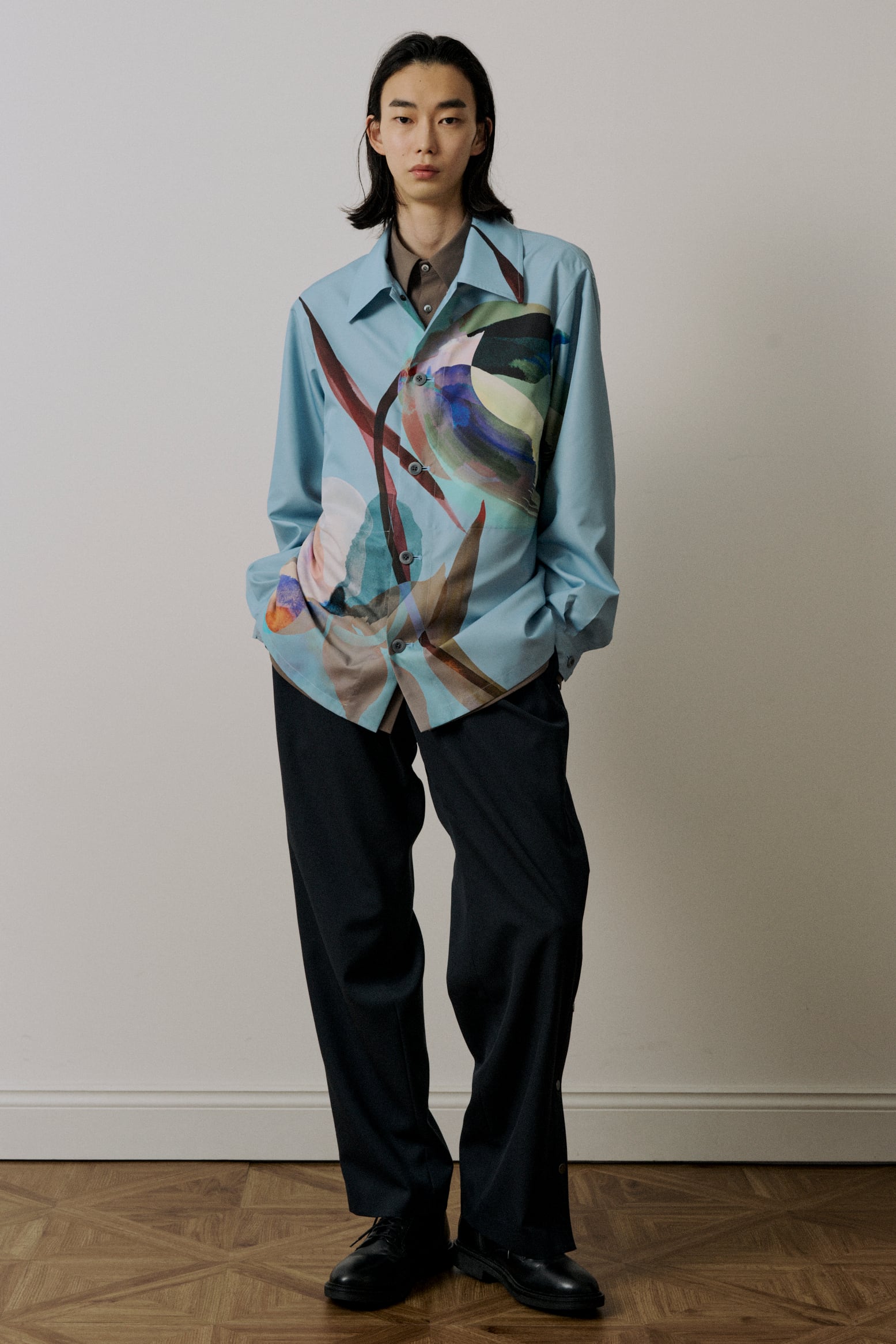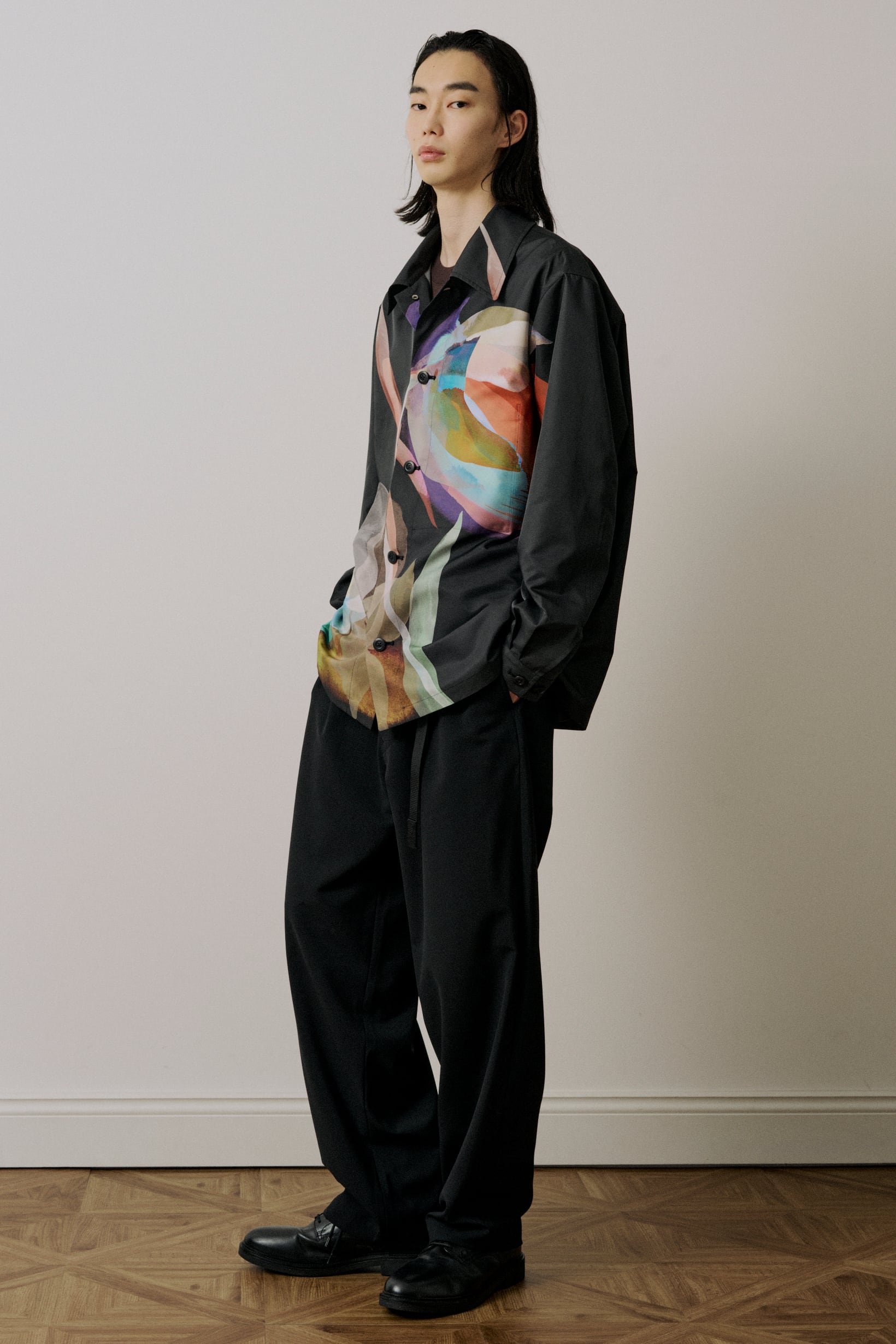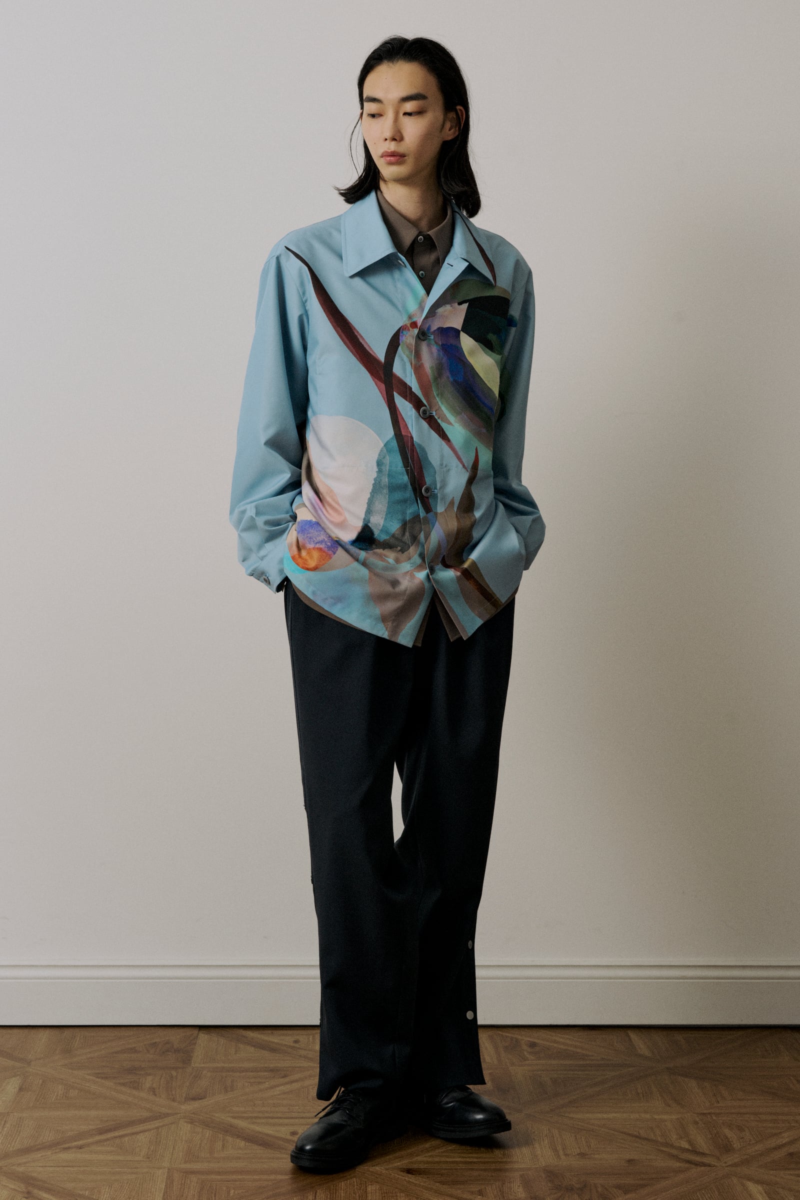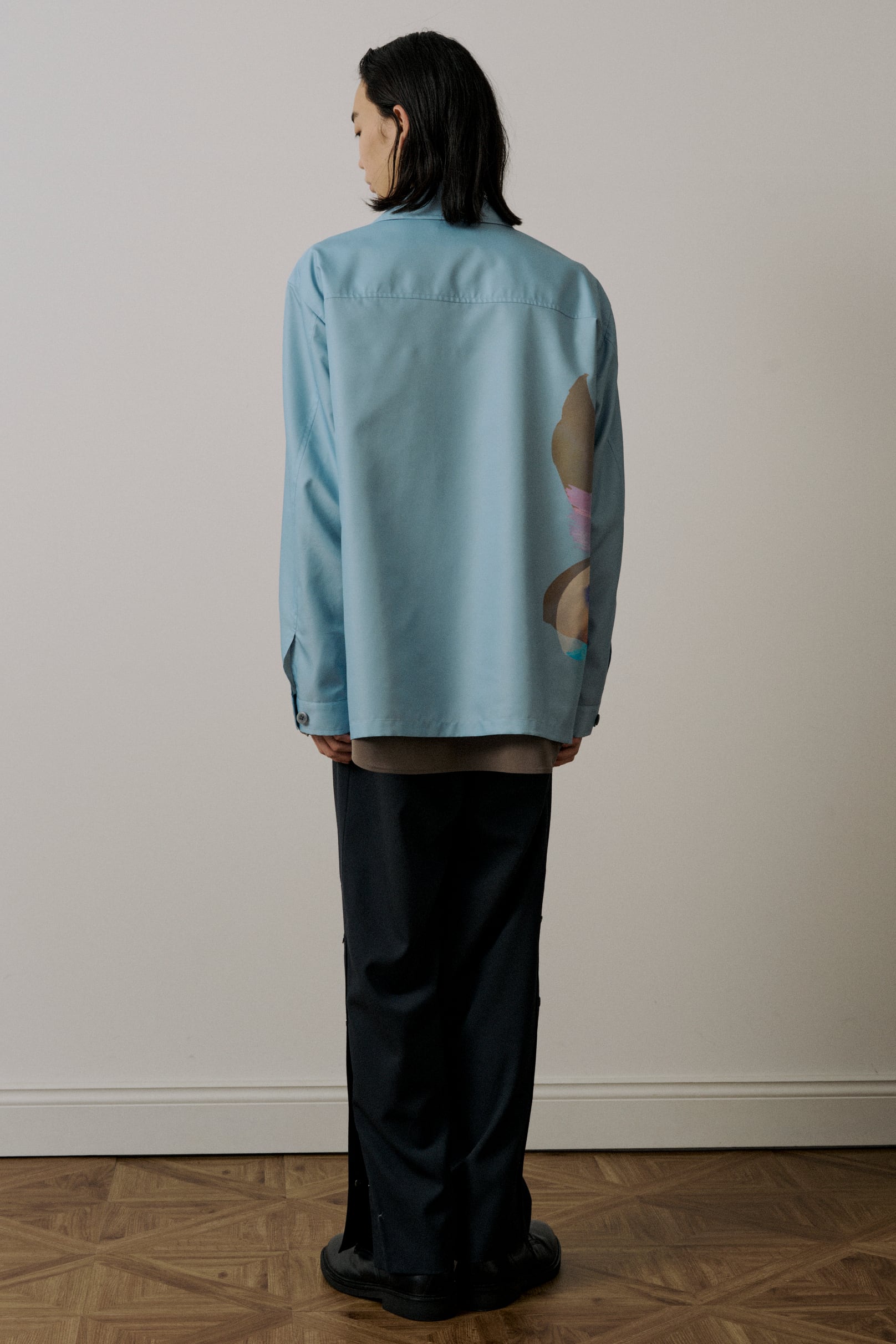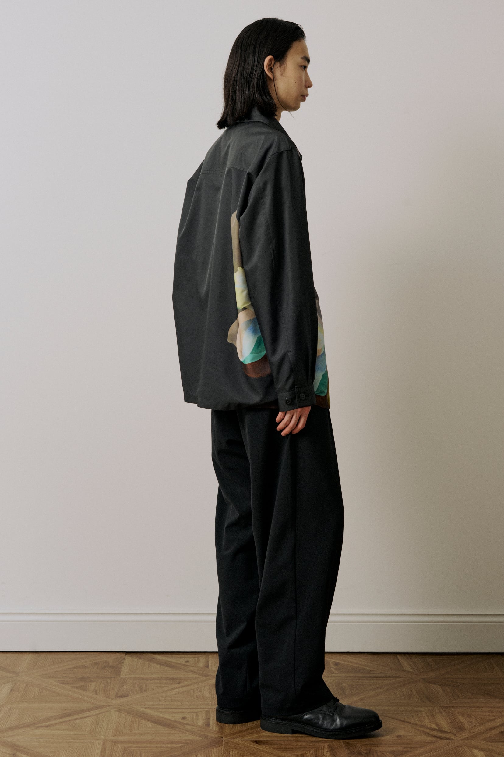 シャツ型をデザインベースに、ブルゾンの要素を取り入れたモダンなスタイルです。アクセントとなる内ポケットを備えており、実用性を高めつつ、シンプルさを損なわないデザインに仕上げています。