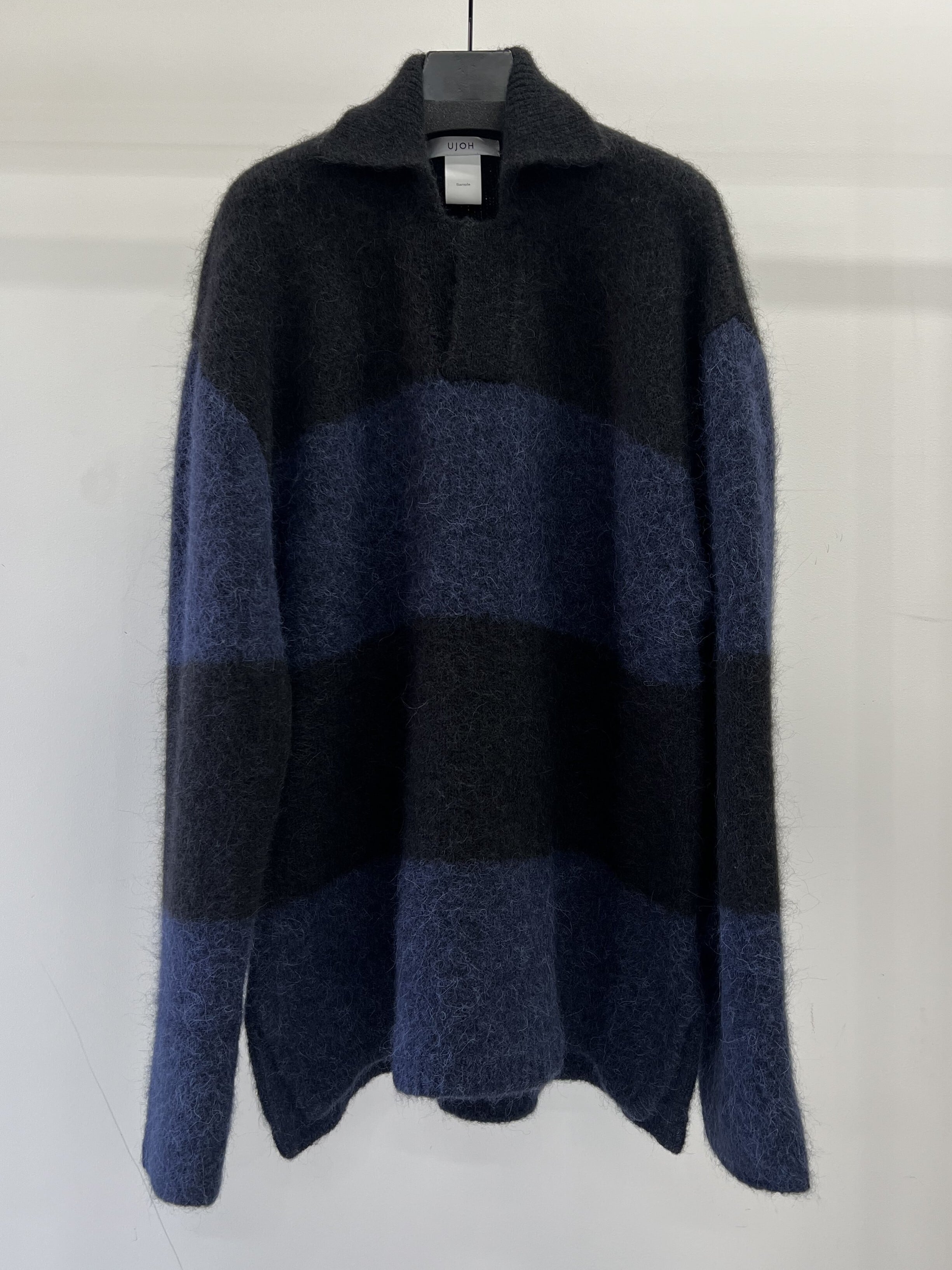 ラガーシャツのような太めのボーダーがポイントのプルオーバーニットです。