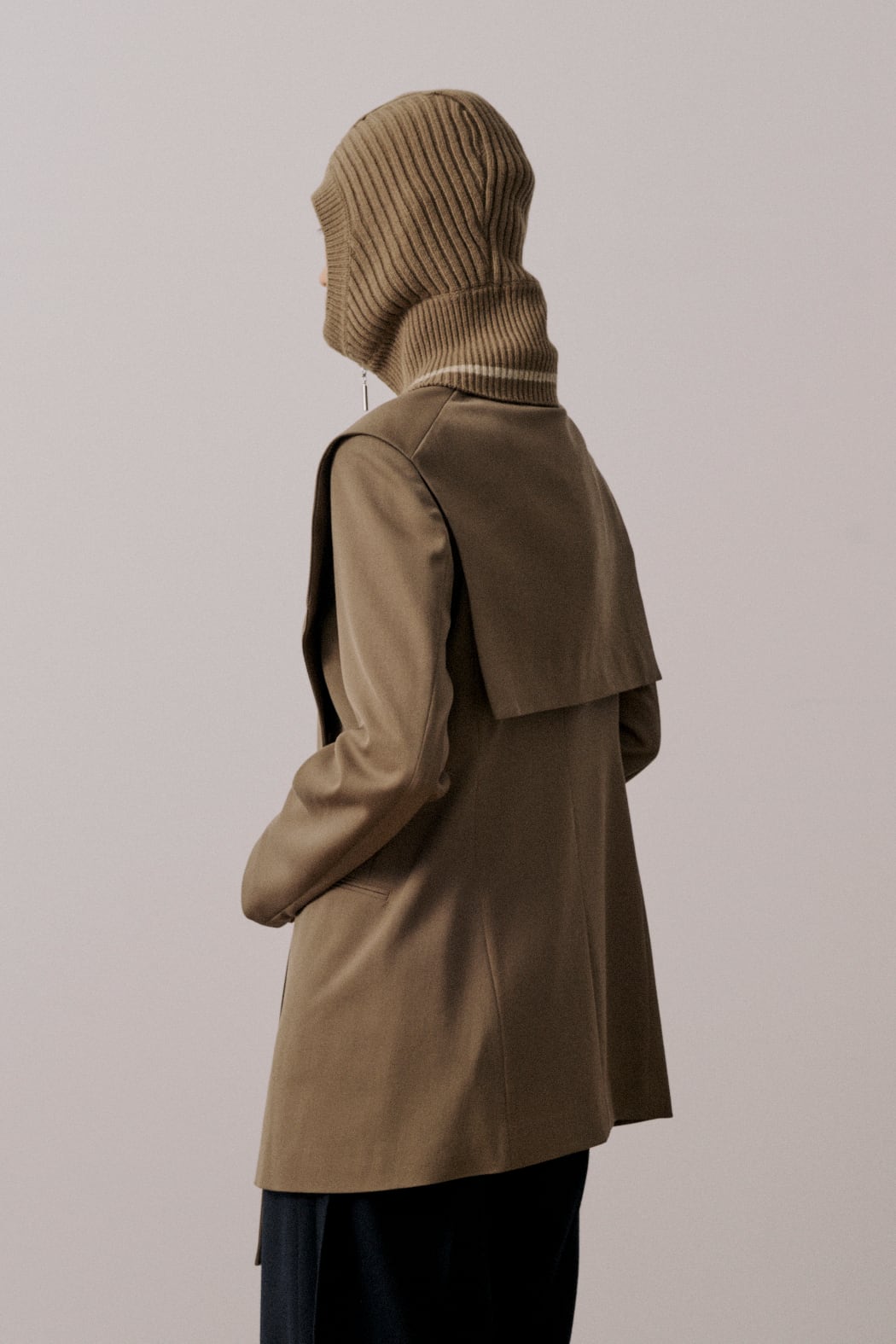 コートやジャケットなどと合わせて新しいレイヤードスタイルを楽しめるアイテムです。首元に入れたラインがポイントです。