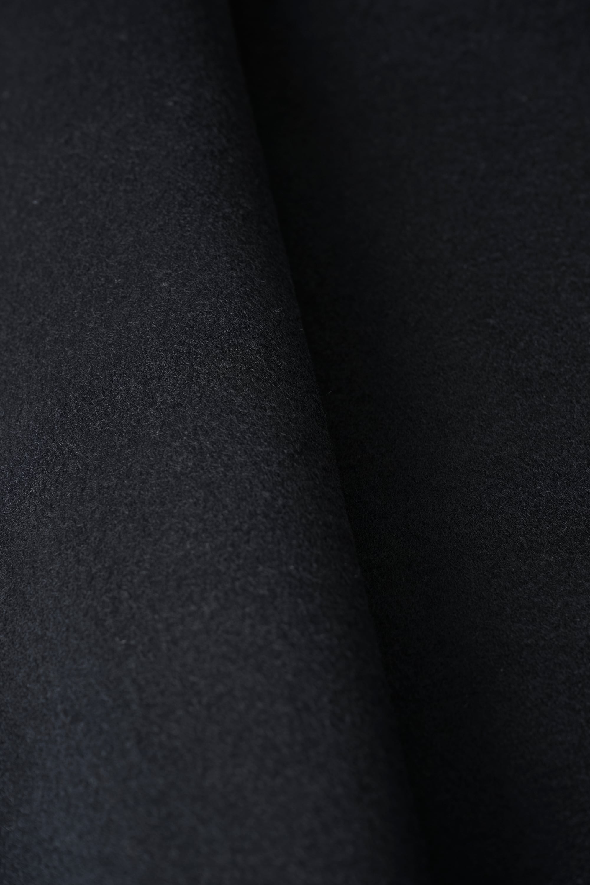 二重で織り上げた、両面ビーバー仕上げの素材です。光沢があり、しなやかで高級感のある表情です。保温性にも優れ、ふんわりとしたやわらかさが特徴です。