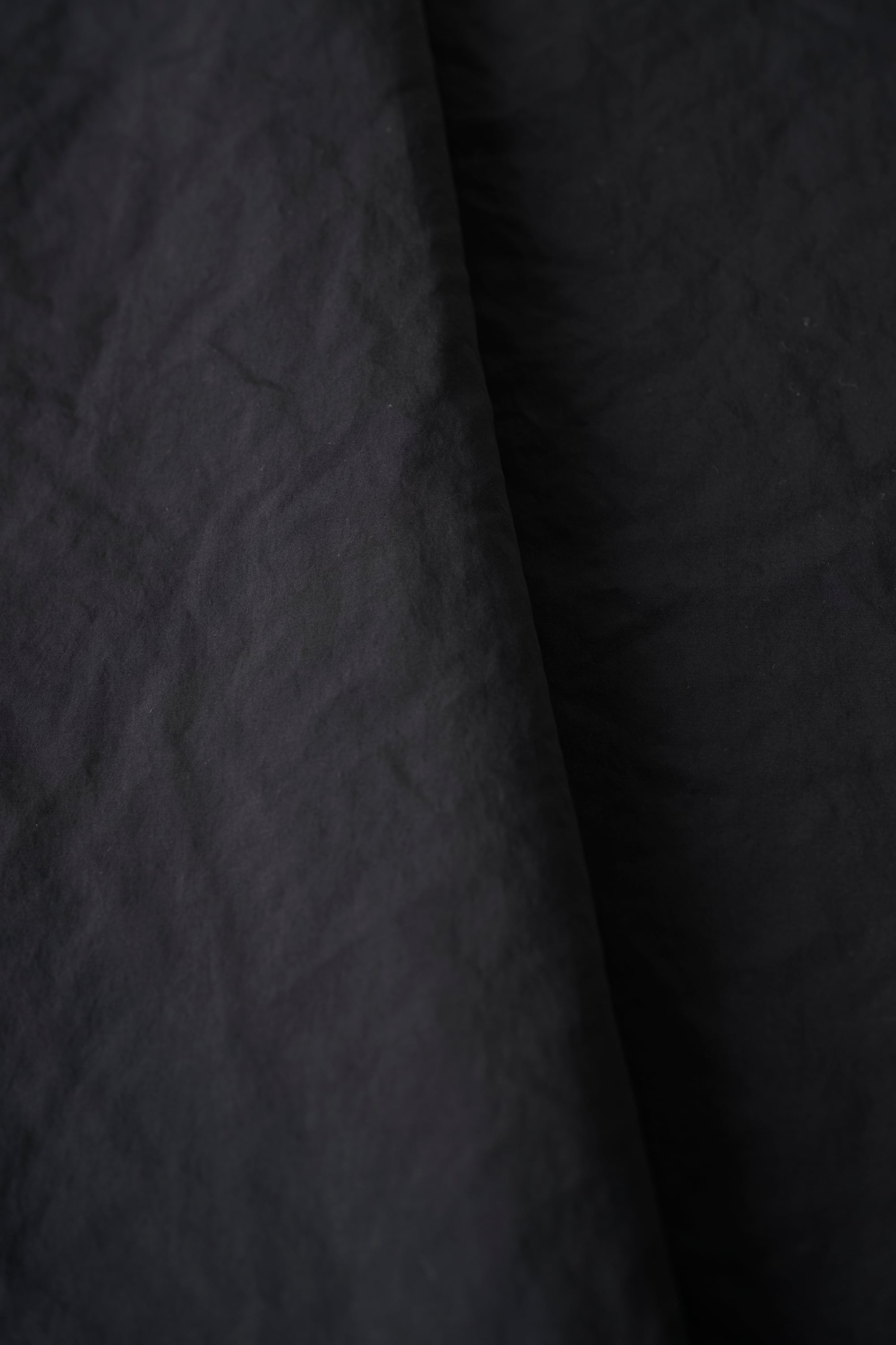 軽量で耐久性のある、撥水機能付きポリエステルタフタです。タフタ特有のなめらかな表面感としなやかな手触りを持ちながら、ナチュラルな表情も兼ね備えた素材です。