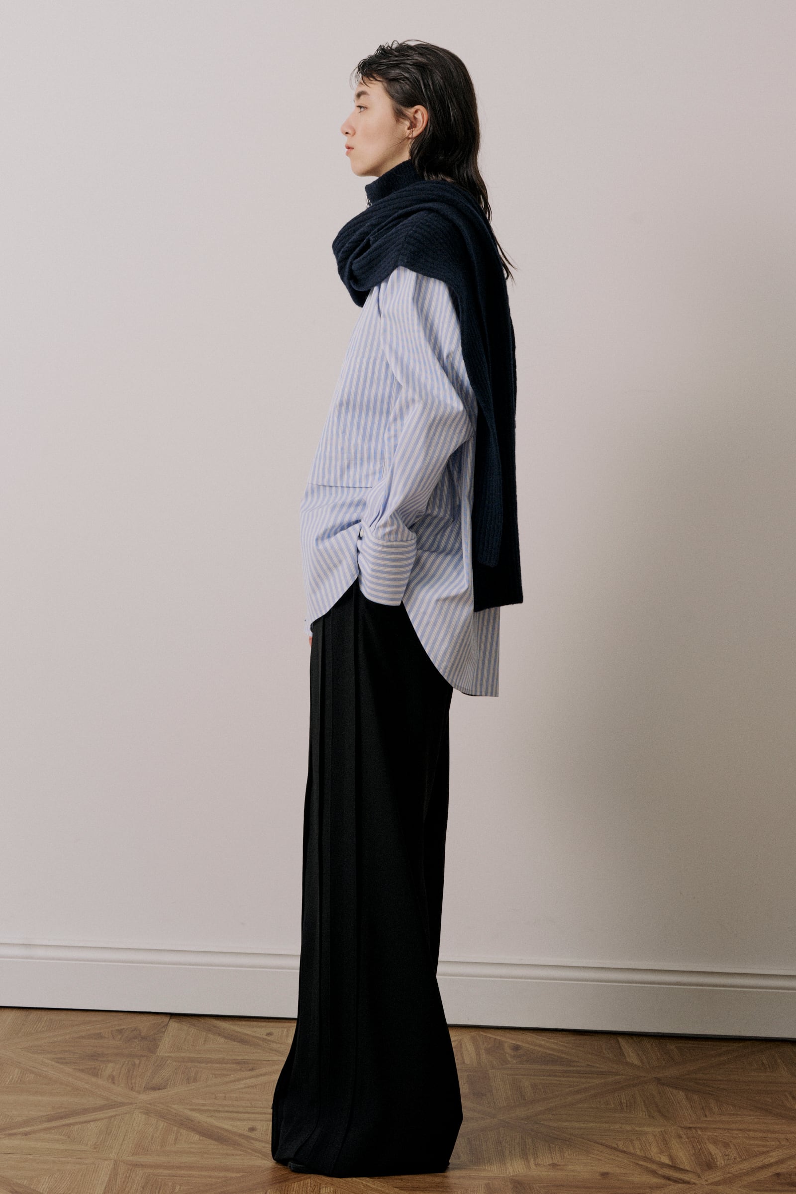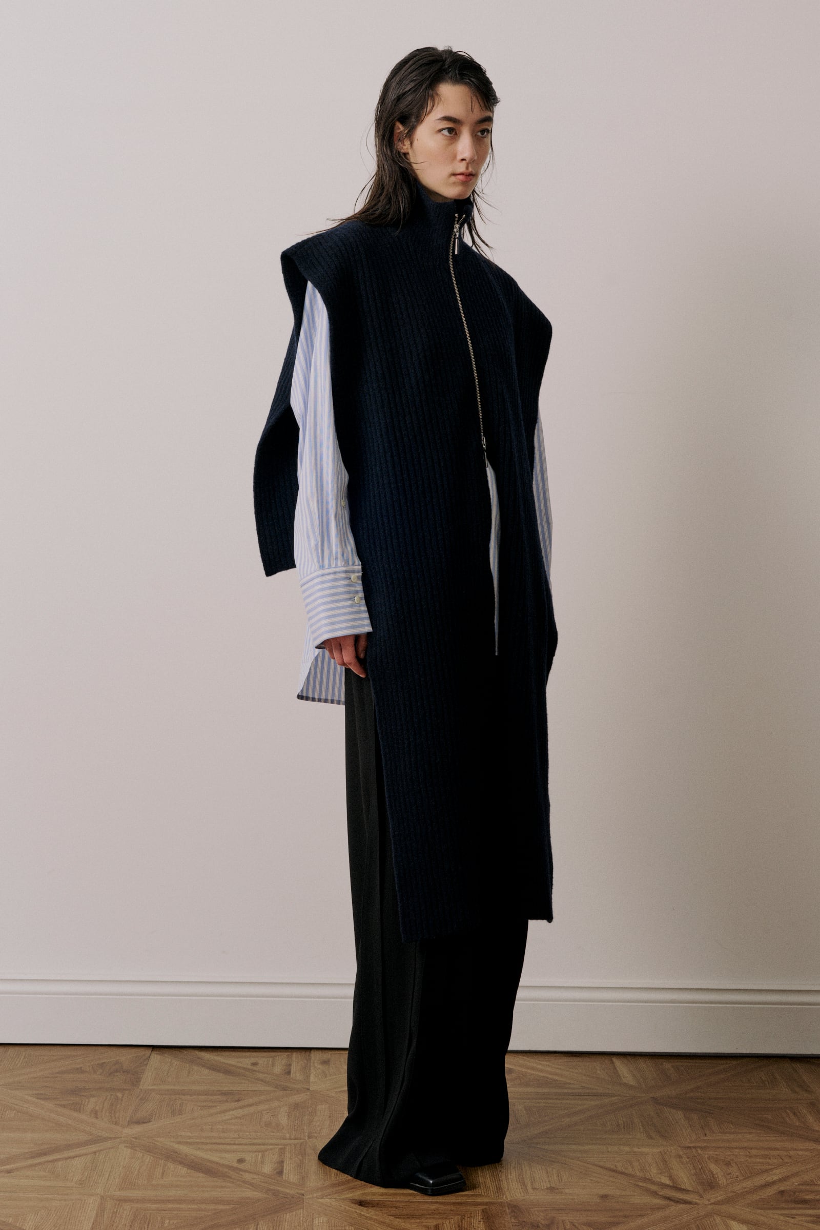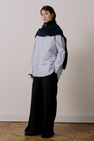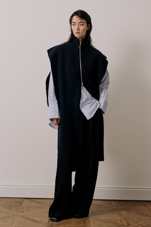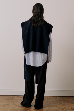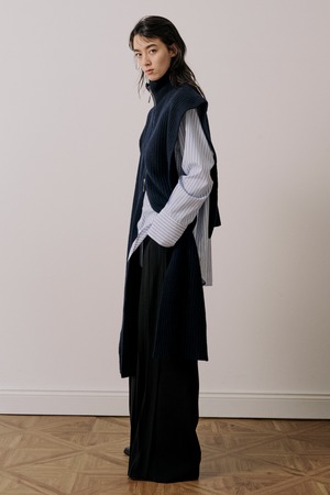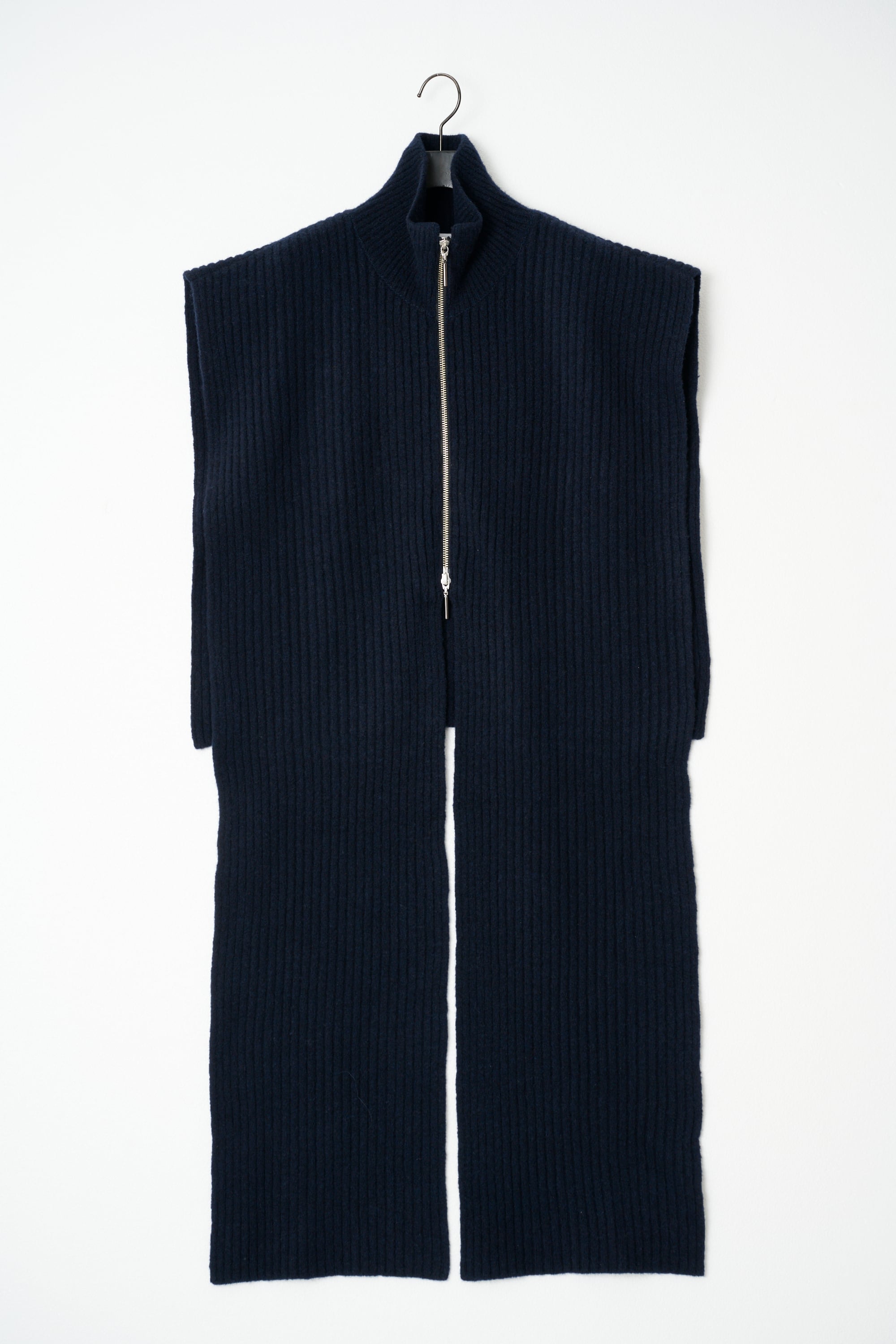 ベストとして着用したりマフラーのように巻いたりコーディネートのアクセントになる一枚です。