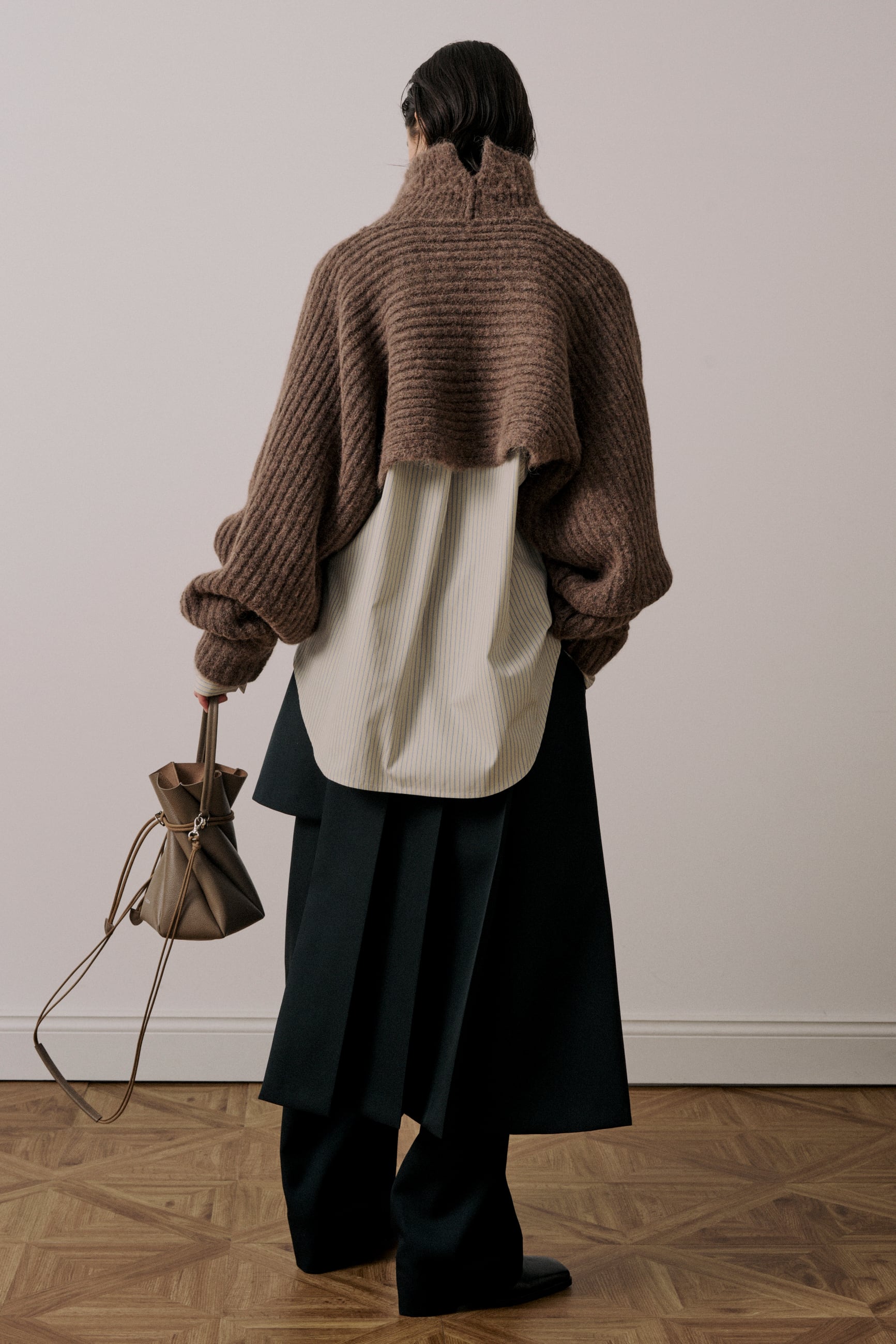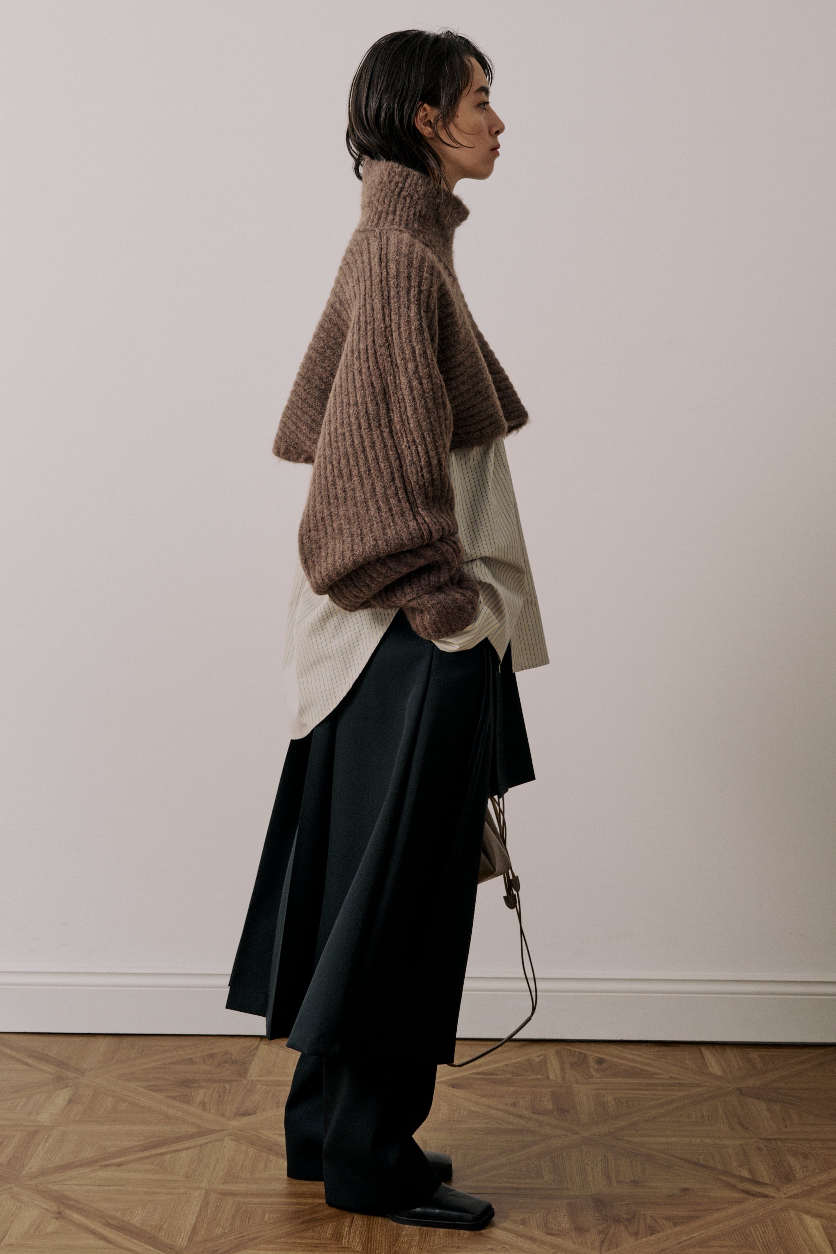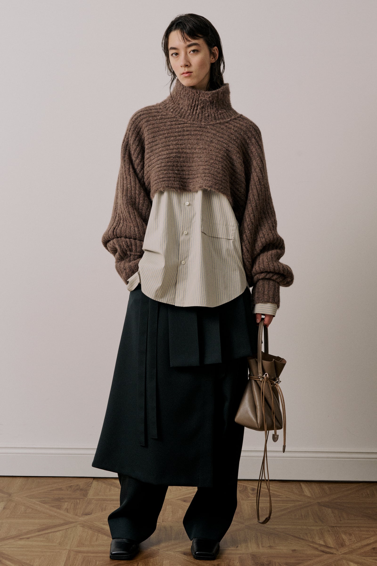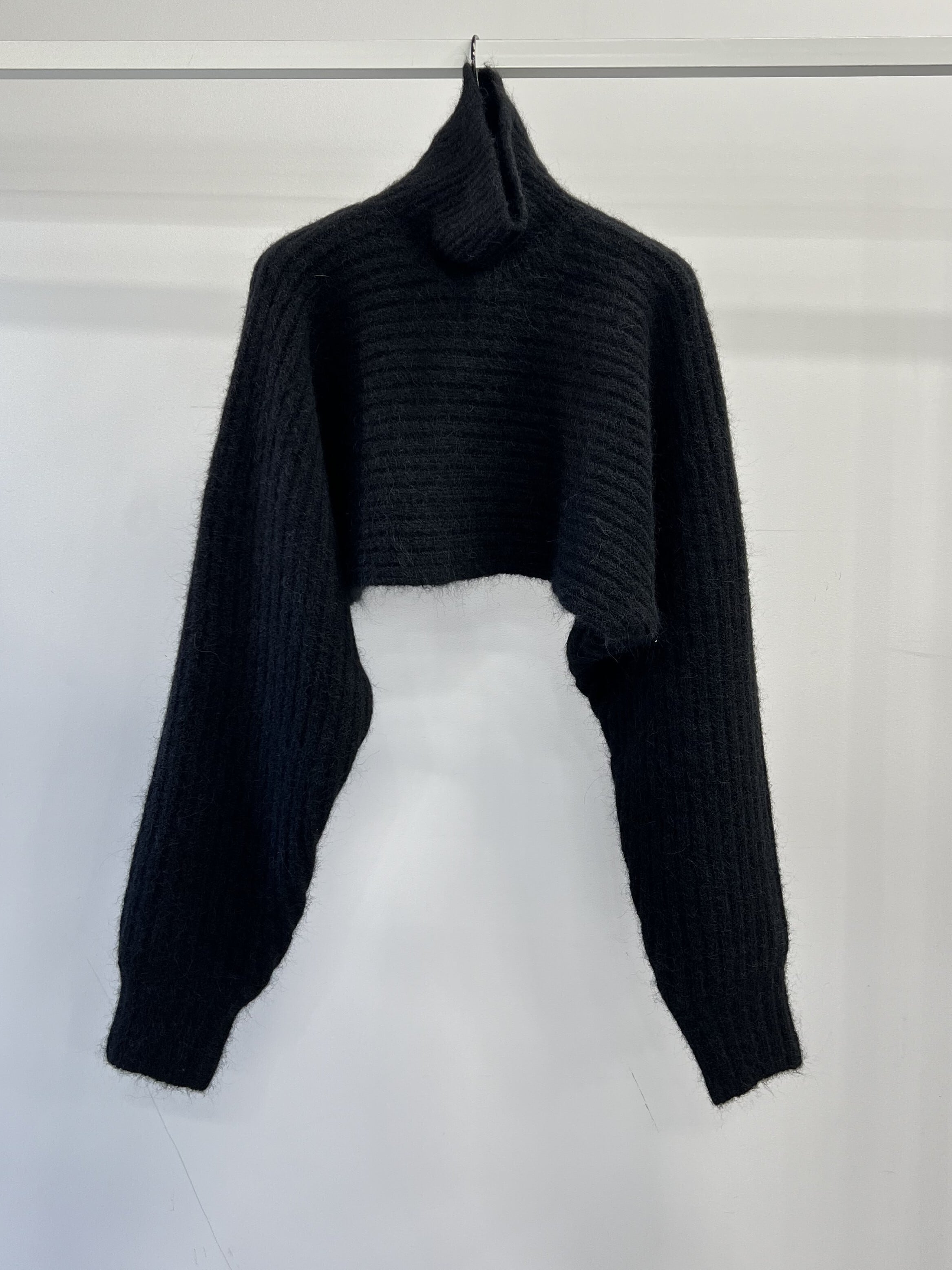 ボリュームのある袖とクロップド丈のバランスにこだわったタートルネックニットです。レイヤードスタイルが楽しめるアイテムになっています。