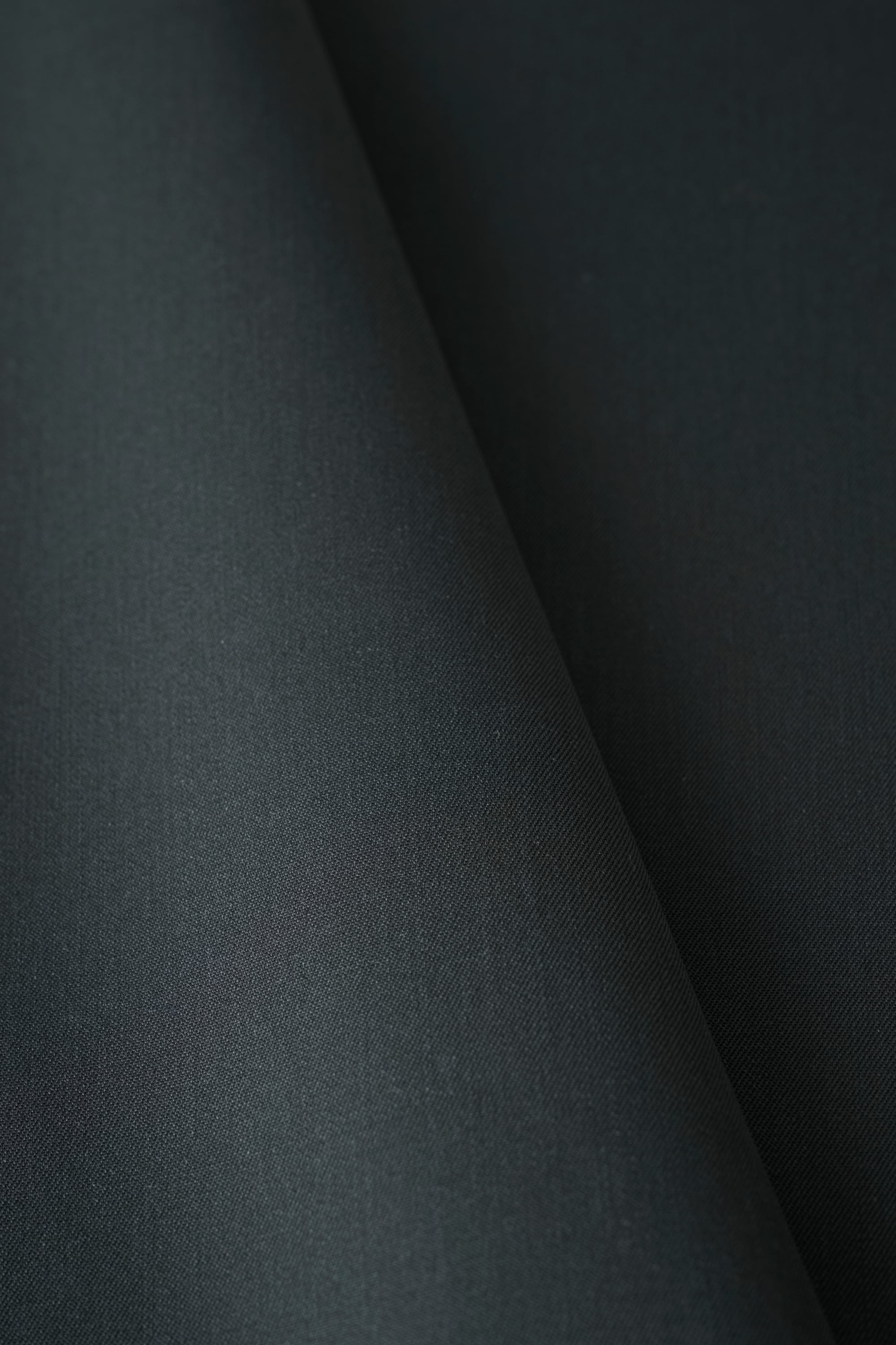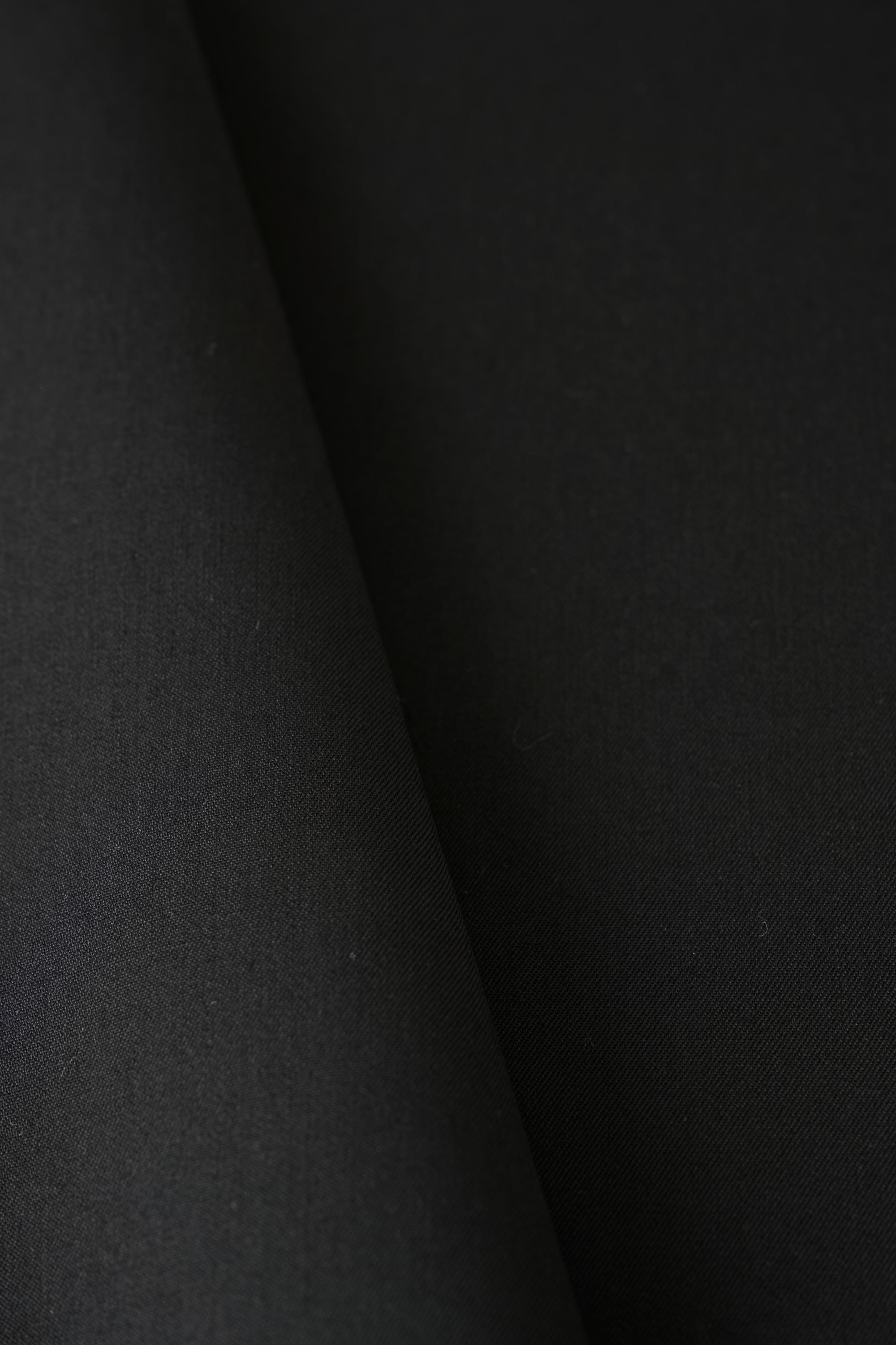 高密度織したギャバジンに樹脂加工を施した素材で、ペーパー加工と名付けられたように、紙のような落ち感を表現した生地です。パリッとハリのある仕上がりに、光沢と滑らかな肌触りで、高級感がある素材です。