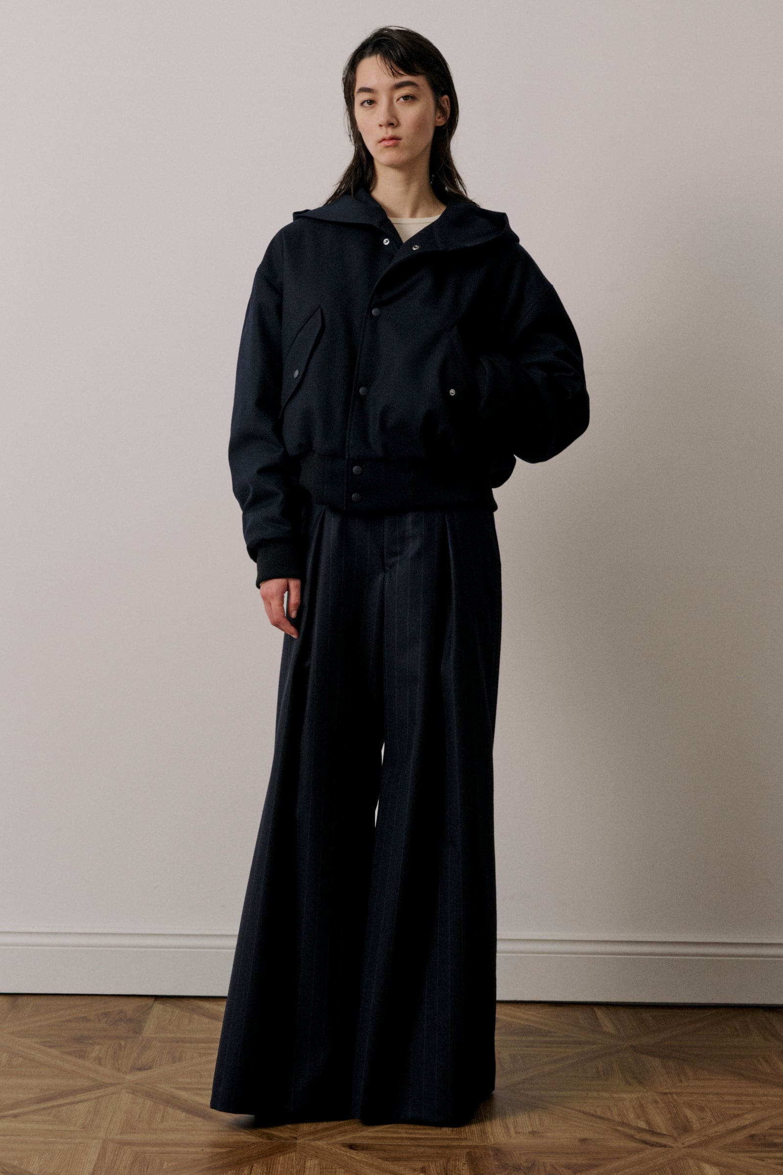 ボリューム感とショート丈のバランスにこだわったブルゾンです。裏地にキルティングを使用し立体感のあるシルエットとボリュームのある袖が特徴です。キルティングには光電子の綿を採用し、軽さと高い保温性を両立しています。