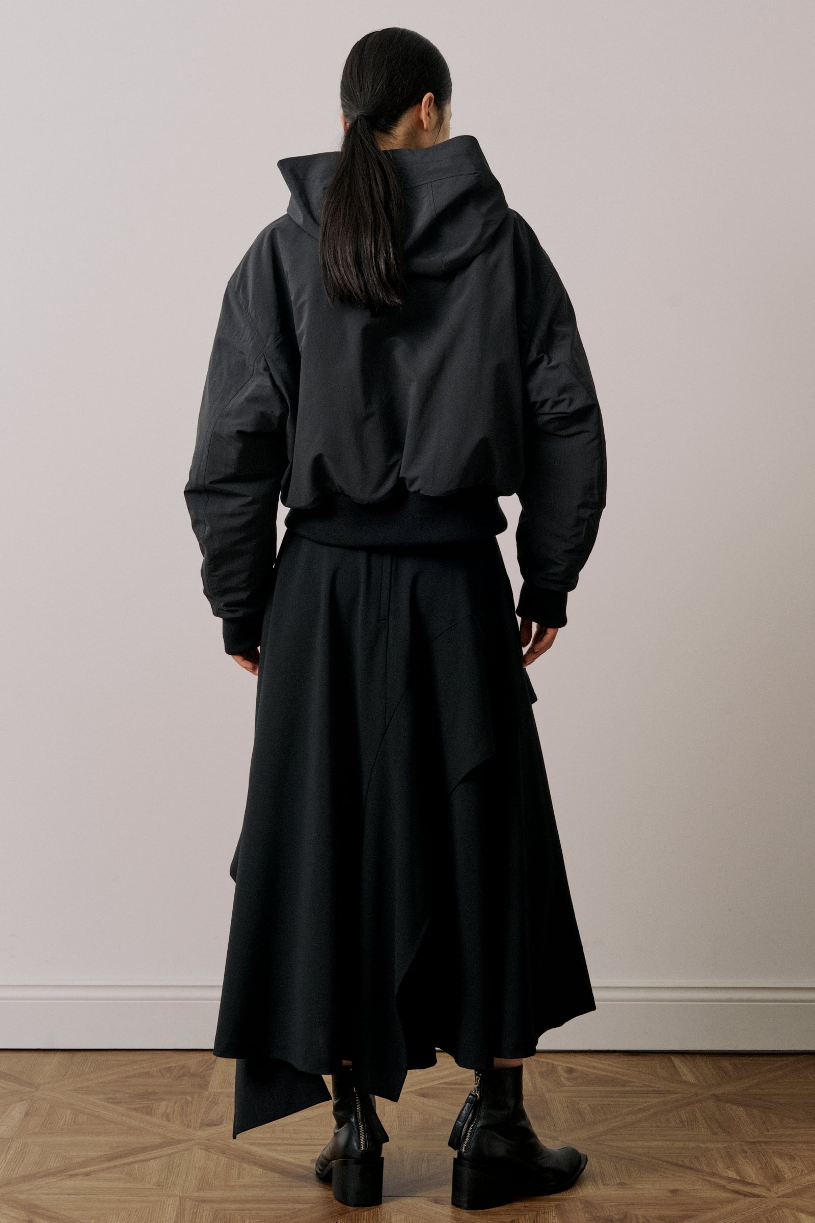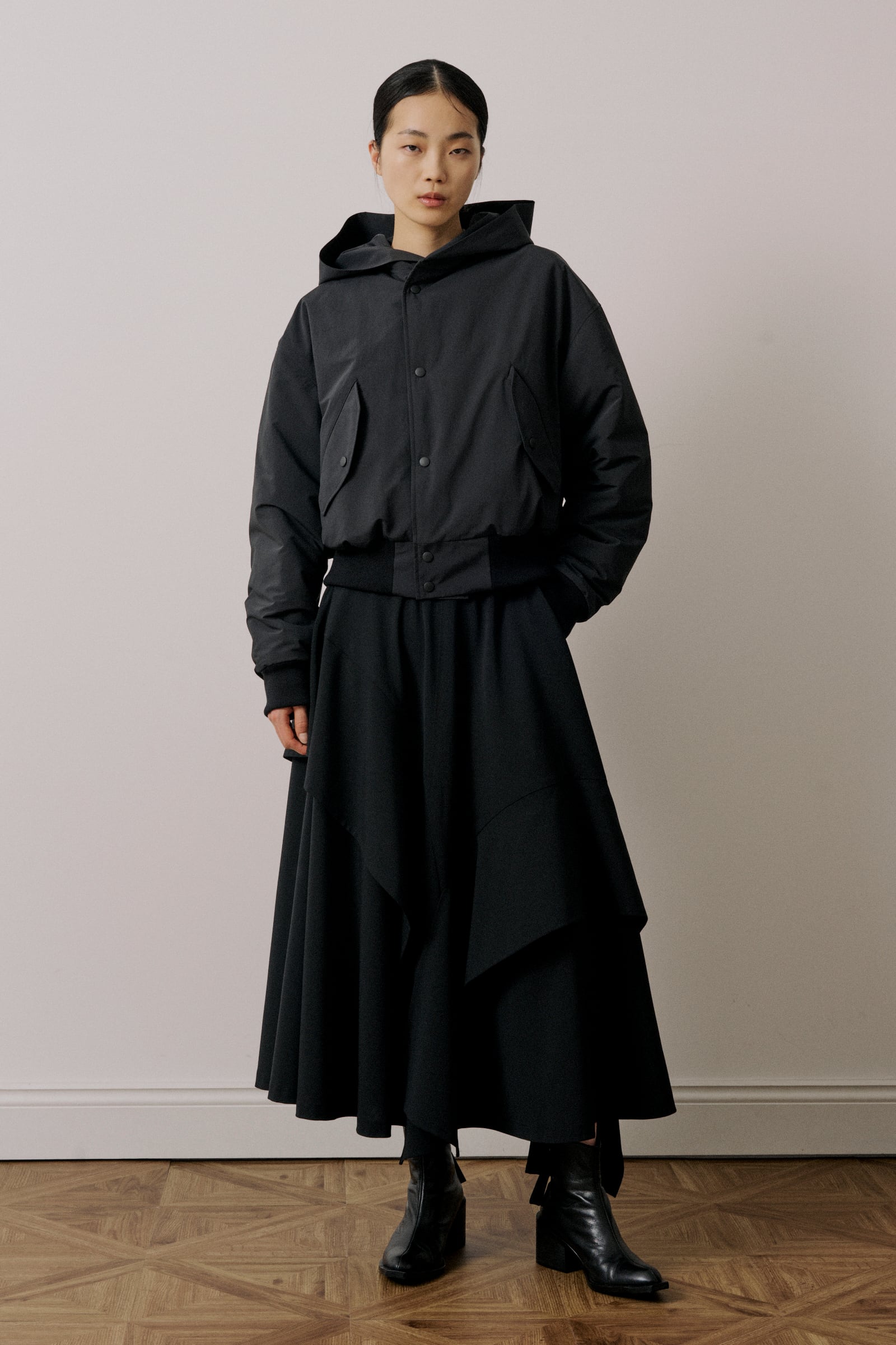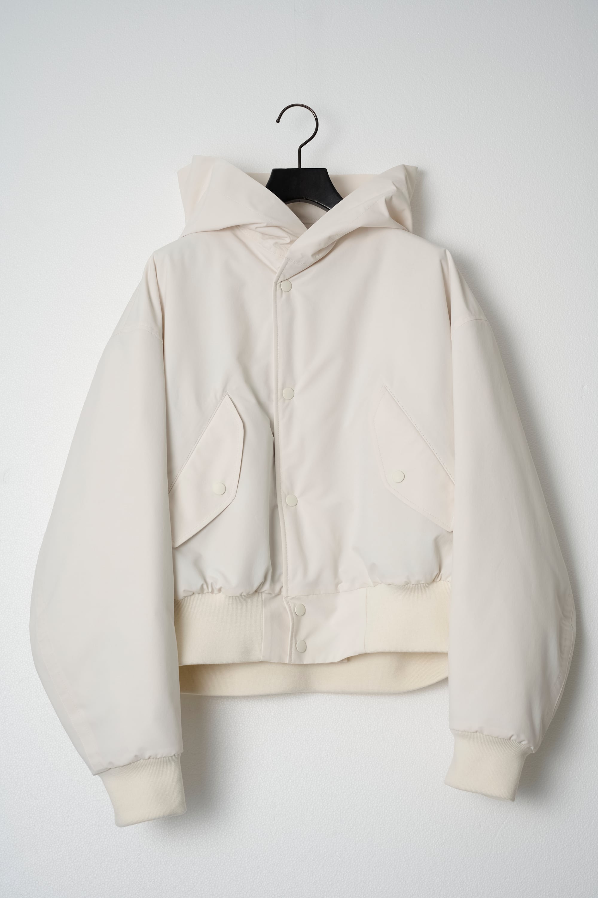 ボリューム感とショート丈のバランスにこだわったブルゾンです。裏地にキルティングを使用し立体感のあるシルエットとボリュームのある袖が特徴です。キルティングの綿は光電子の綿を使用し、軽さと高い保温性を両立しています。