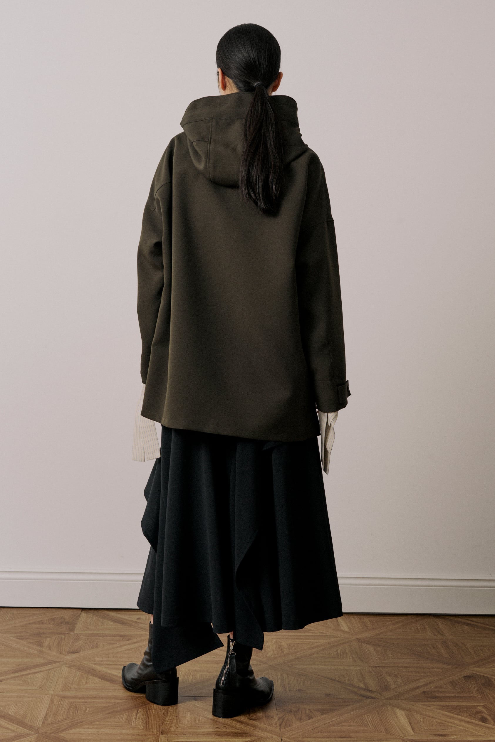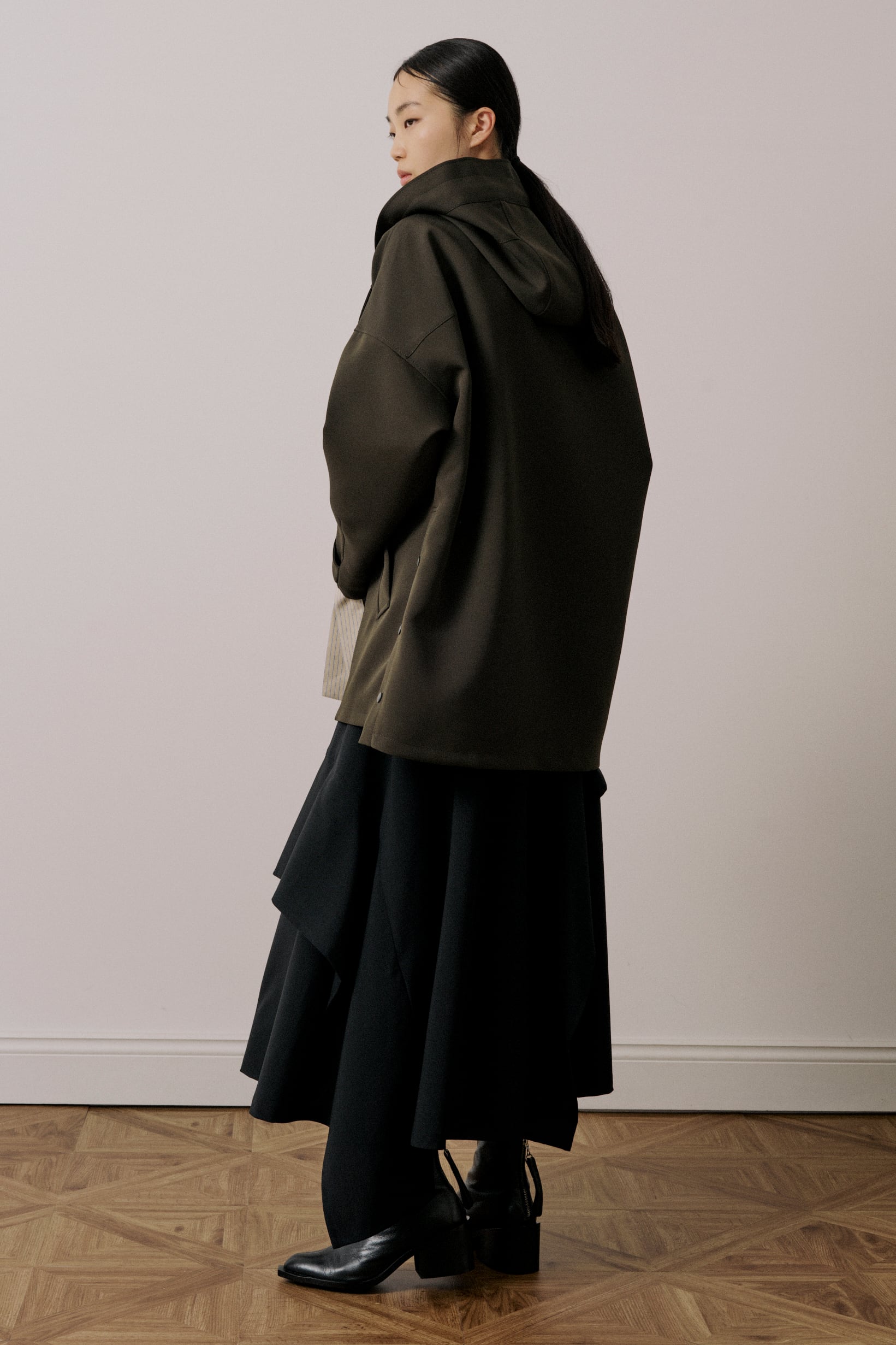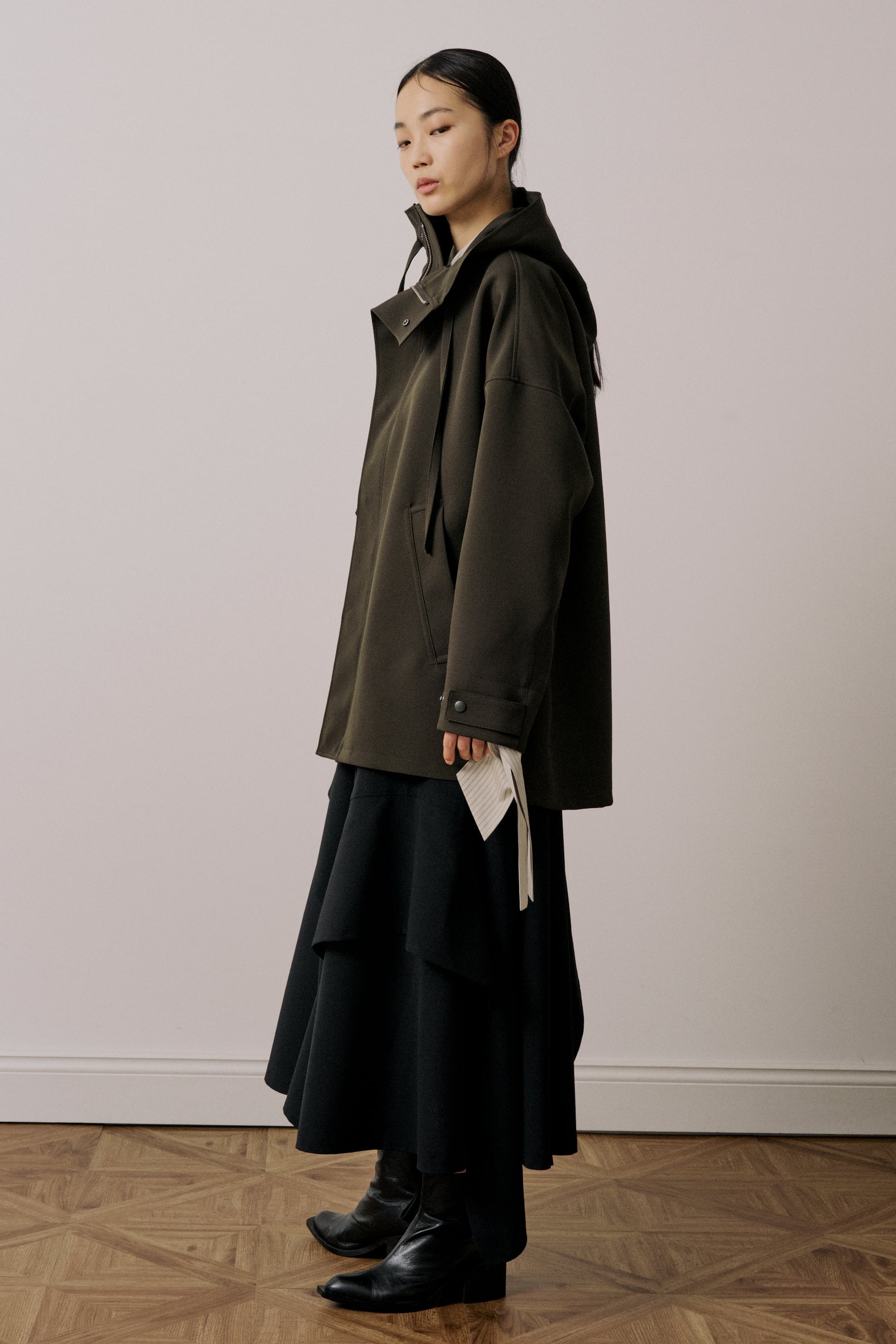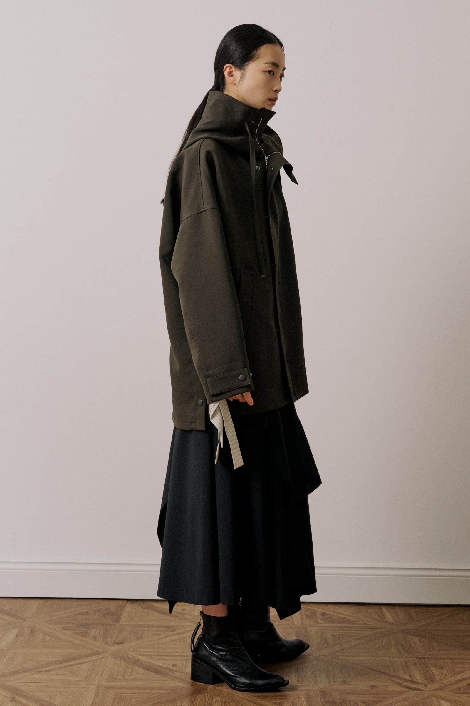 ゆったりとしたシルエットのZIP UPフーディーです。ドロップショルダー、ドット釦付きサイドスリット仕様、大ぶりなフードデザインが抜け感のある雰囲気に仕上がっています。
