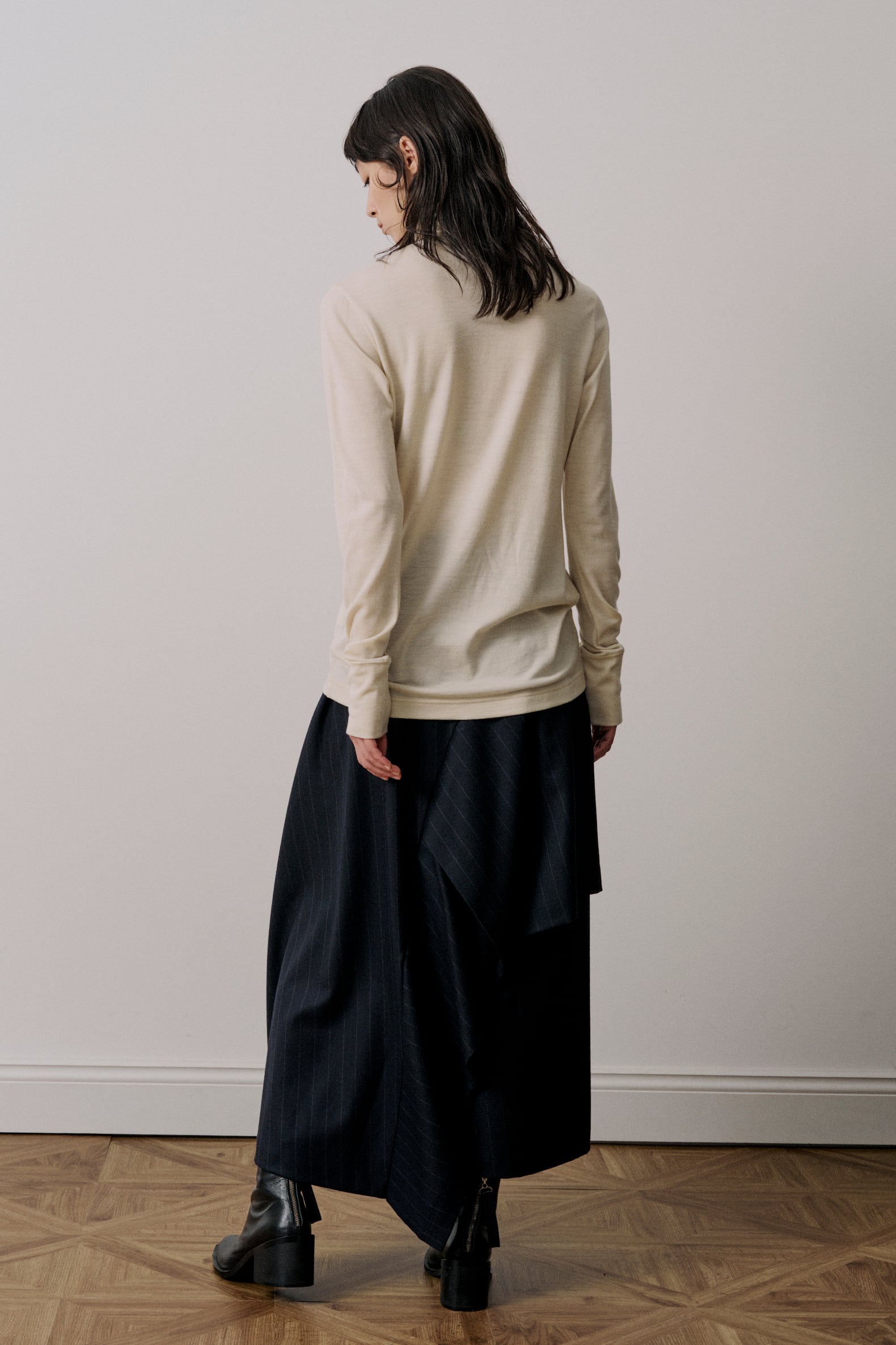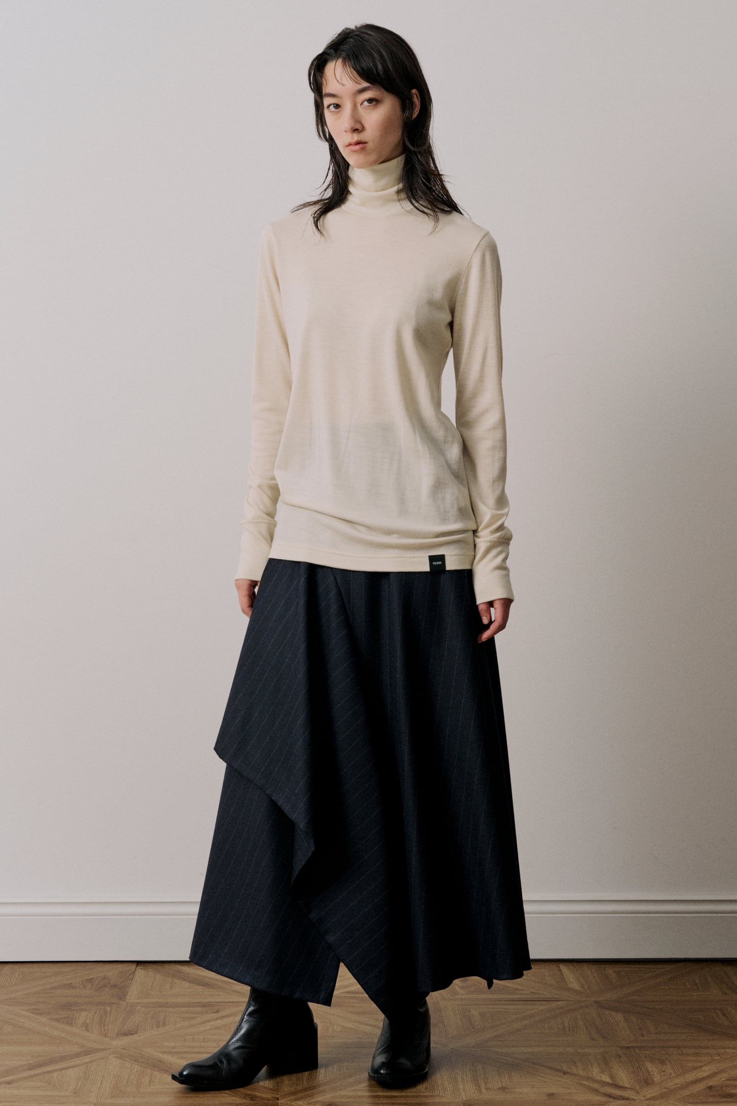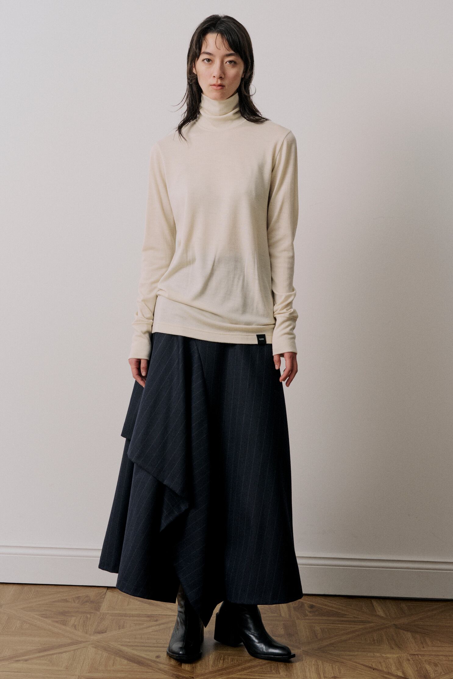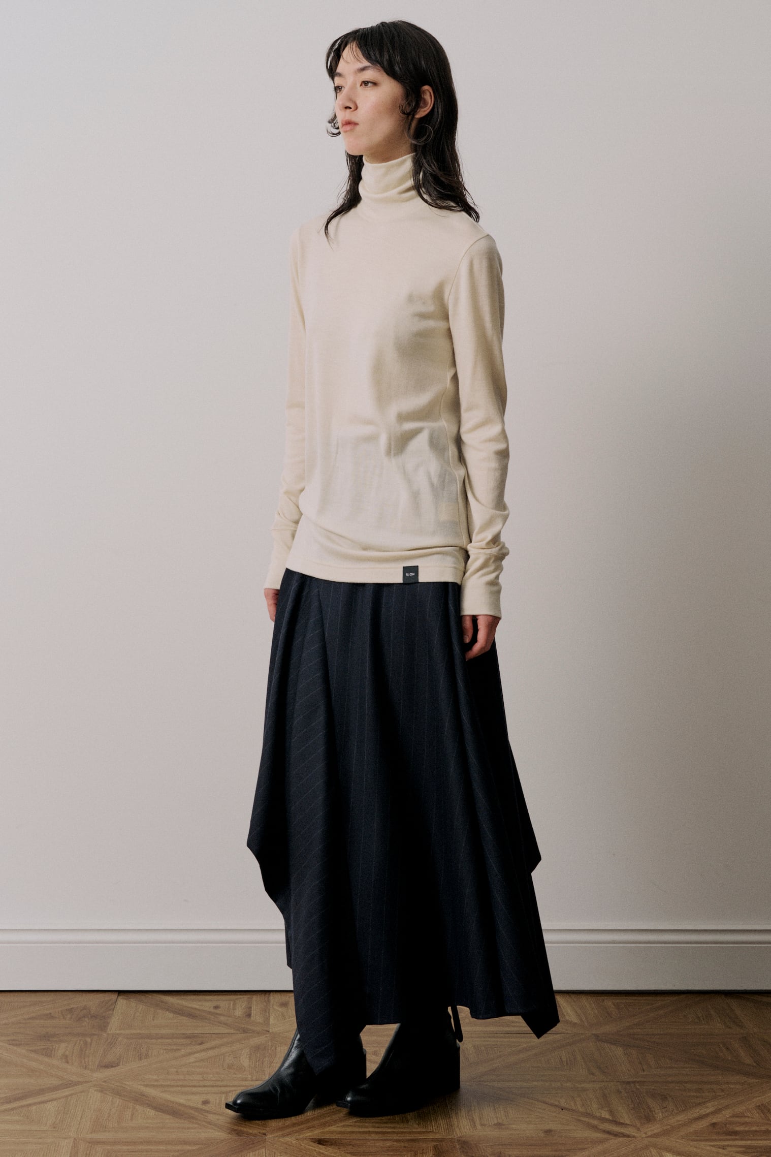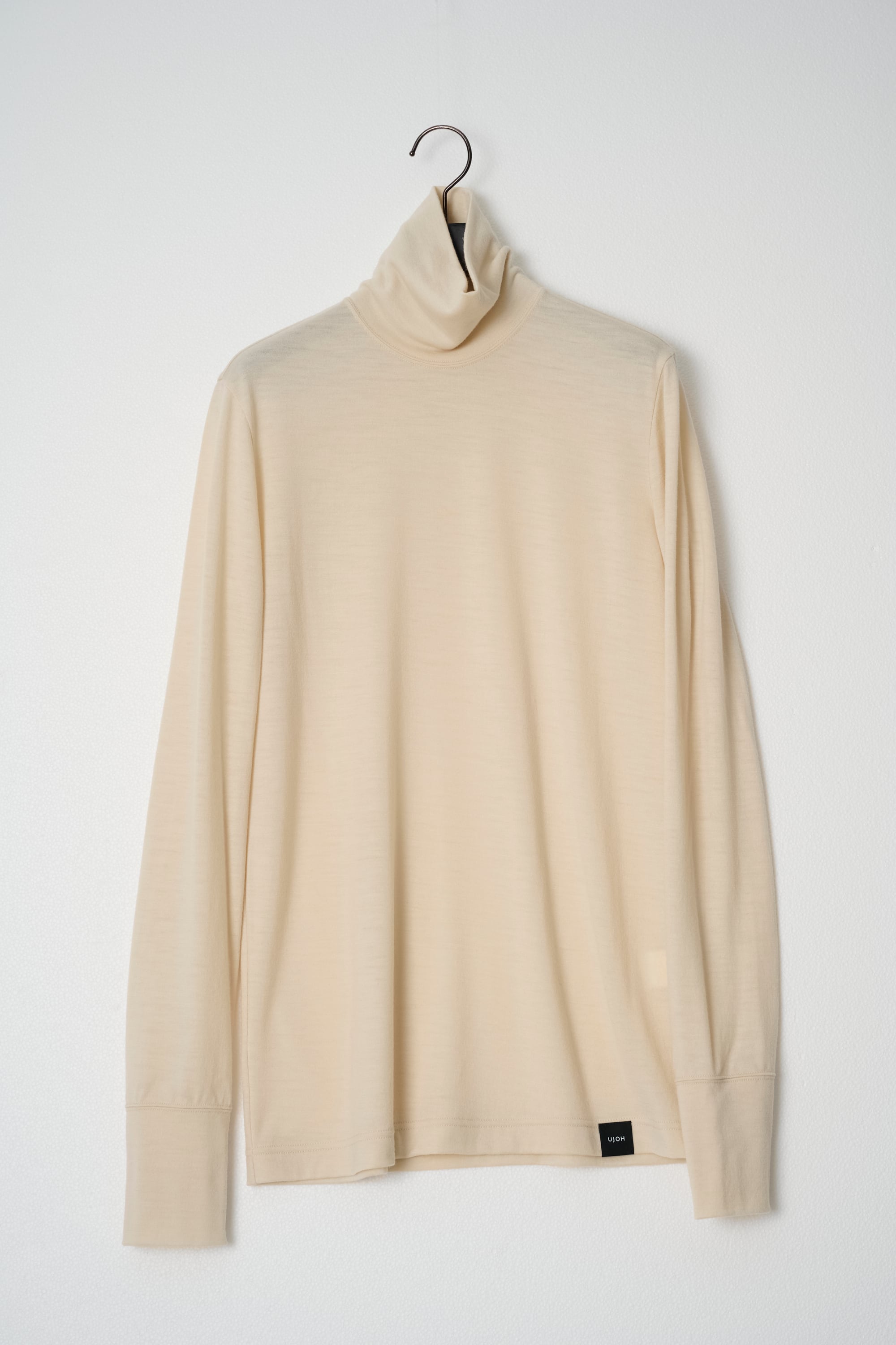 キレイにフィットするように仕⽴てたハイネックTシャツです。1枚でもレイヤードのインナーとしても活躍するデザインです。