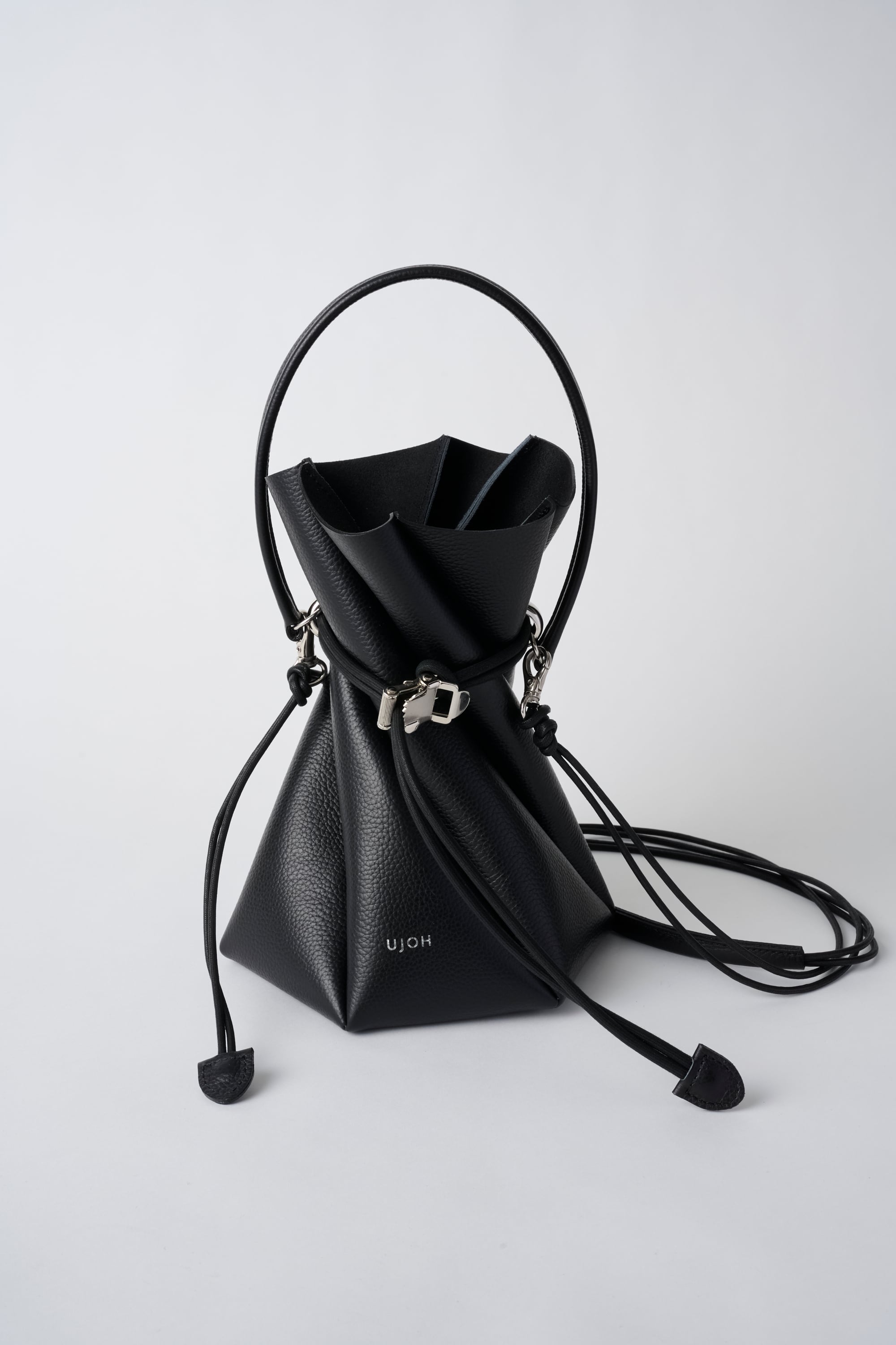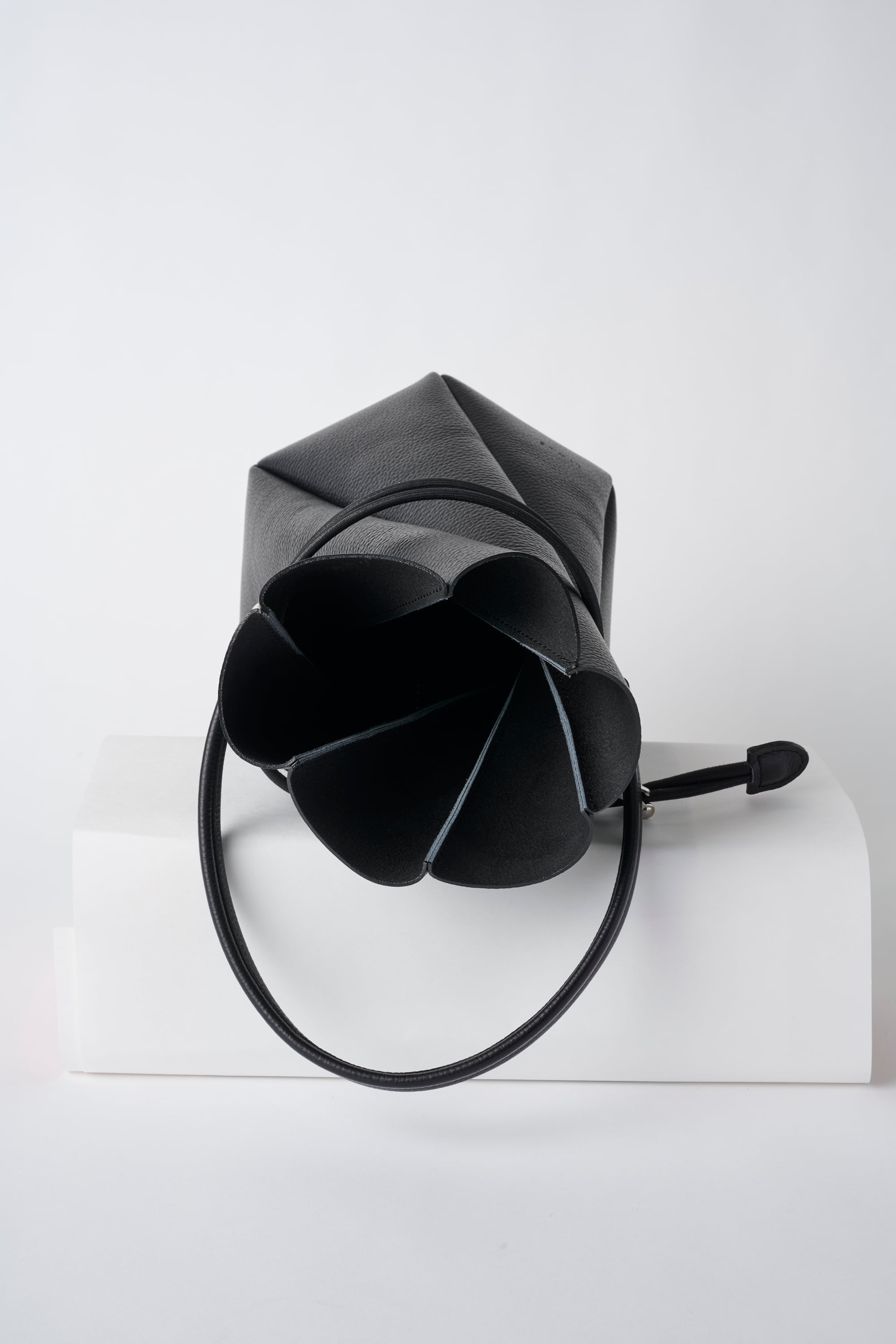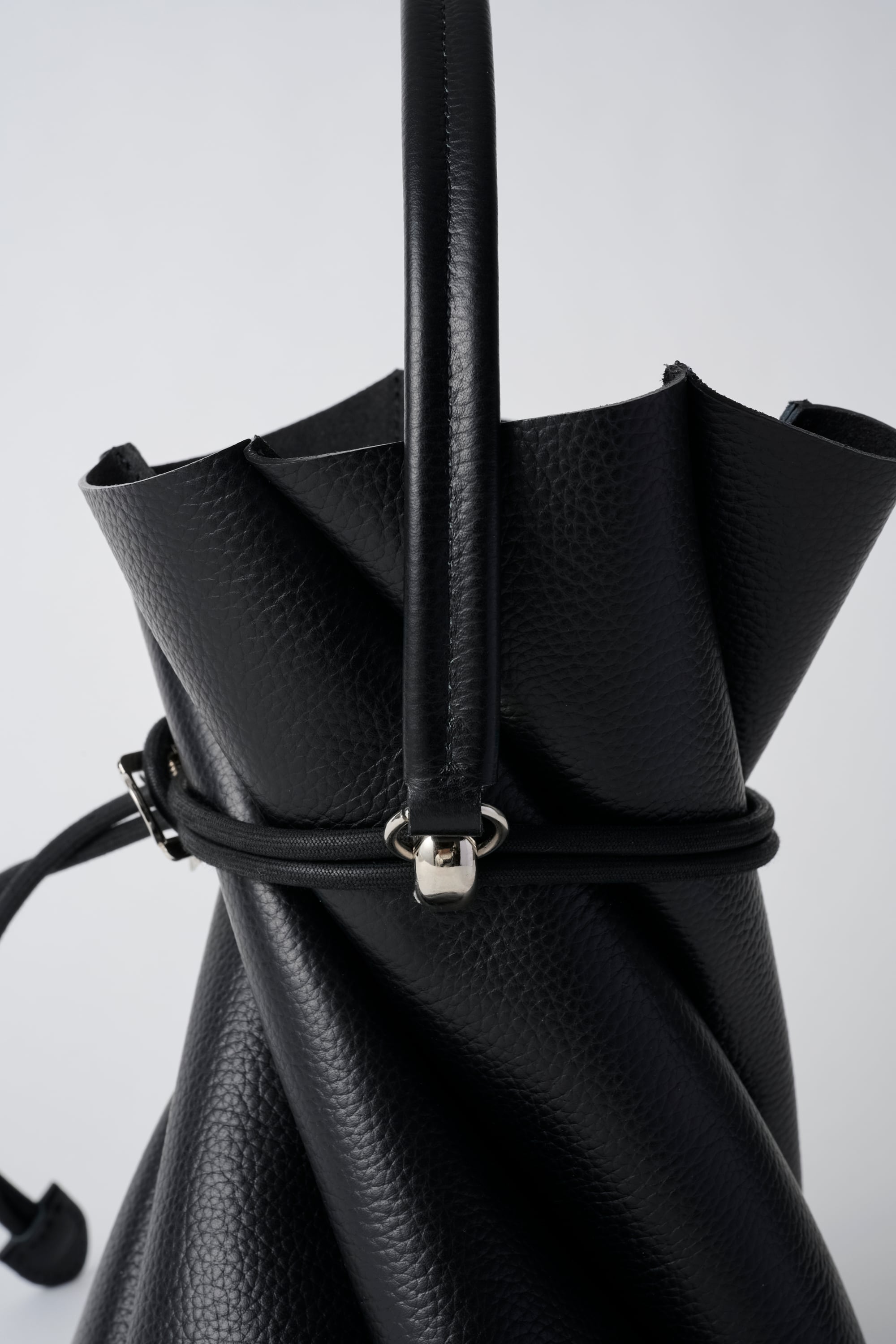 渦を巻いたような形状で、ねじれた6枚のパターンで形を作ったバッグです。