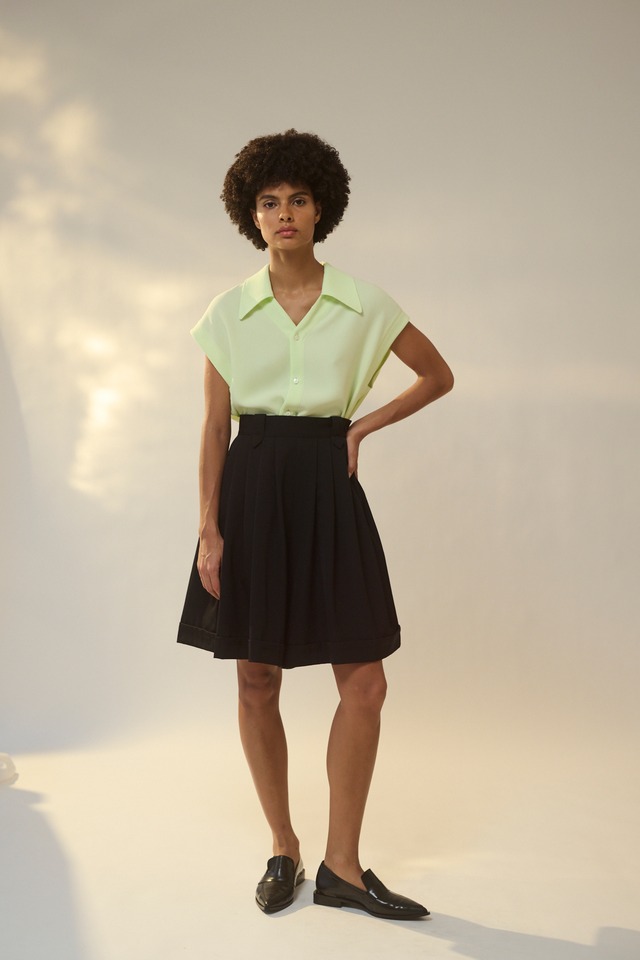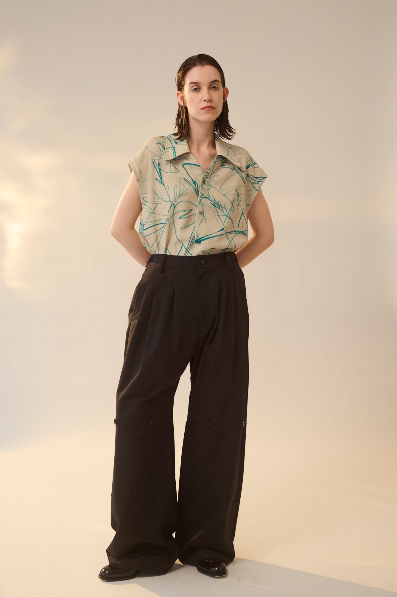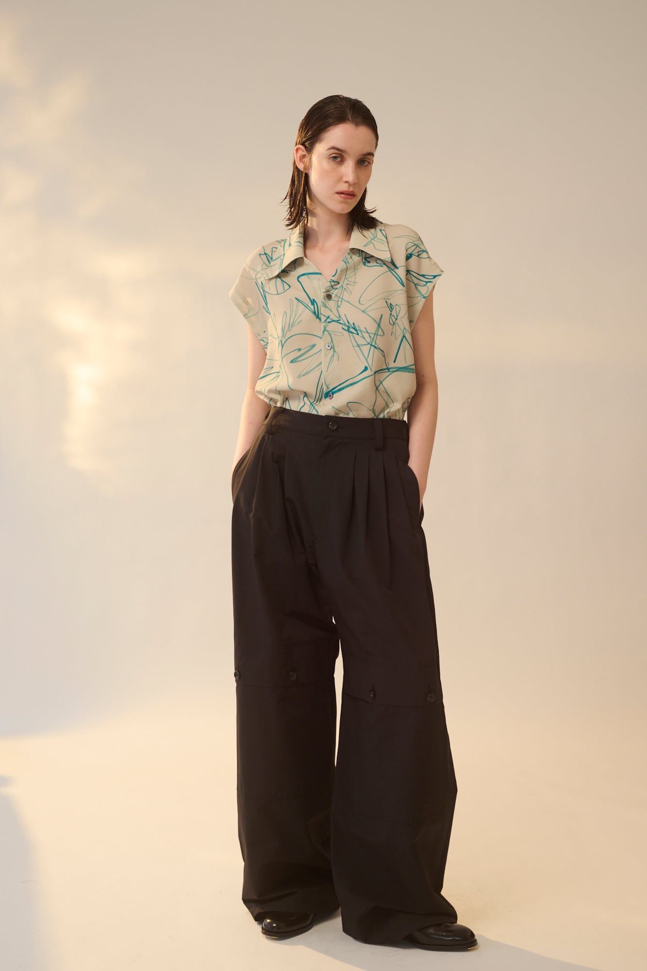程よいハリ感を表現しています。綿側にはシルケット加⼯を施し光沢を与え、さらにエアフロー加⼯によりナチュラルな⾵合いを持たせた上品な⽣地です。