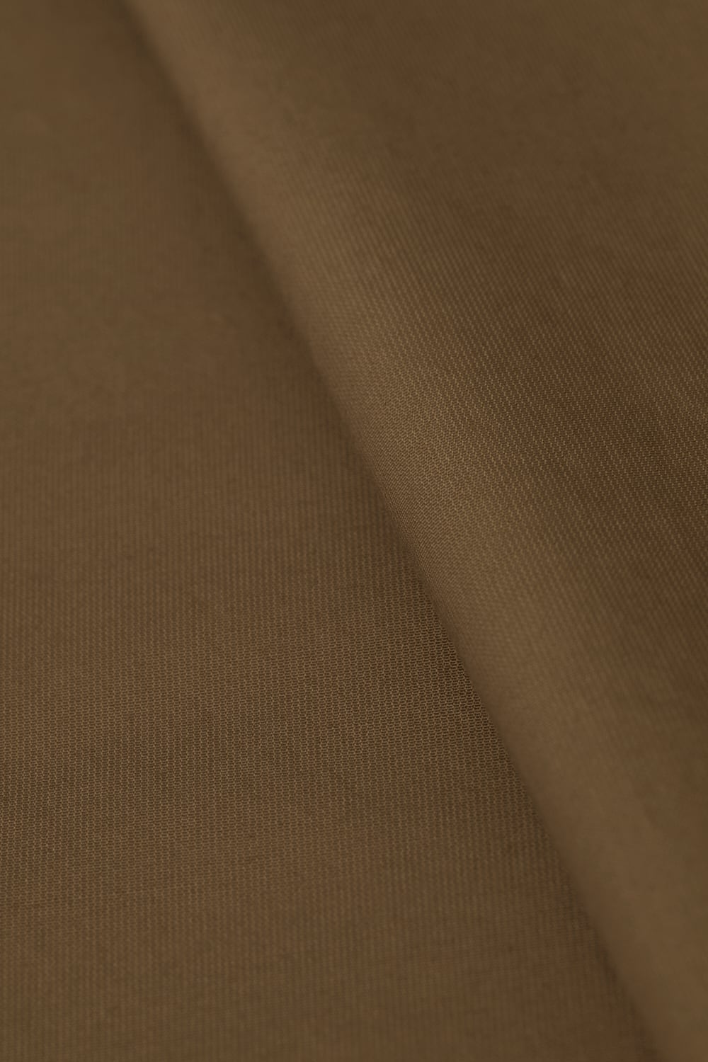 綿×ポリエステルのグログラン素材で、経糸にポリエステルを使用することで程よいハリ感を表現しています。綿側にはシルケット加工を施し光沢を与え、さらにエアフロー加工によりナチュラルな風合いを持たせた上品な生地です。
