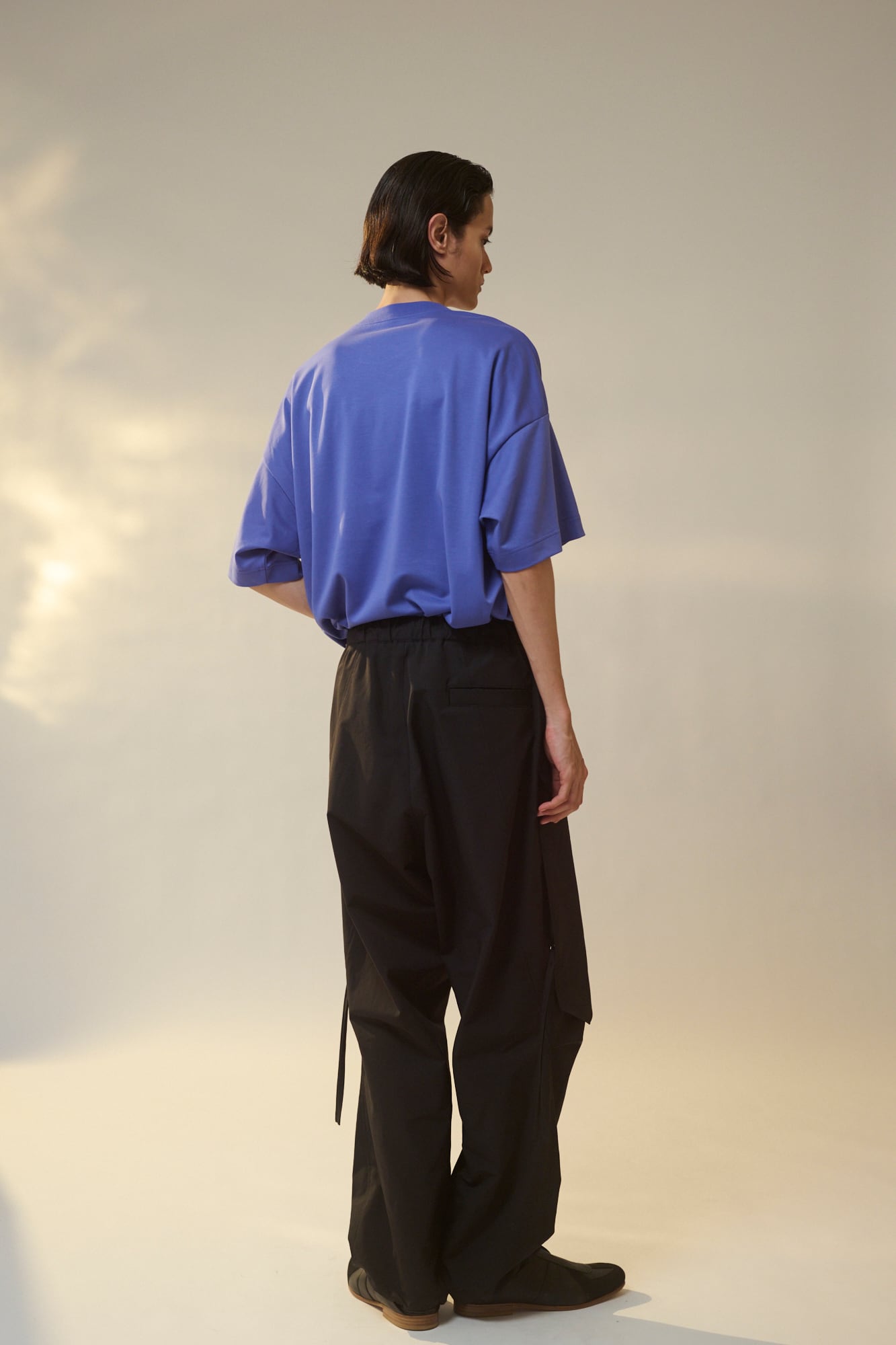 フロントに配した⼤ぶりのアウトポケットが存在感あるユーティリティパンツです。