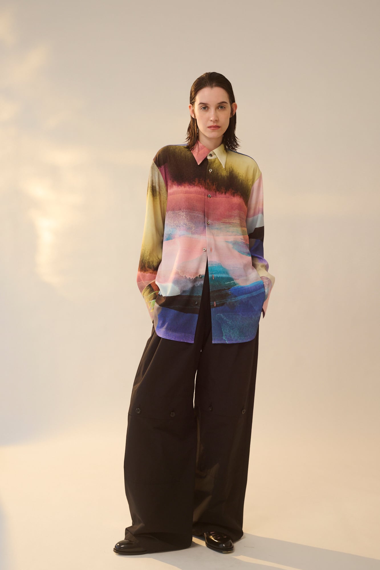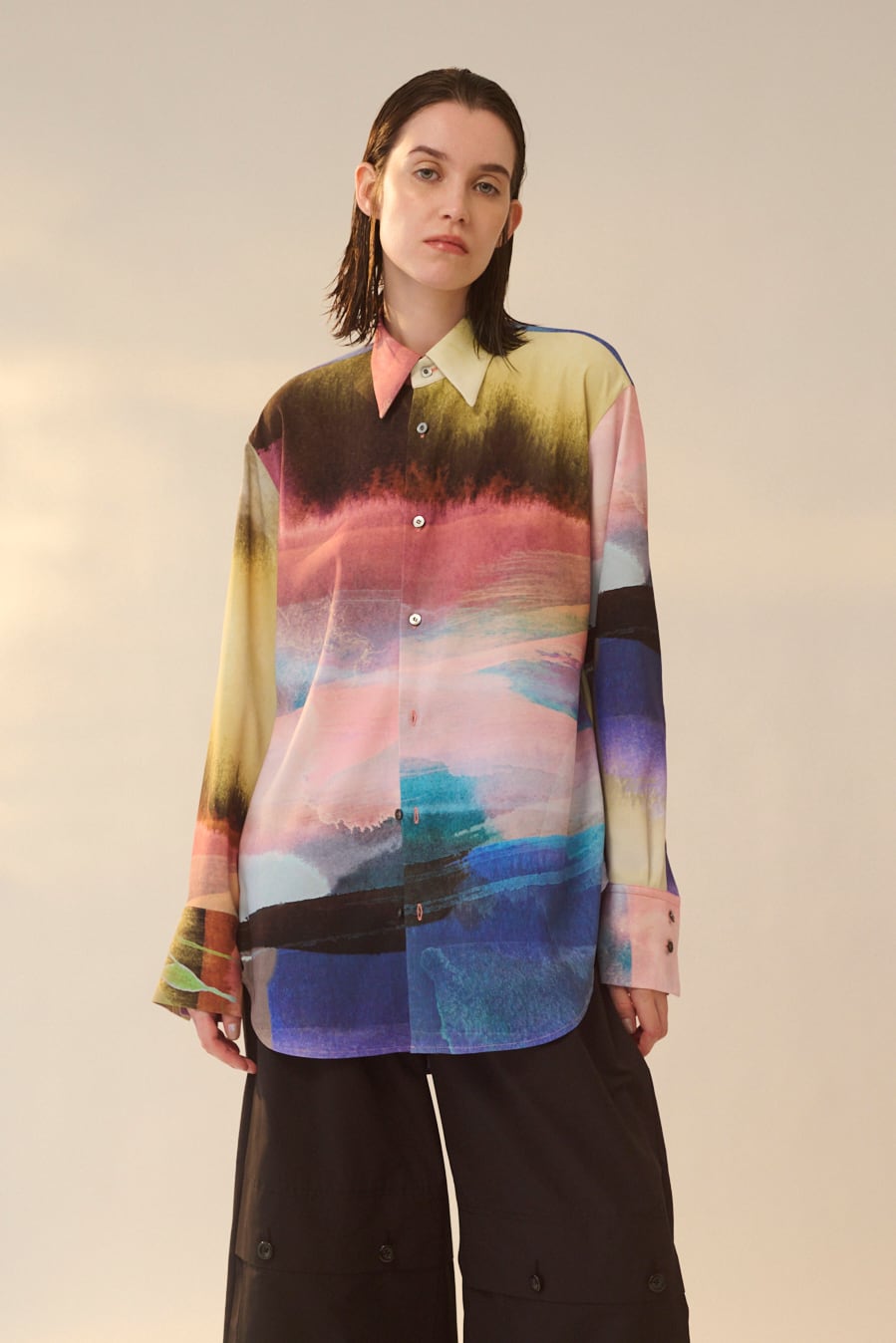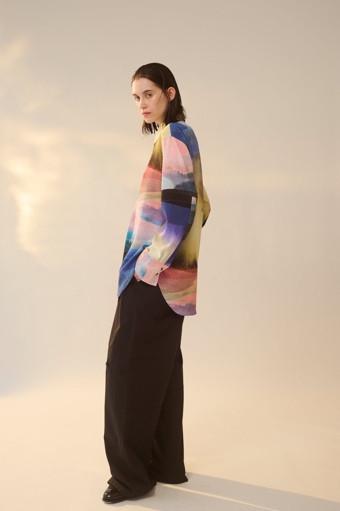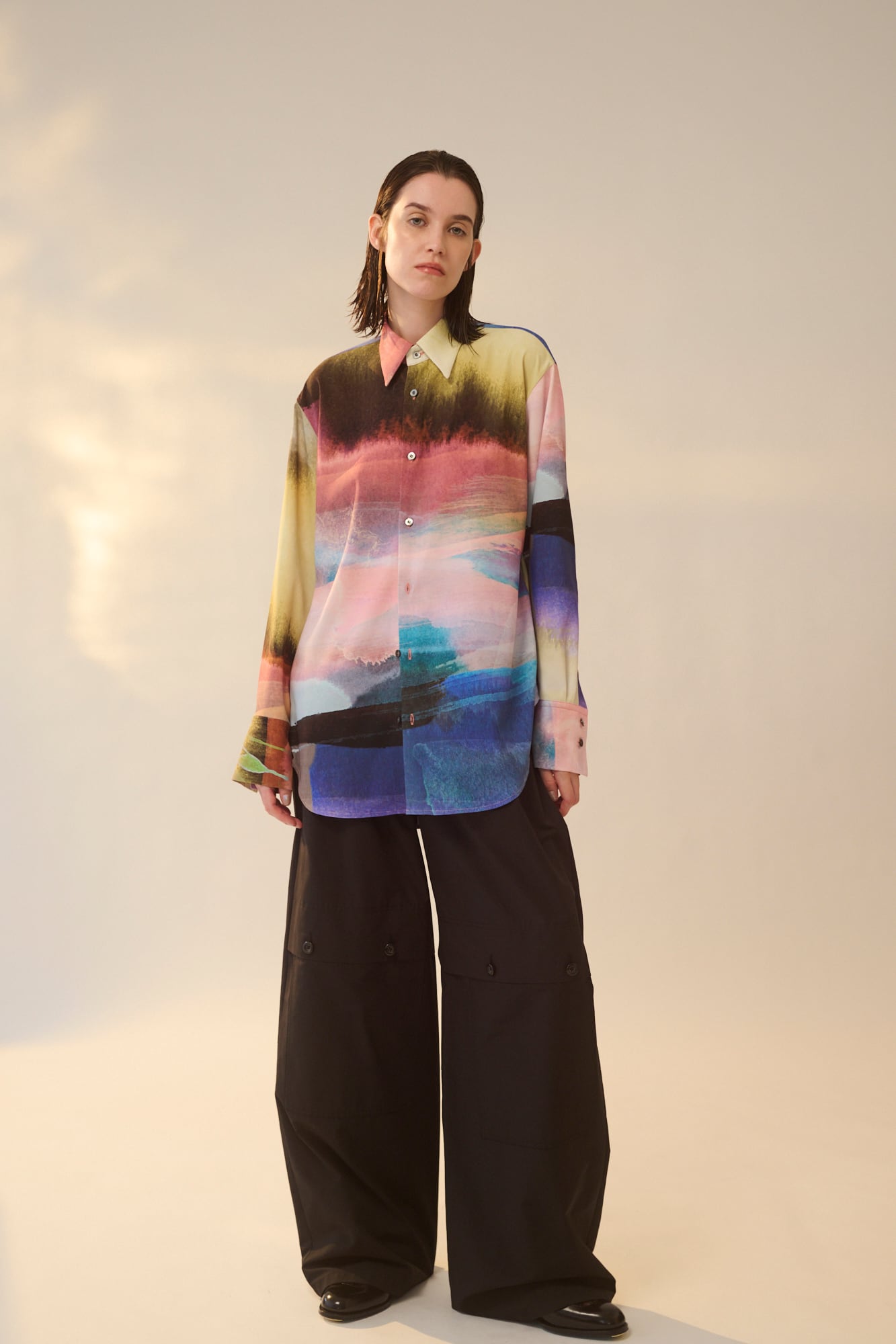 無駄のないミニマルなデザインがプリント柄の存在感を引き?たせます。