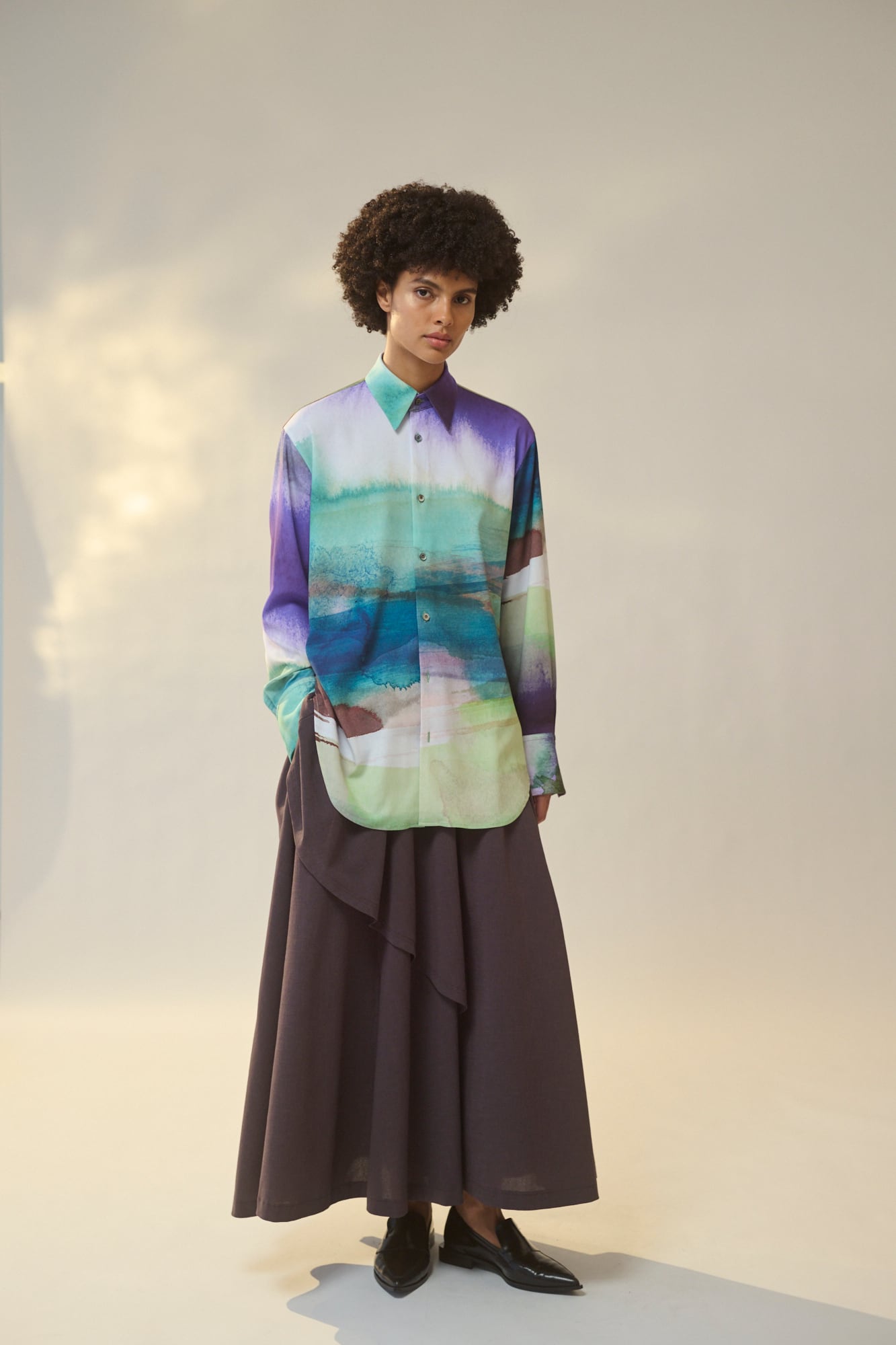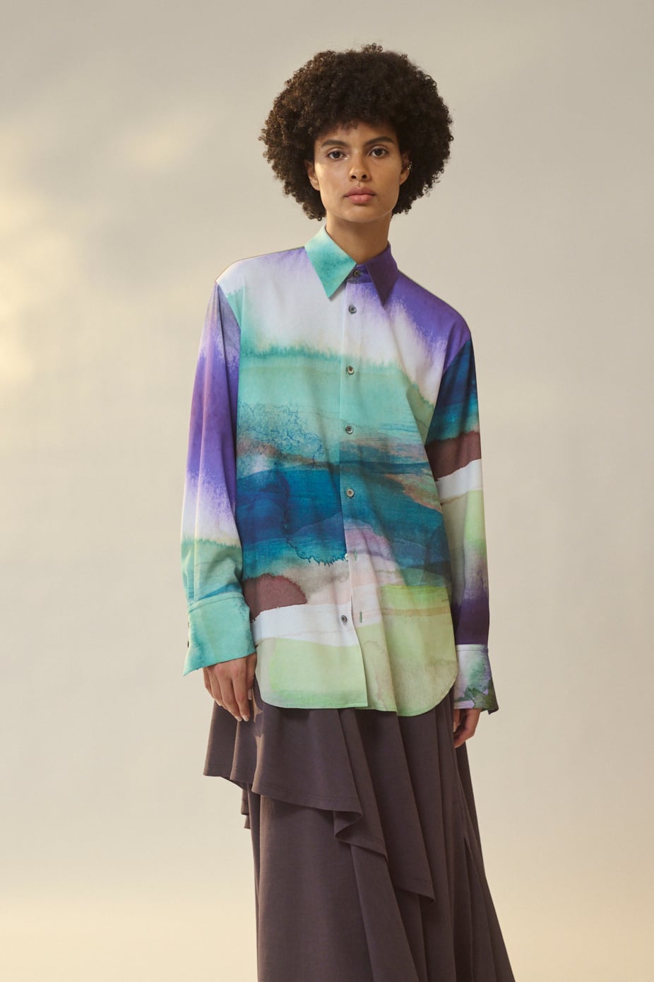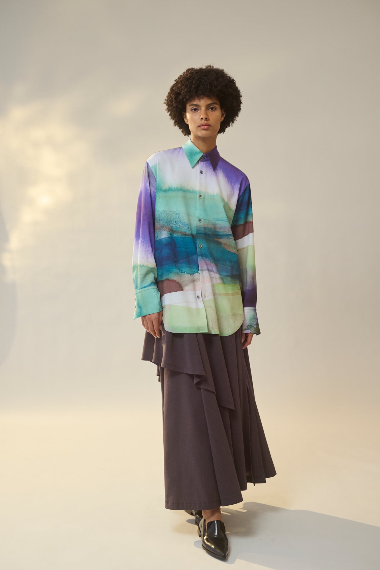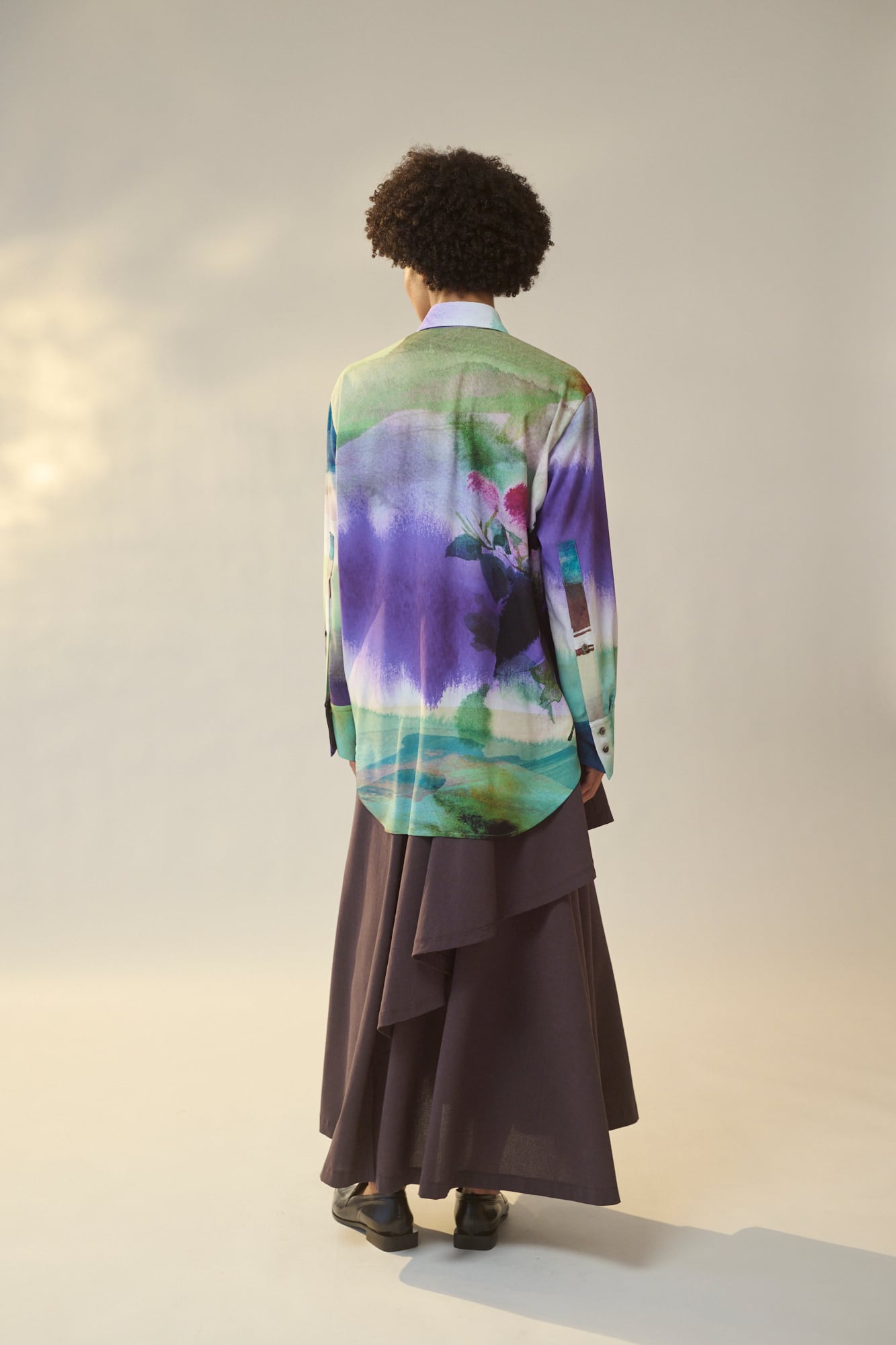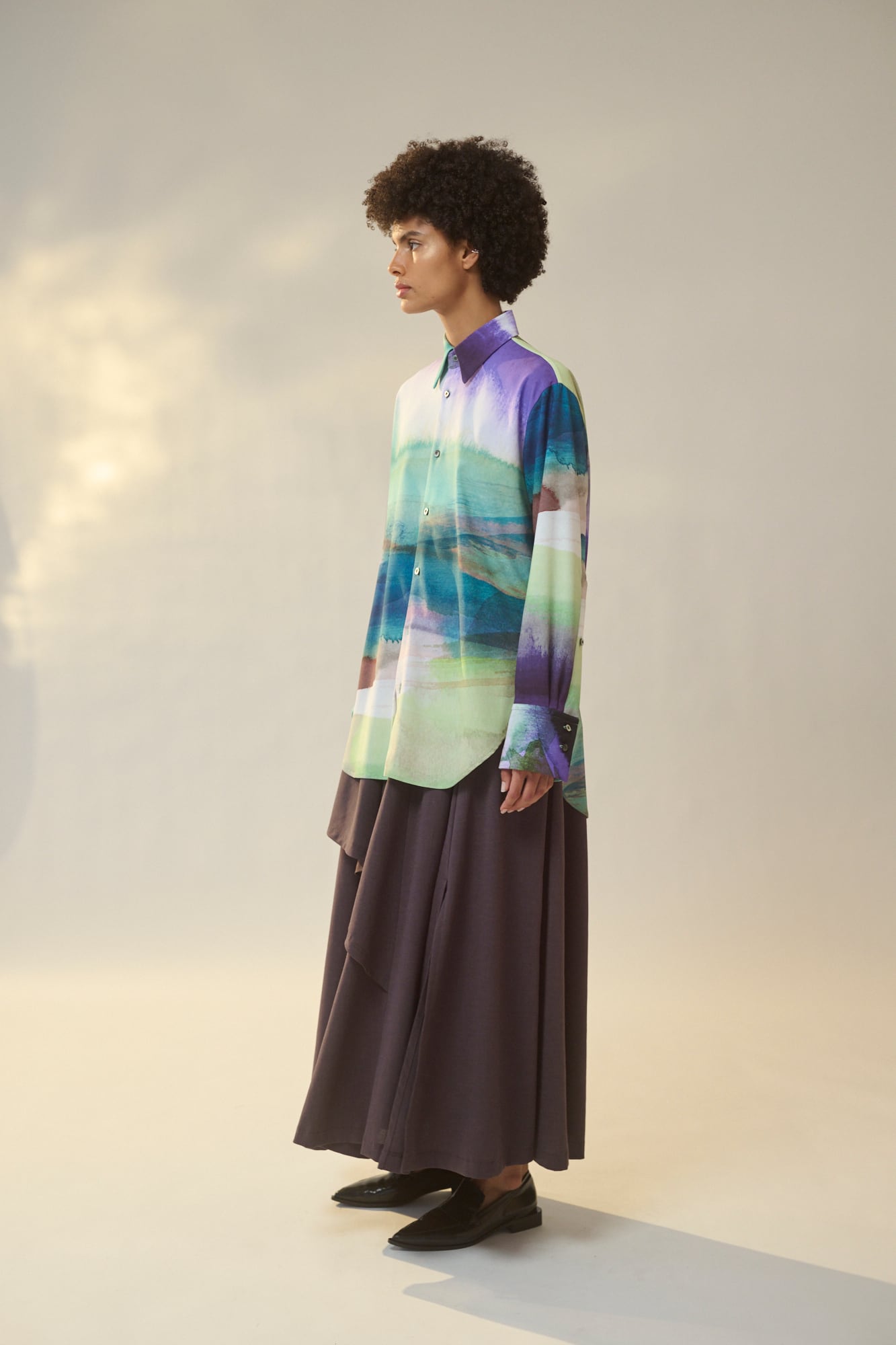 無駄のないミニマルなデザインがプリント柄の存在感を引き?たせます。