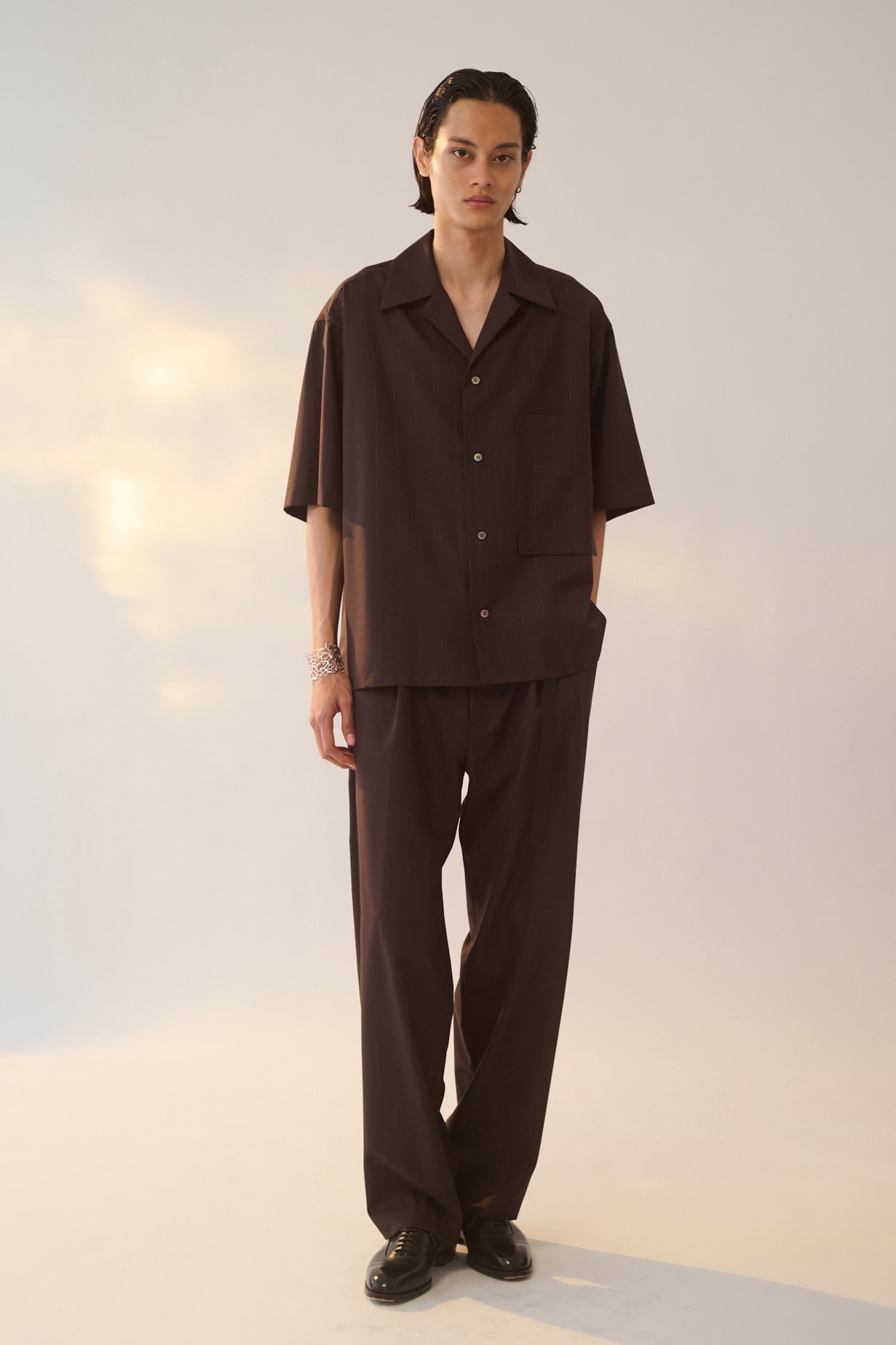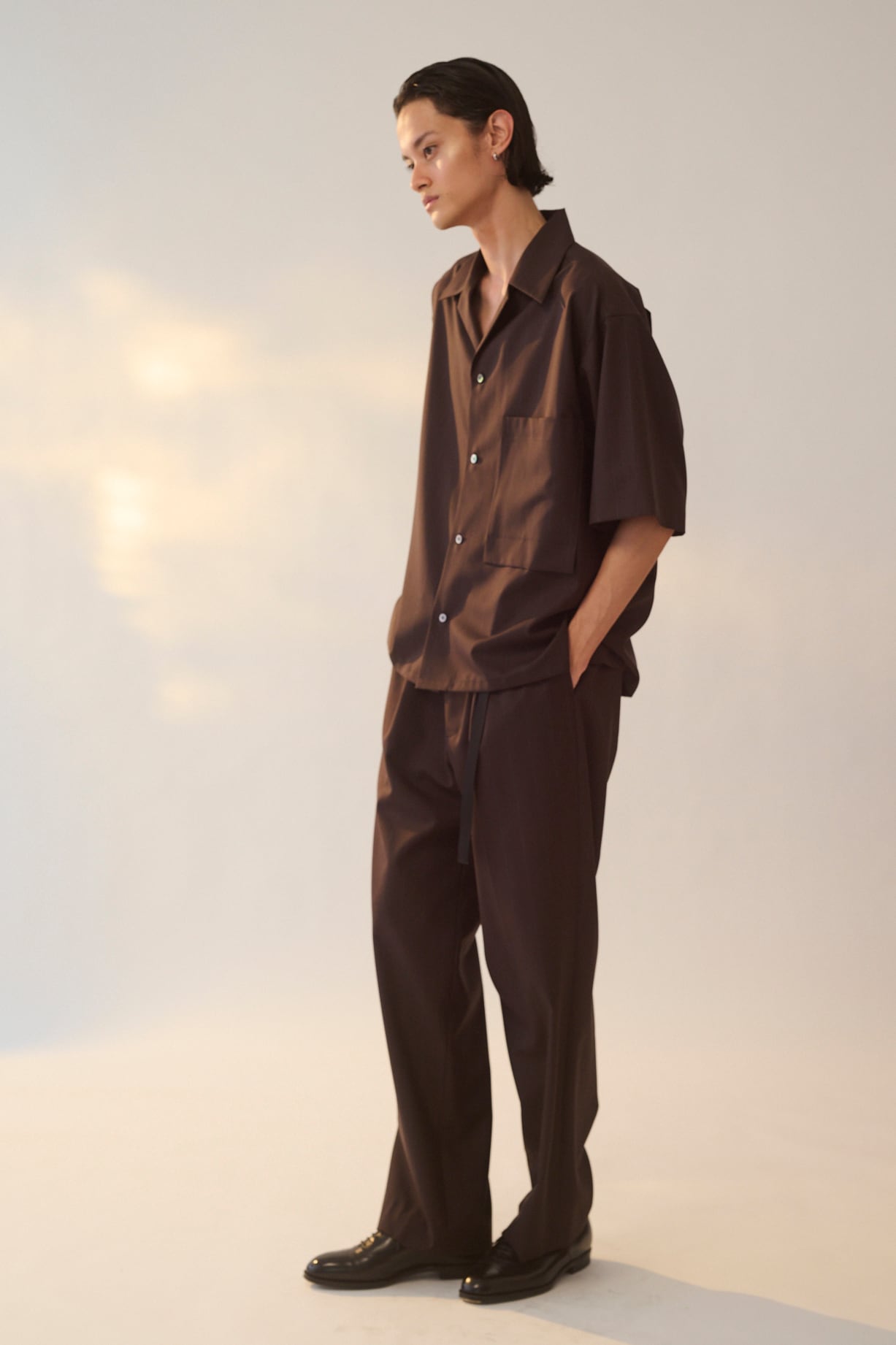 衿の開きを深めに設定することで抜け感のある印象に仕上げています。