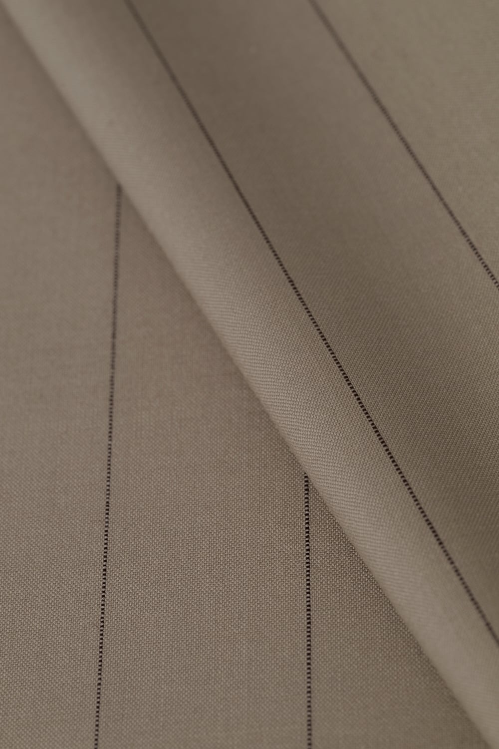 2/72ピンストライプサマーウールです。通気性や軽さがあり、なめらかな質感の上品な素材です。ドライタッチで、ウール特有の吸湿性、放湿性もあるので、真夏でも快適に着用することができます。
