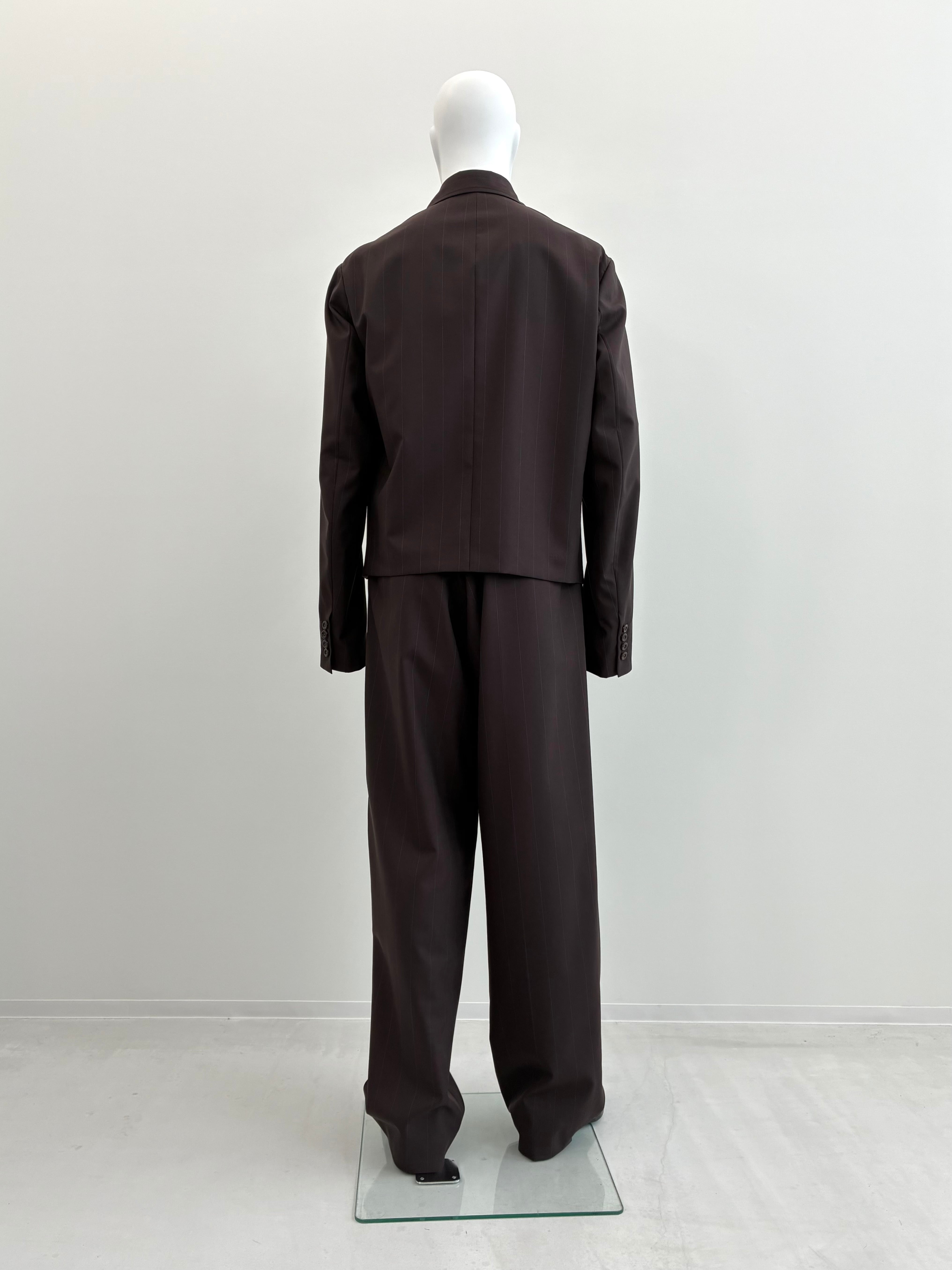 2/72ピンストライプサマーウールです。通気性や軽さがあり、なめらかな質感の上品な素材です。ドライタッチで、ウール特有の吸湿性、放湿性もあるので、真夏でも快適に着用することができます。