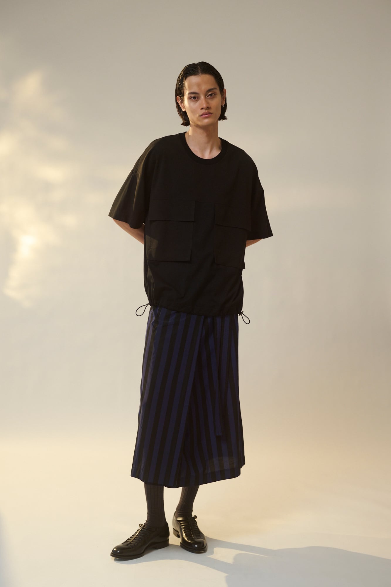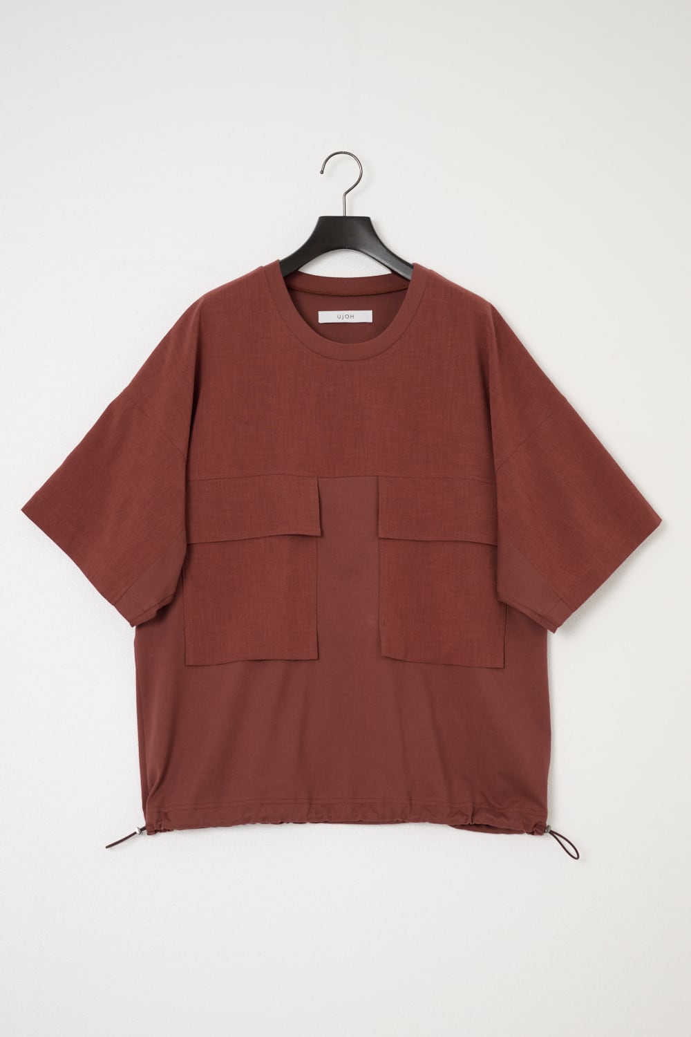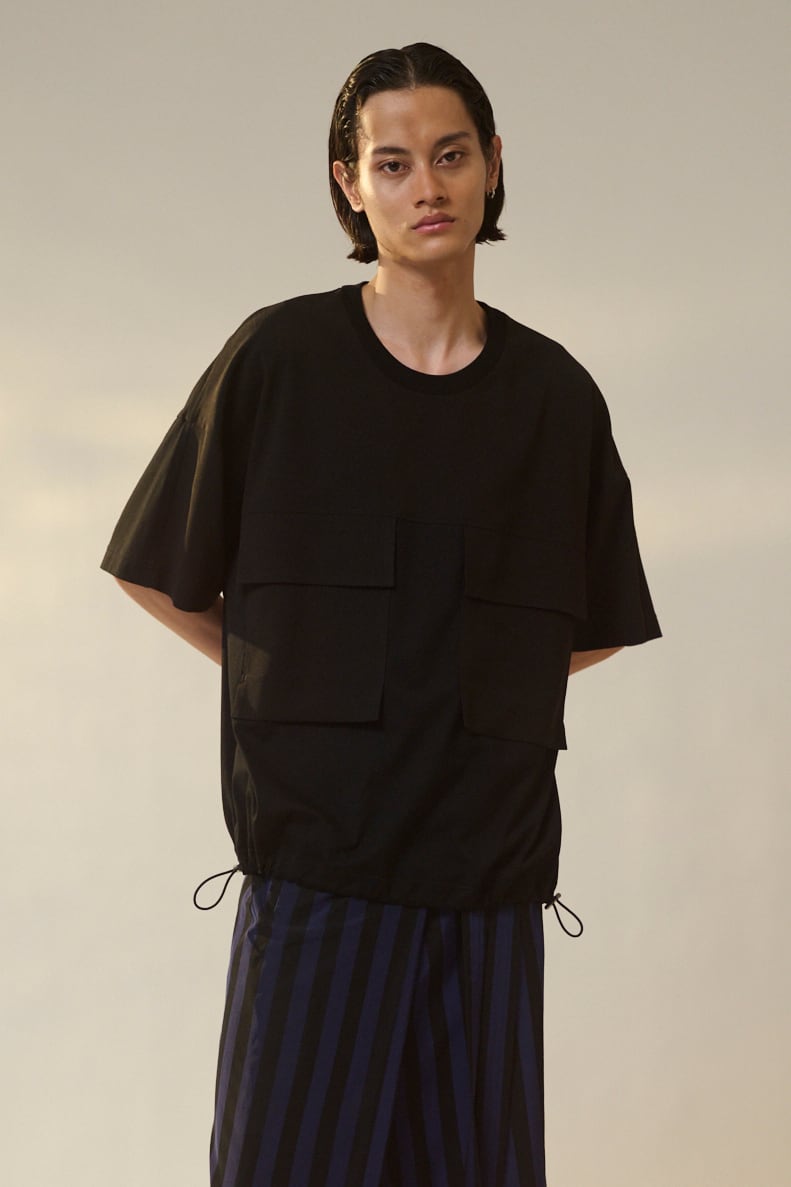 裾はドローコード仕様で、両胸の⼤きめアウトポケットもポイントになっています。