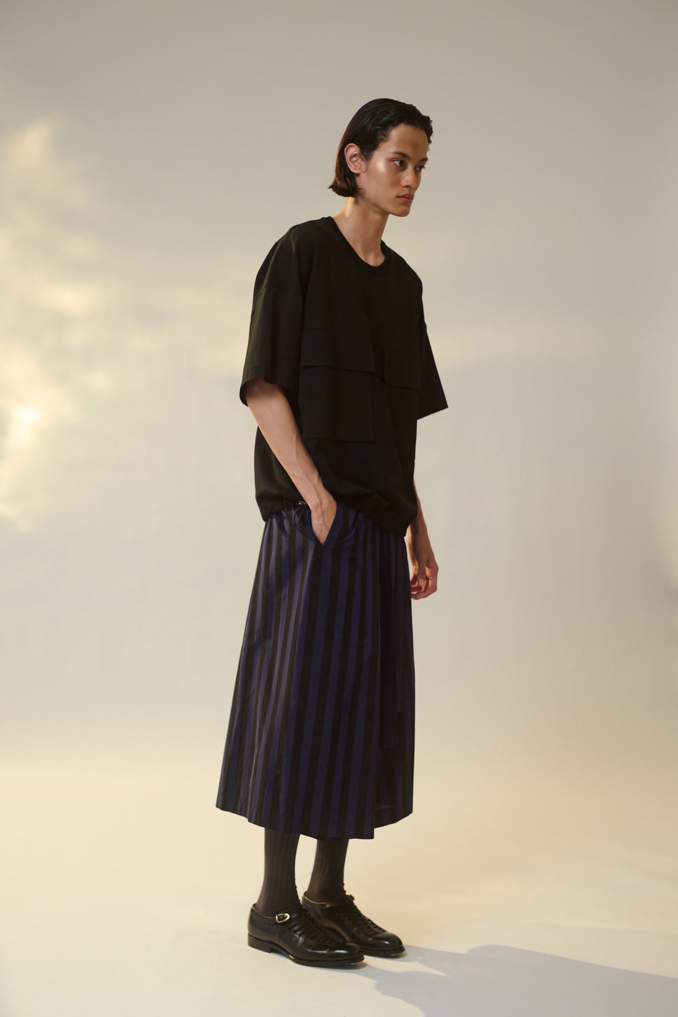 ドロップショルダーとワイドシルエットに異素材の組み合わせが特徴の存在感あるプルオーバーです。