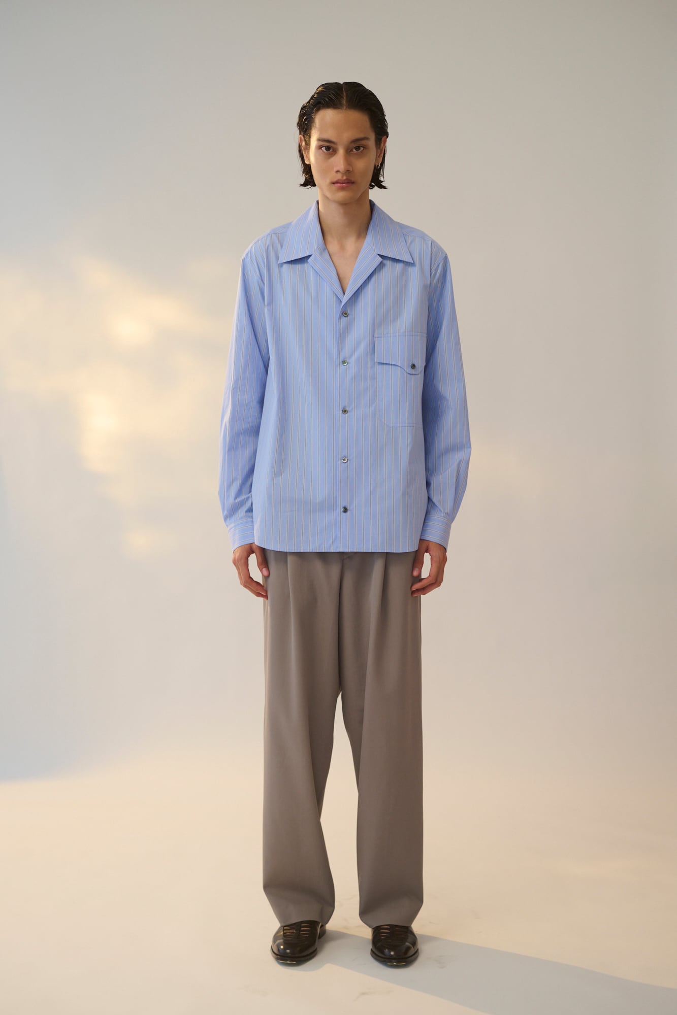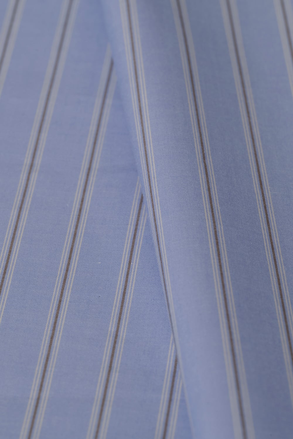 高密度の100/2ポプリンストライプです。適度なハリ感と滑らかさ、クリアな表情が特徴の生地です。