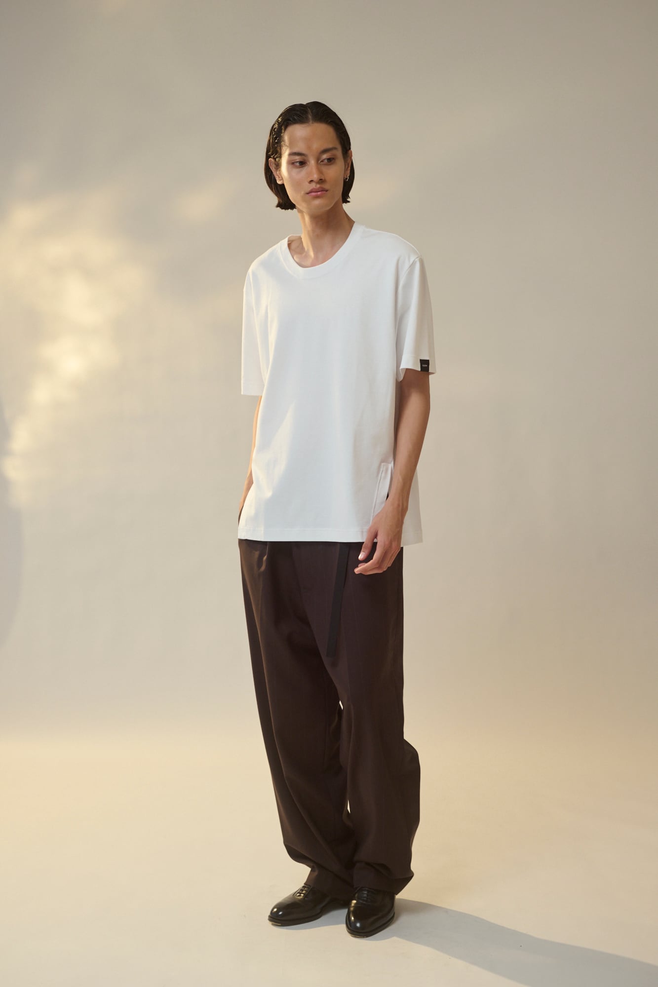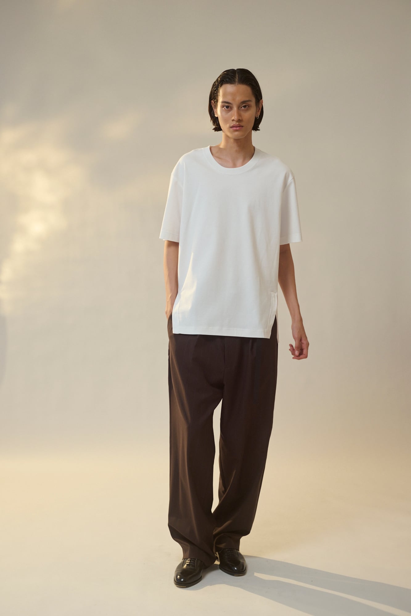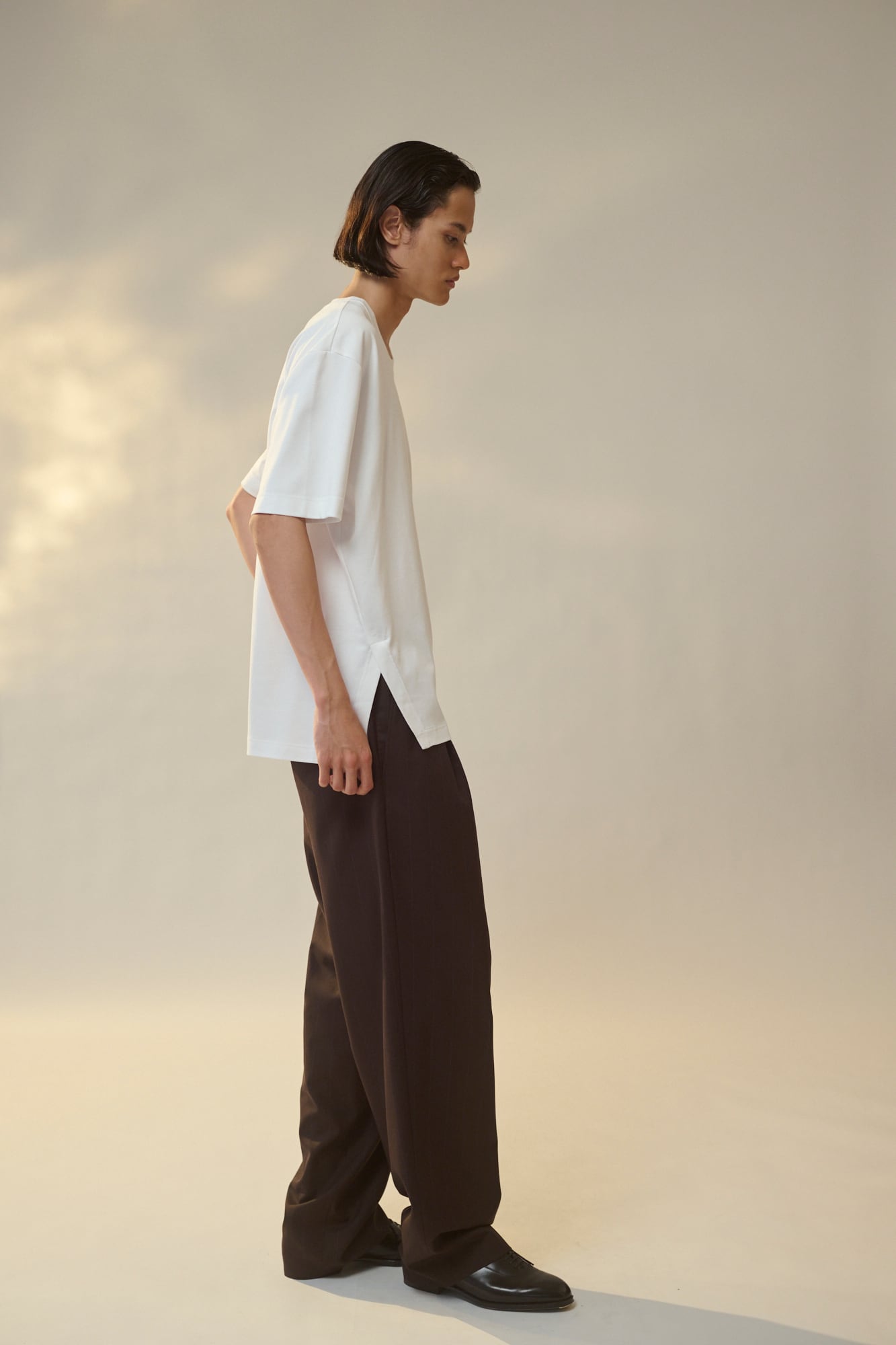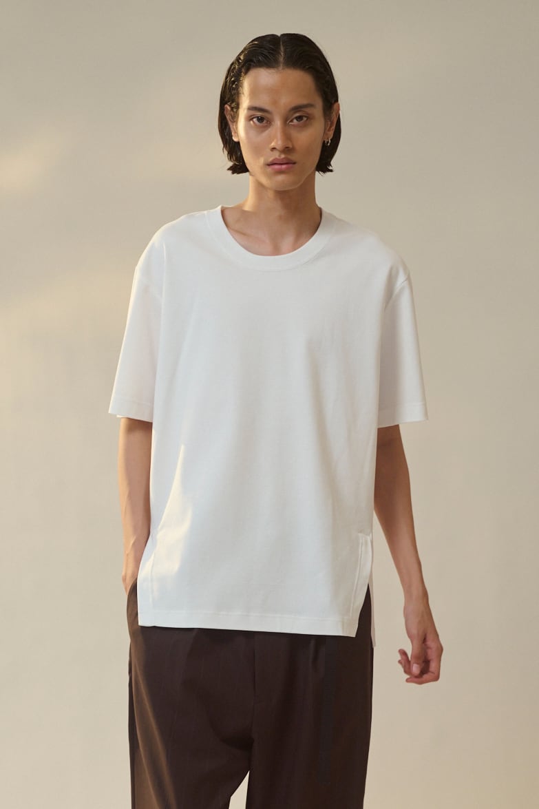 ややゆとりのあるシルエットに、⼤胆なスリットデザインが特徴です。