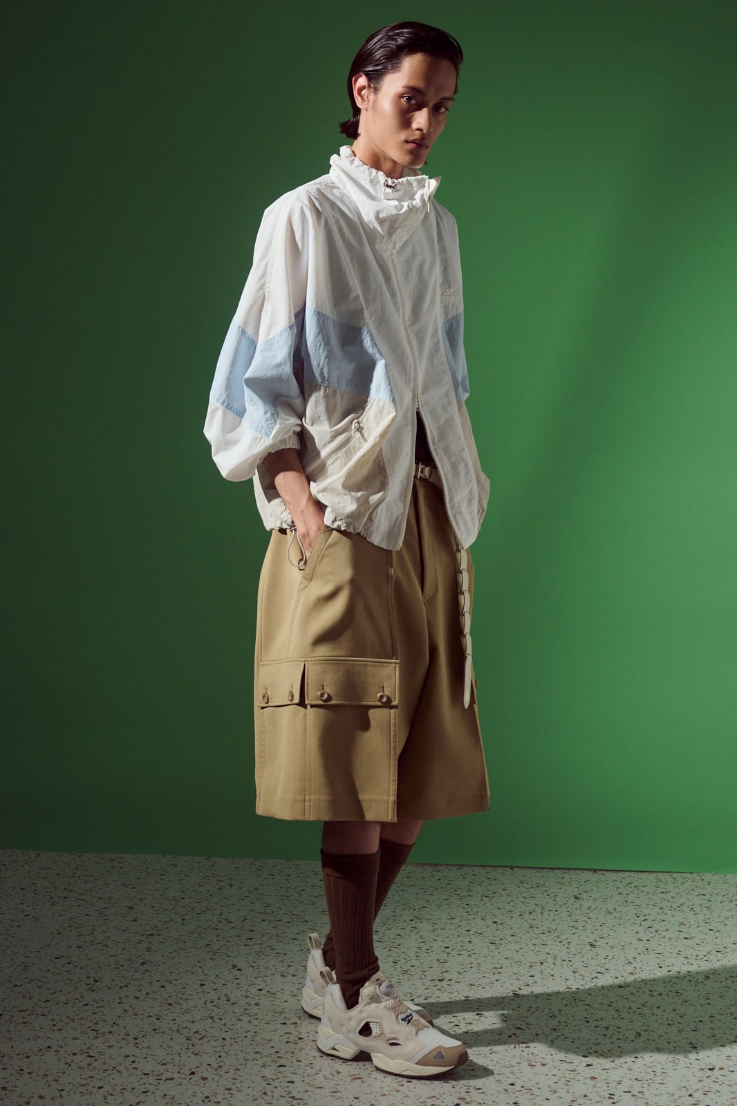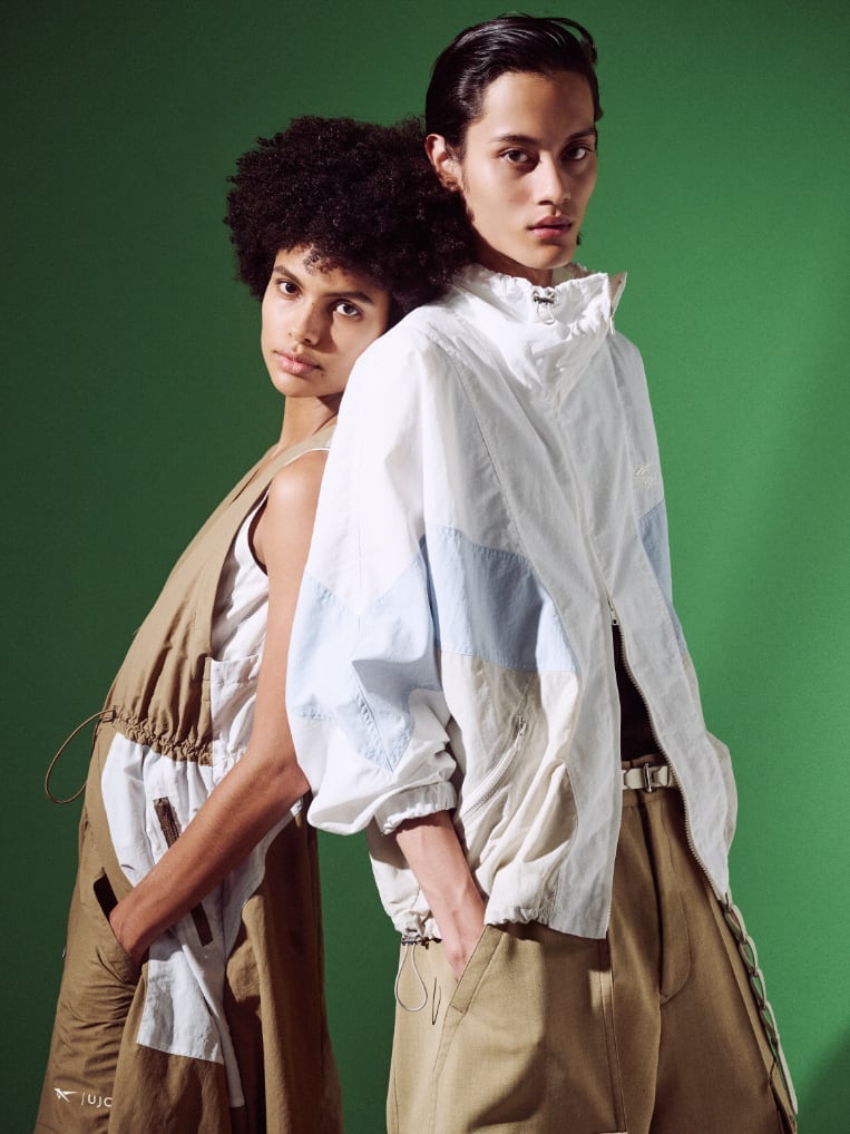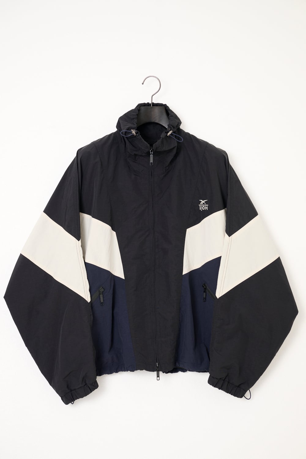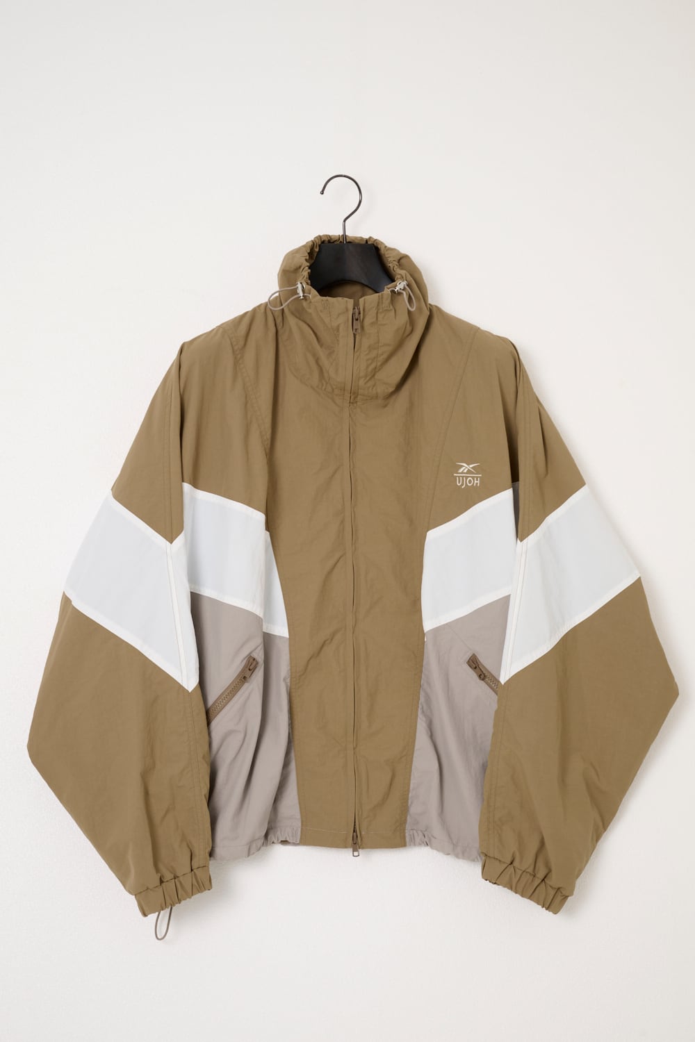 UJOH × Reebok のコラボレーションのブルゾンです。ボリューミーなサイズ感でスタイリッシュな切り替えが目をひくデザイン性の高い仕上がりです。軽量なナイロンワッシャー素材に裏地はメッシュを使用しています。前面にベクターロゴとUJOHロゴのダブルネーム刺繍、背中に大ぶりのベクターロゴ刺繍を施しています。