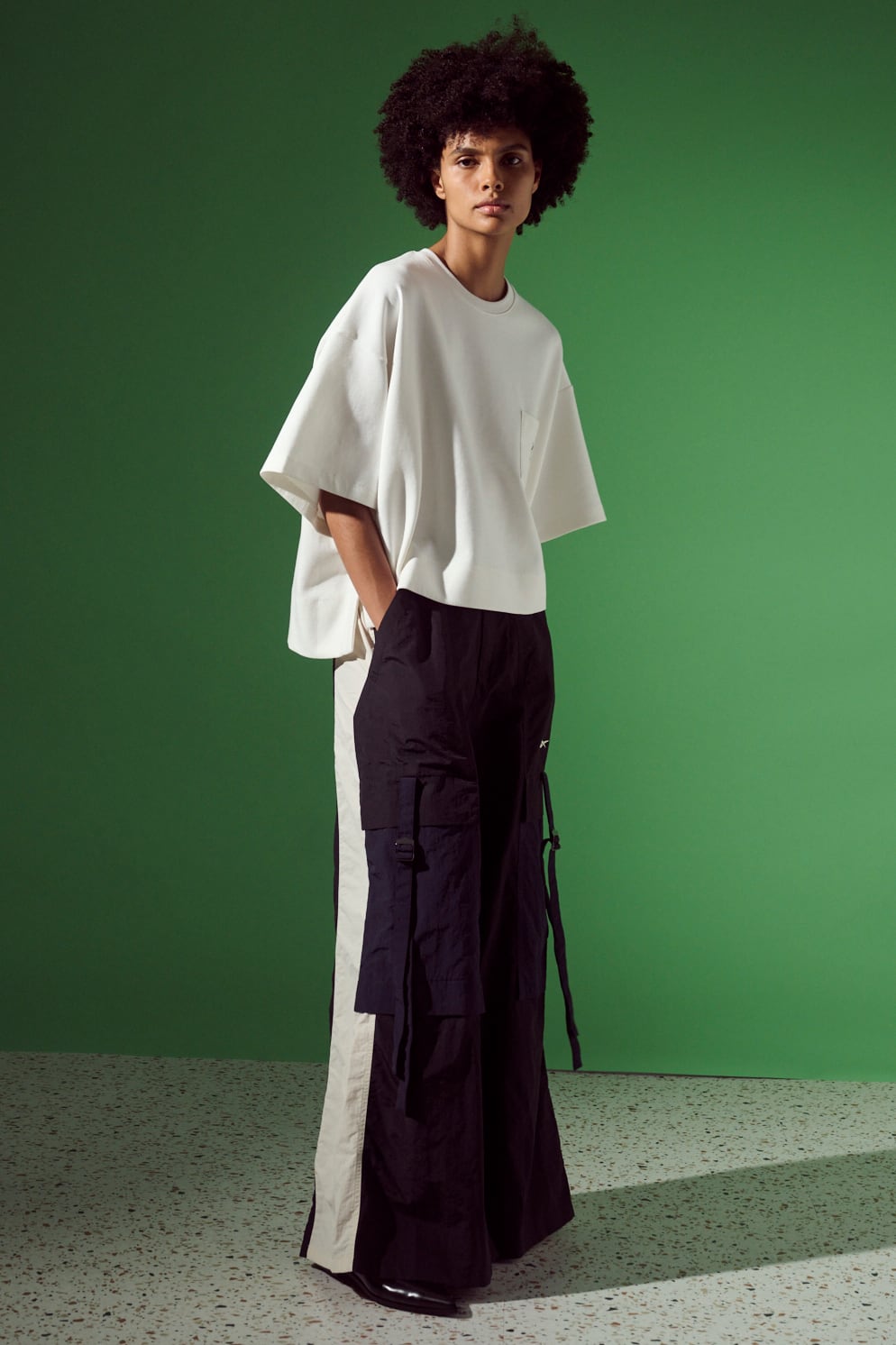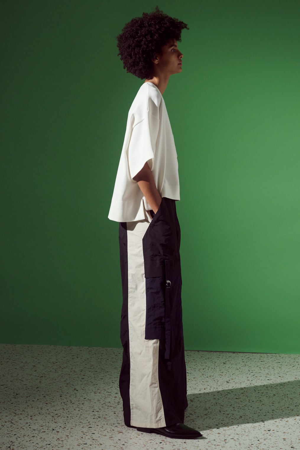 クロップド丈のゆとりあるシルエットです。