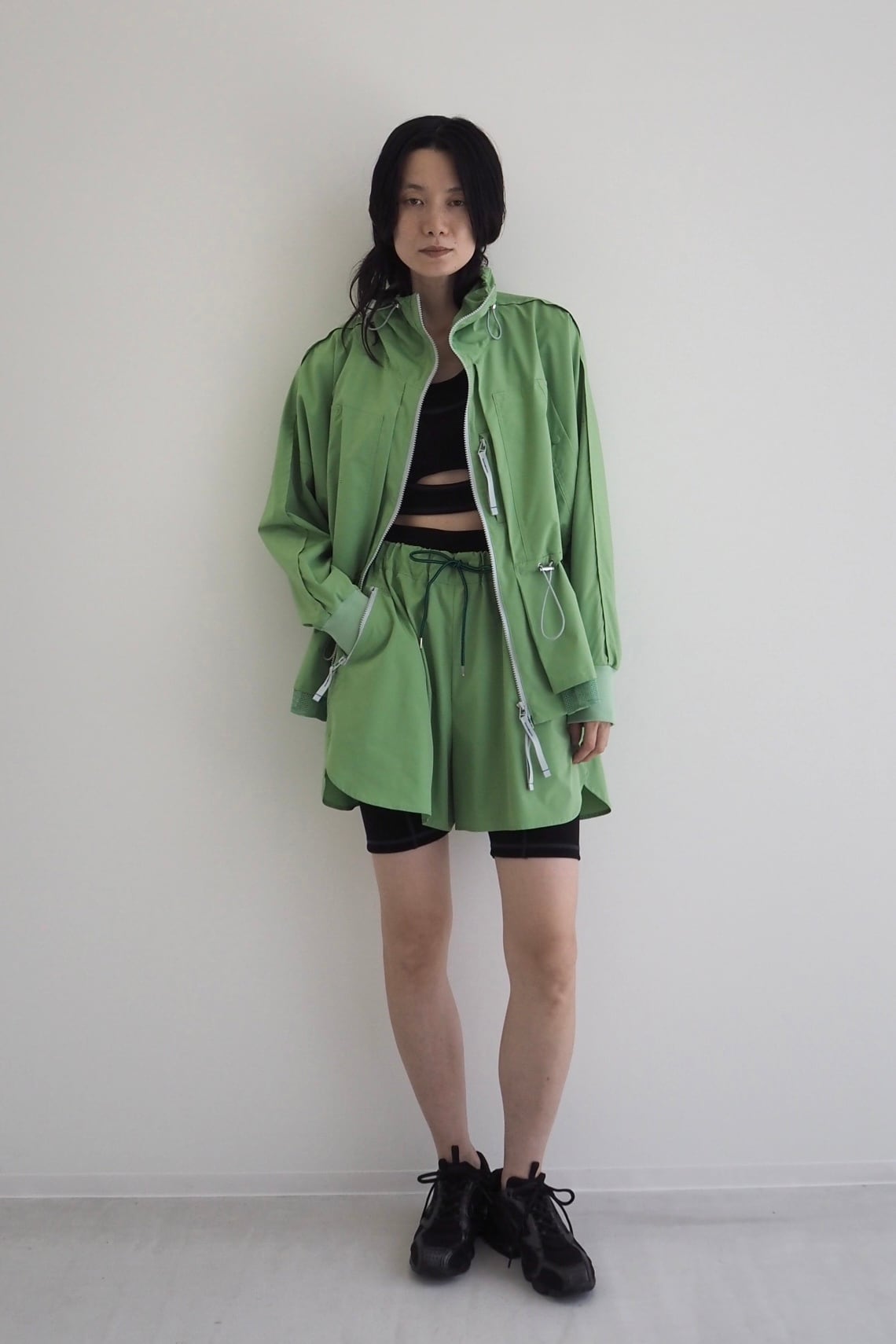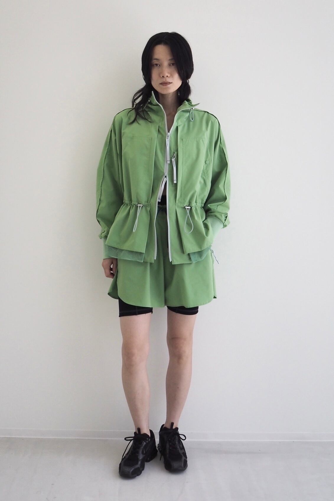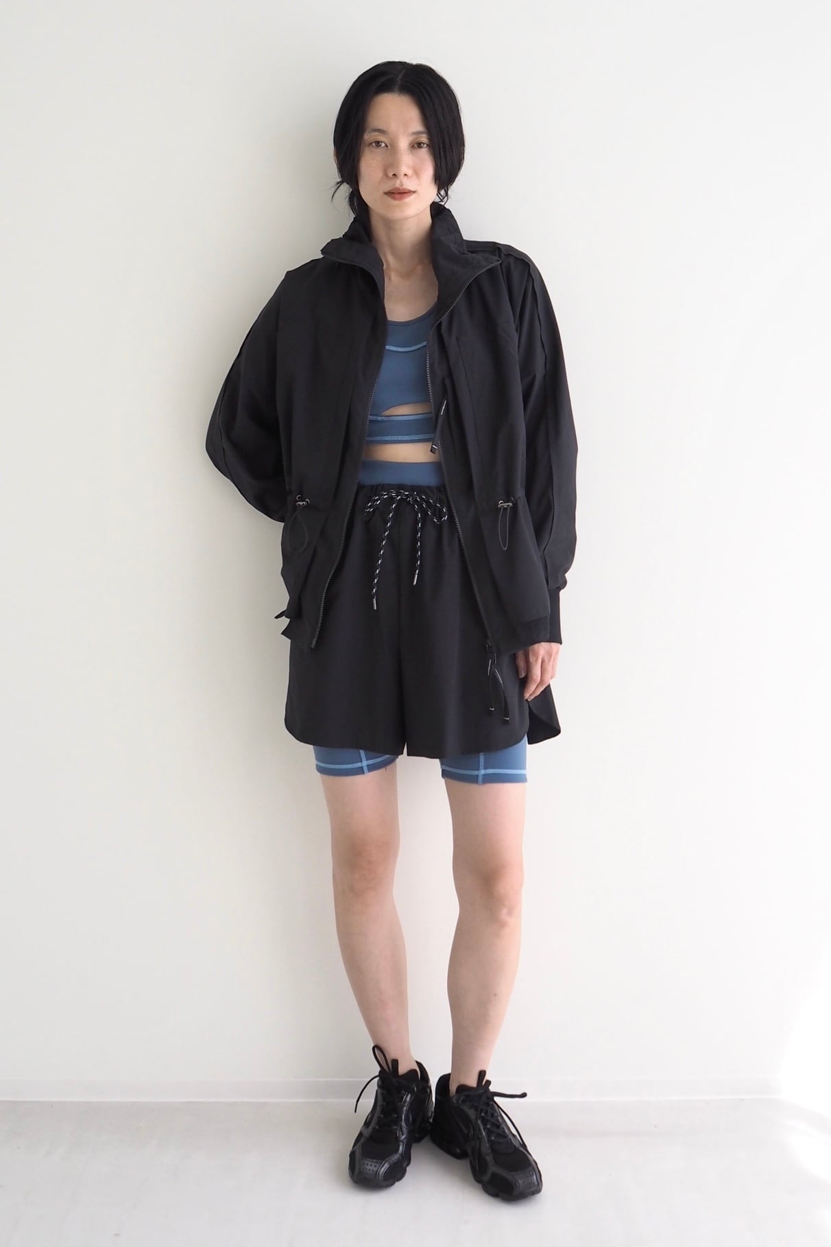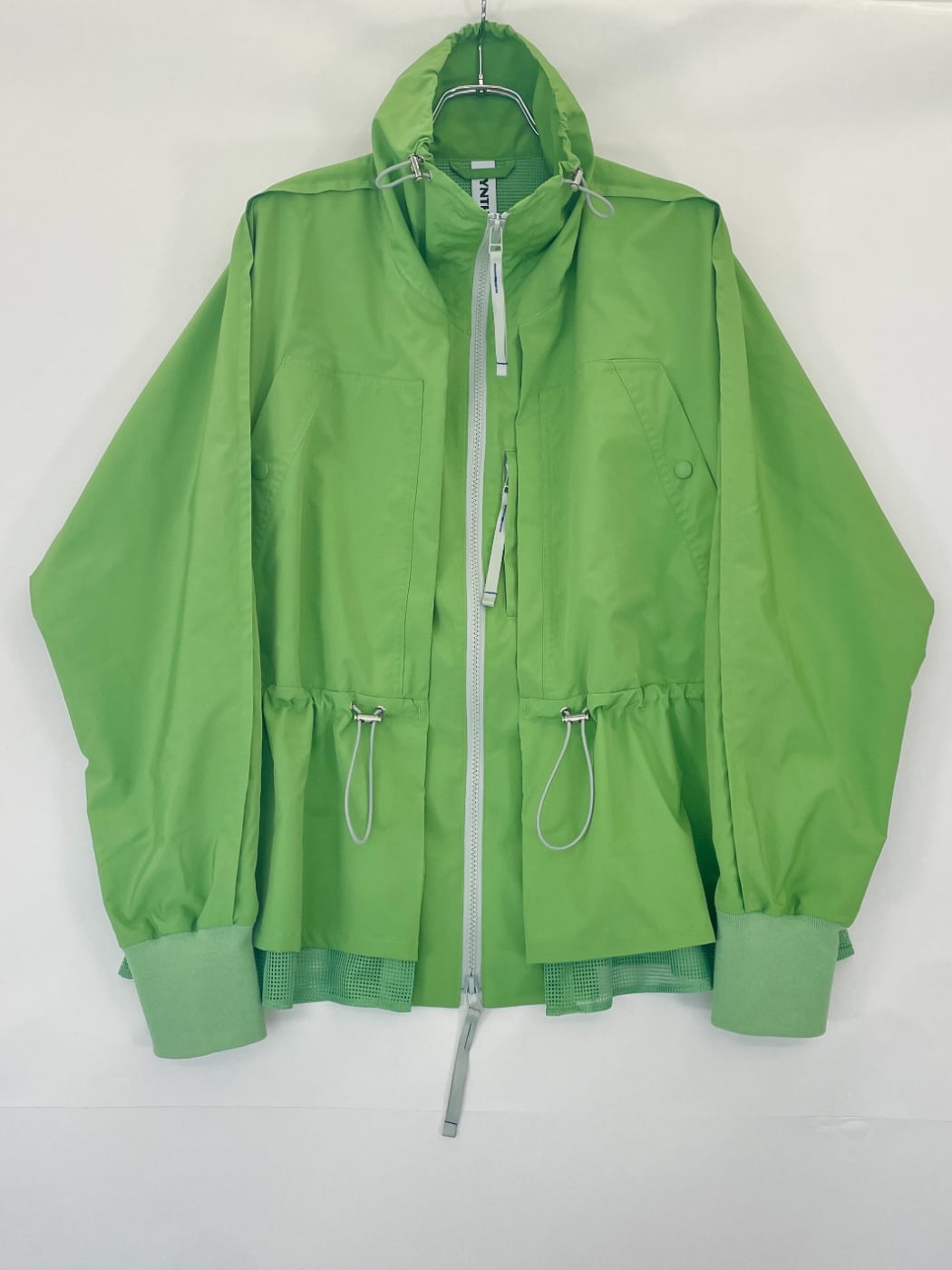 前⾝頃のドローコードとダブルジップ仕様で、シルエット変化や温度調節も可能です。