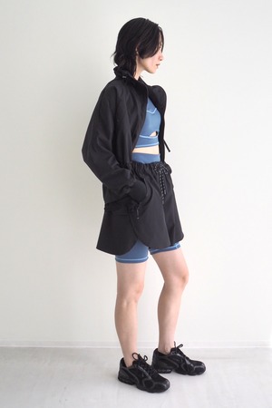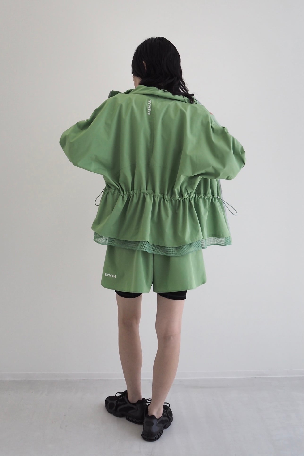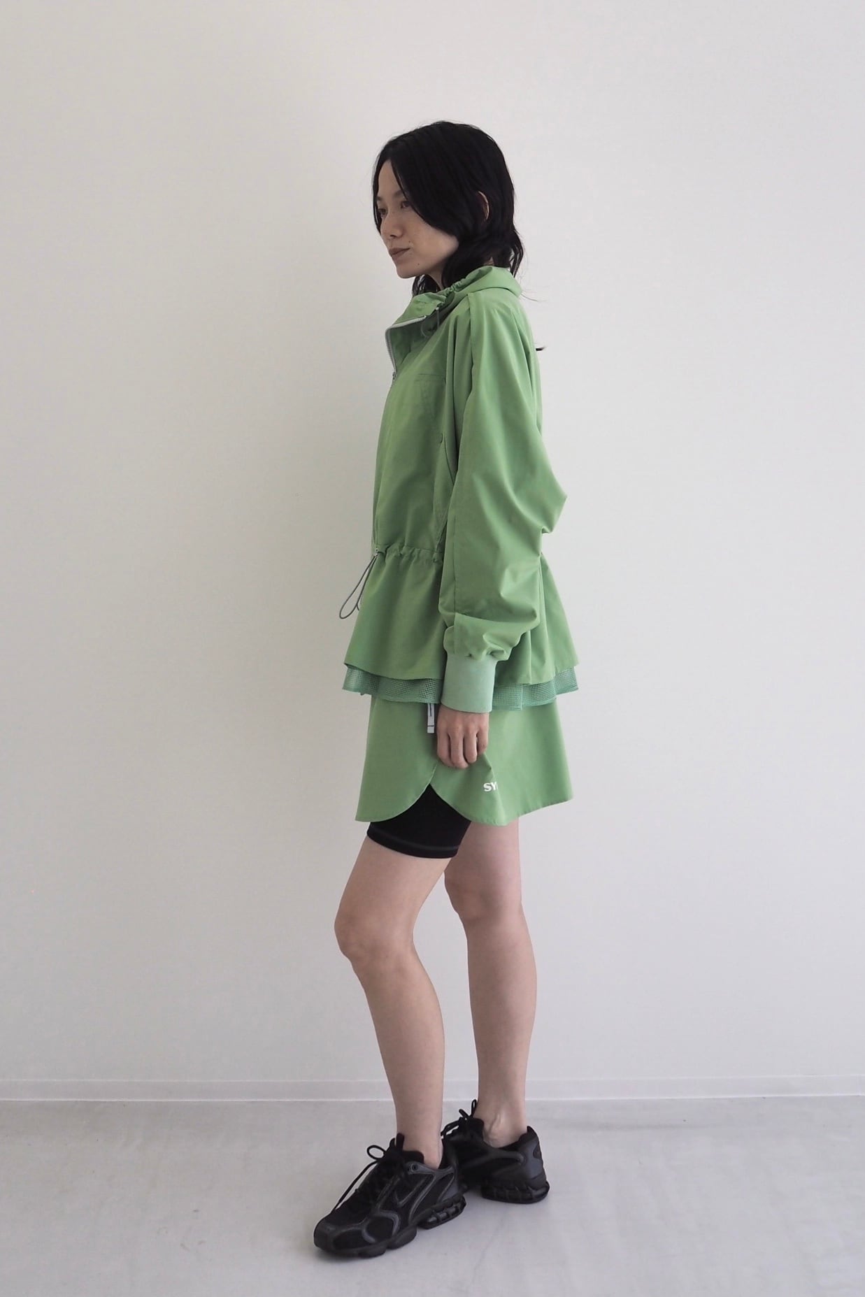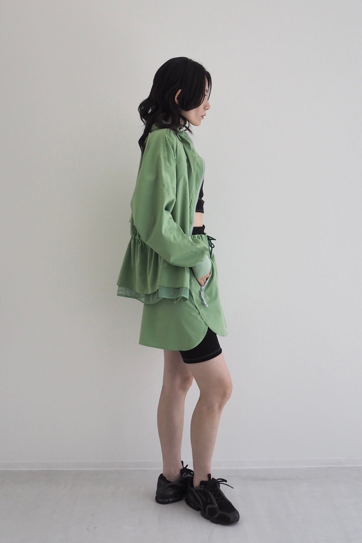 前⾝頃のドローコードとダブルジップ仕様で、シルエット変化や温度調節も可能です。