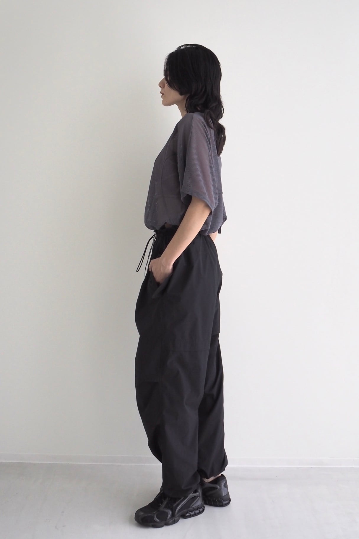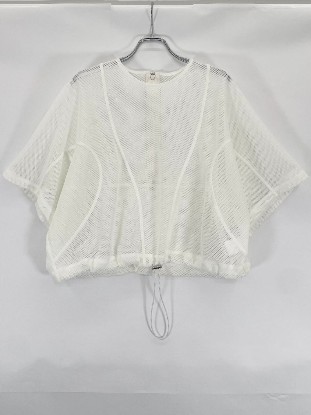 軽やかな透け感とモードな印象を兼ね備えたイージーケアなネットチュールを使⽤した、メッシュTシャツです。