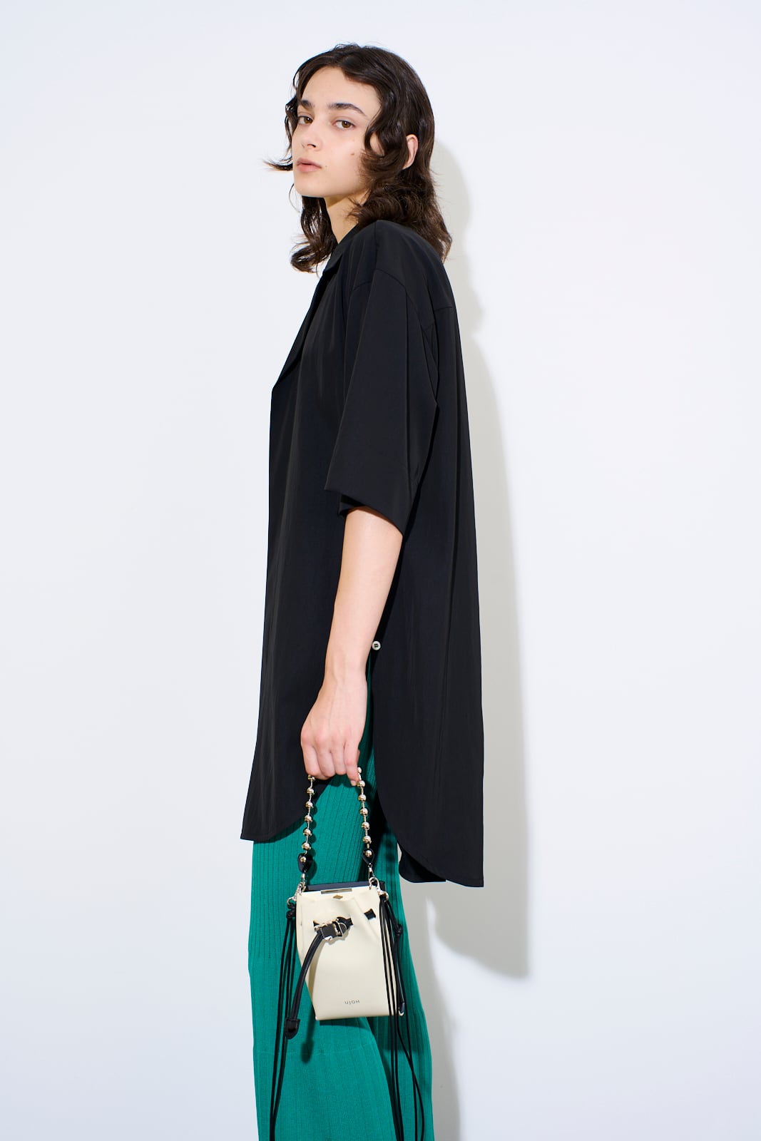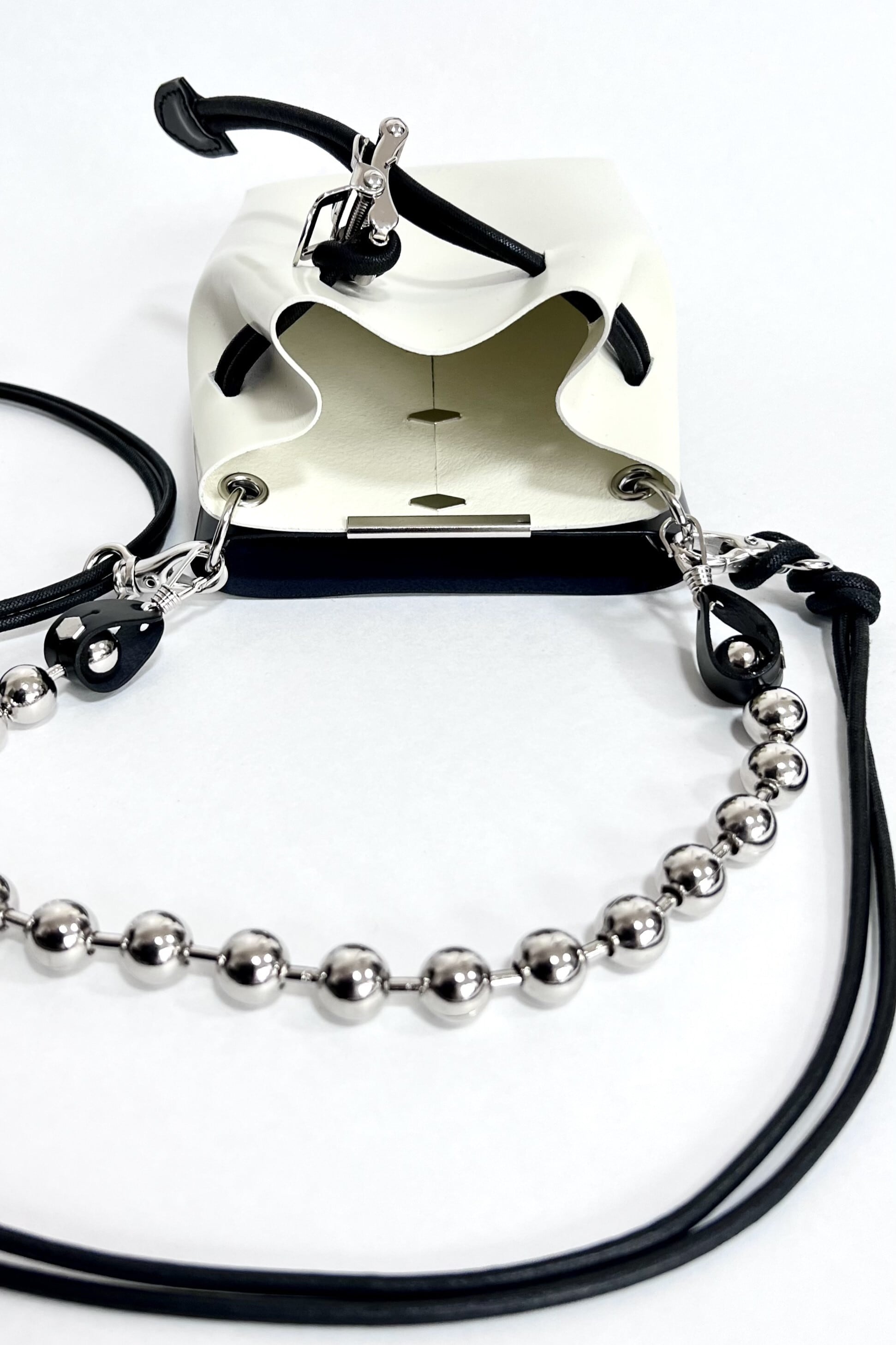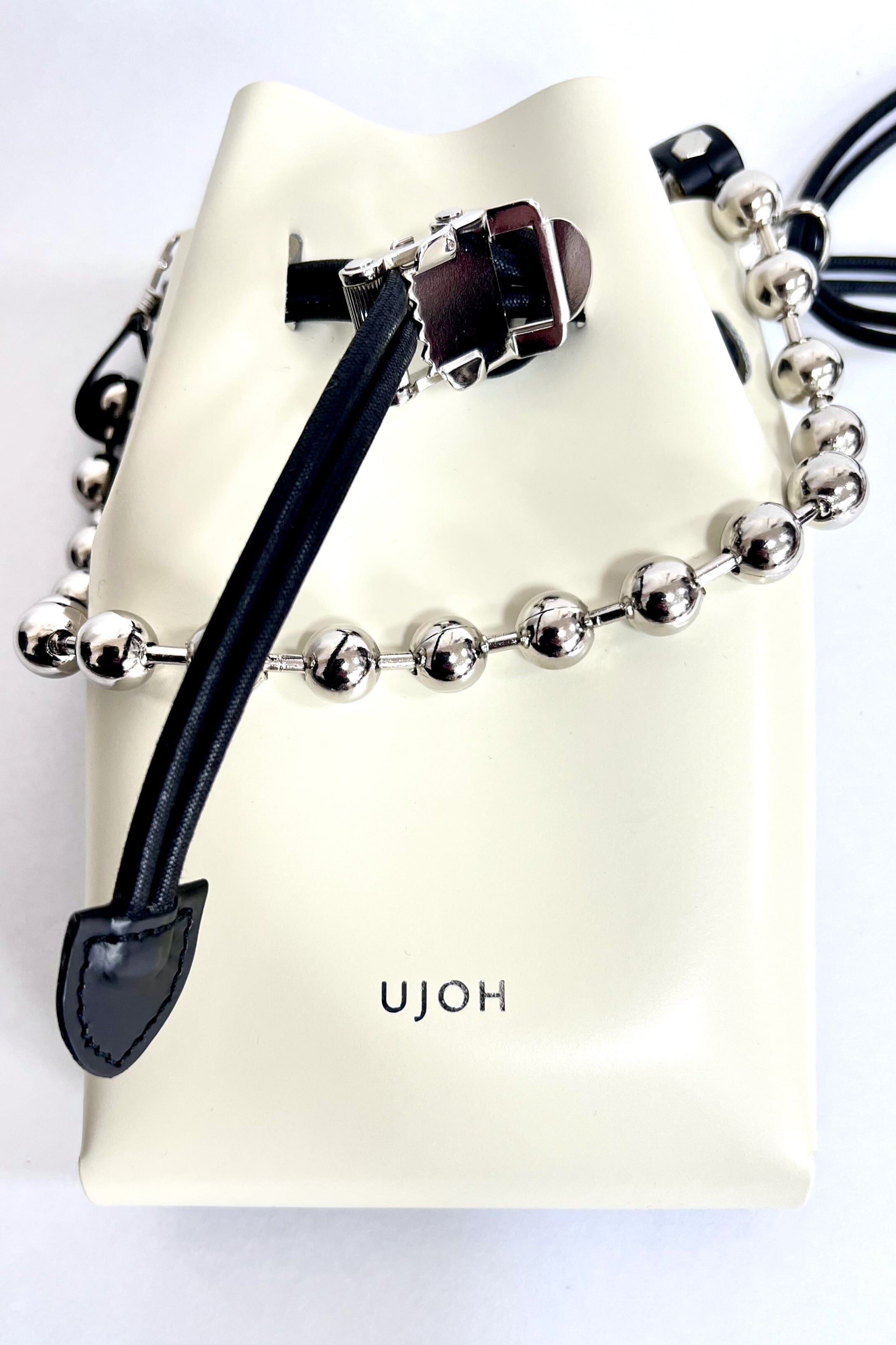 Style: U751-A52-701 Material:牛革 Made In Japan Size内寸 深さ:16cm 幅:10cm ポケットの厚み:3~4cm(2か所) ※ポケットはiPhone Pro Maxサイズが収まります ファッショングッズブランドLIWLEとのコラボレーションです。 2つのポーチが重なり合ったバッグです。上質なガラス仕上げのステアレザーを採用しています。 クリップ付きのコードを調節をして開閉する仕様です。 ボールチェーンを持ち手にするスタイルもおすすめです。