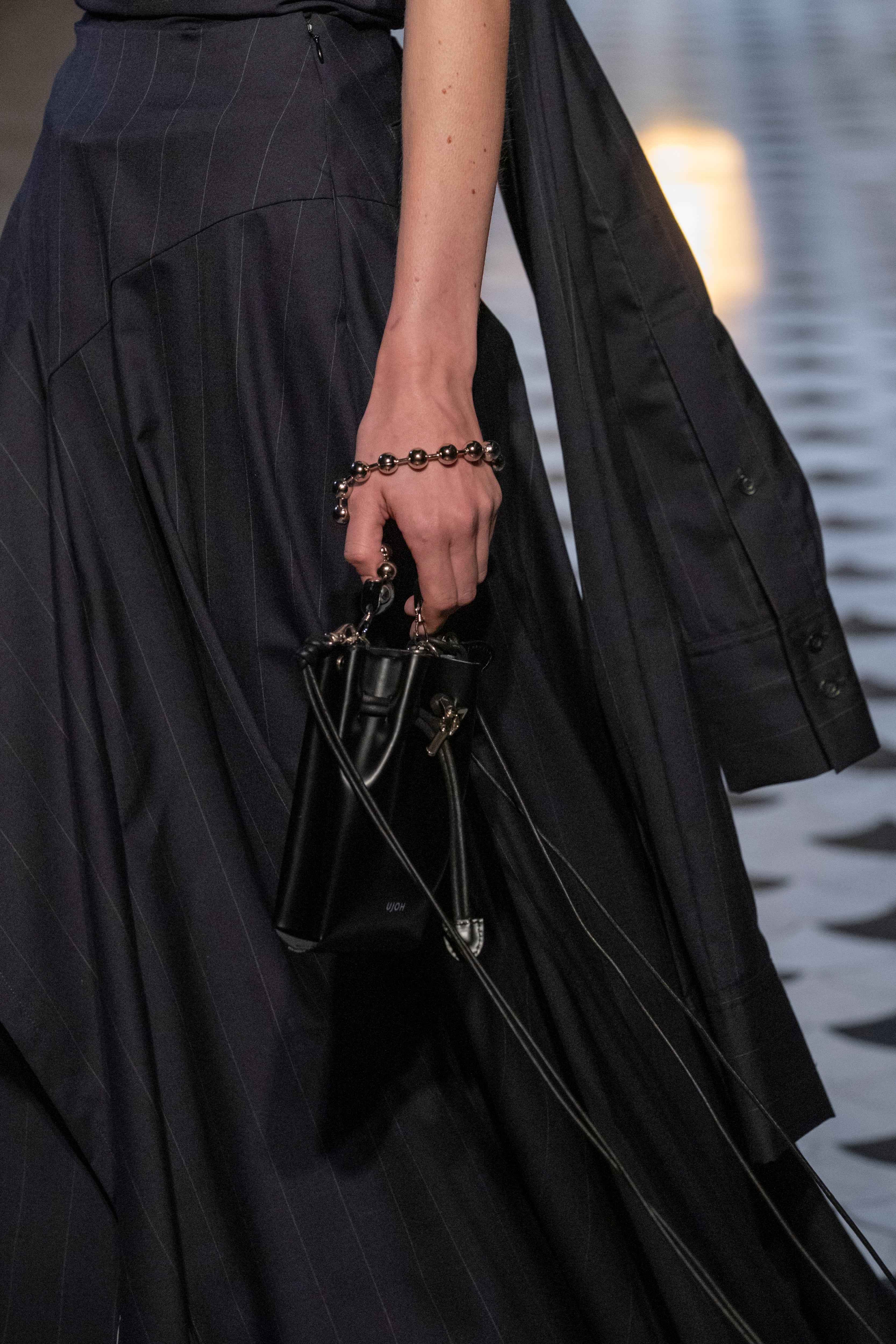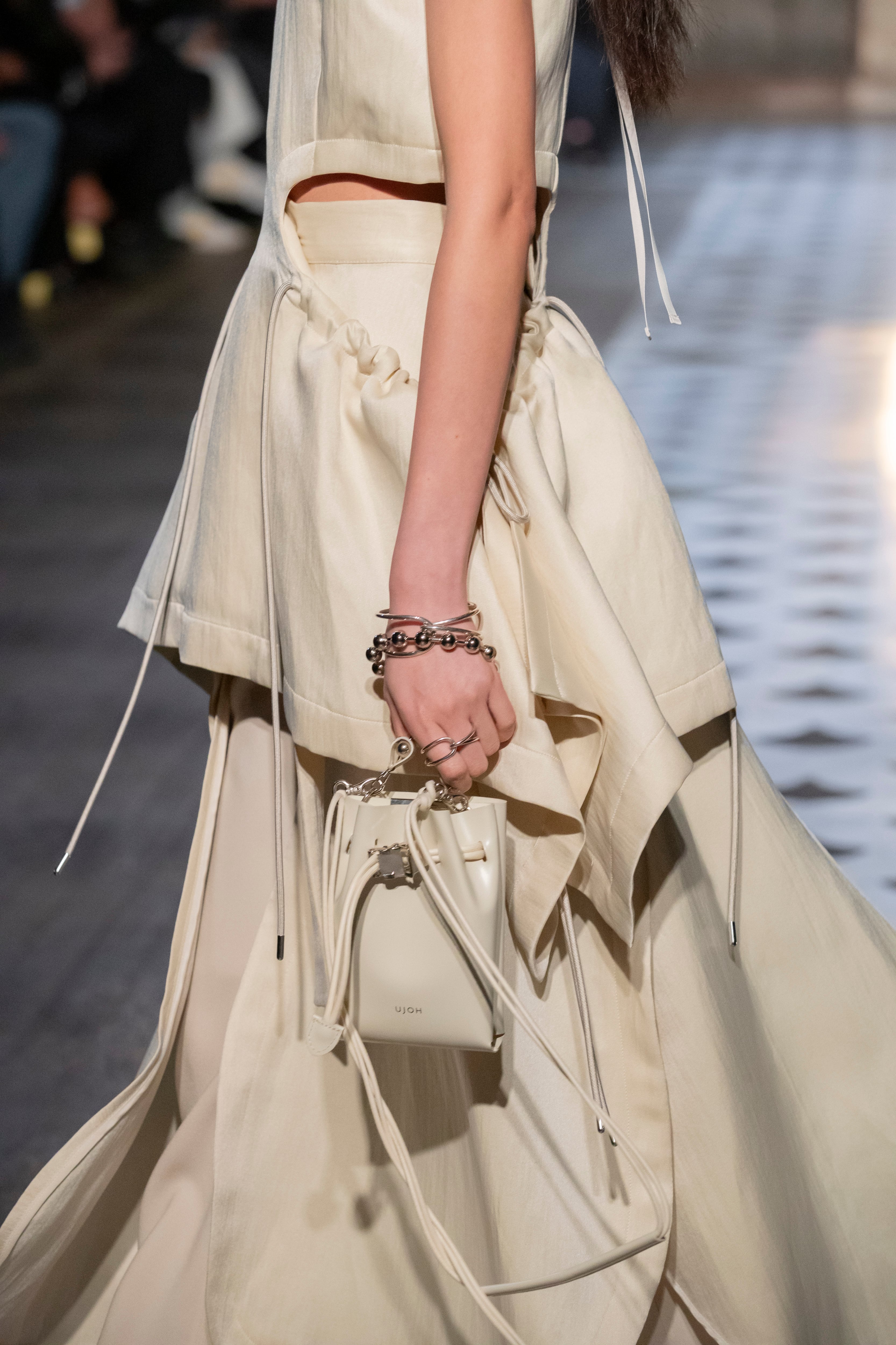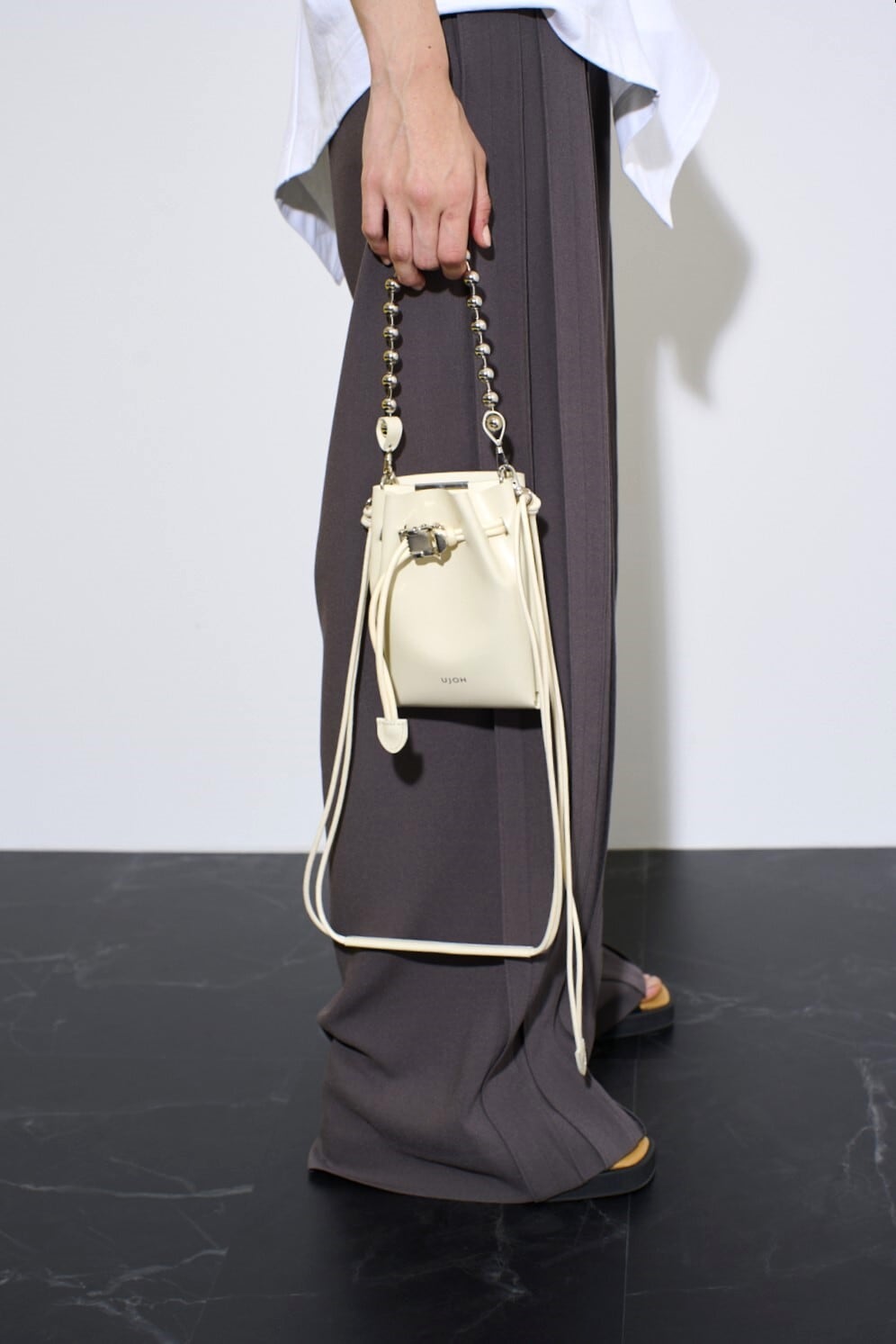 Style: U751-A52-701 Material:牛革 Made In Japan Size内寸 深さ:16cm 幅:10cm ポケットの厚み:3~4cm(2か所) ※ポケットはiPhone Pro Maxサイズが収まります ファッショングッズブランドLIWLEとのコラボレーションです。 2つのポーチが重なり合ったバッグです。上質なガラス仕上げのステアレザーを採用しています。 クリップ付きのコードを調節をして開閉する仕様です。 ボールチェーンを持ち手にするスタイルもおすすめです。